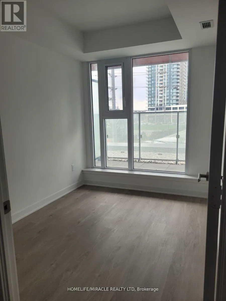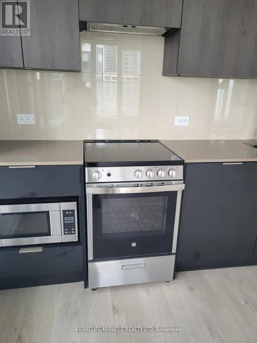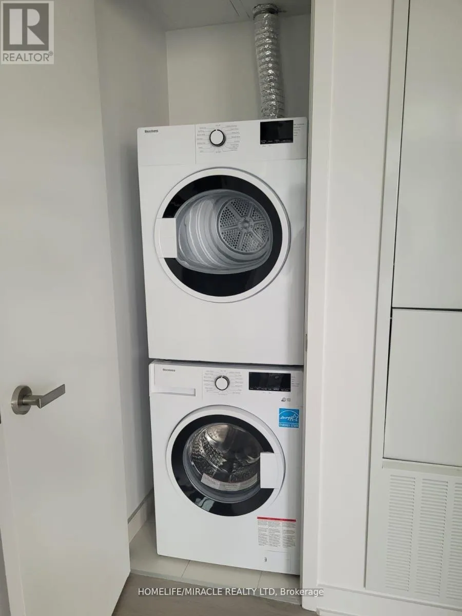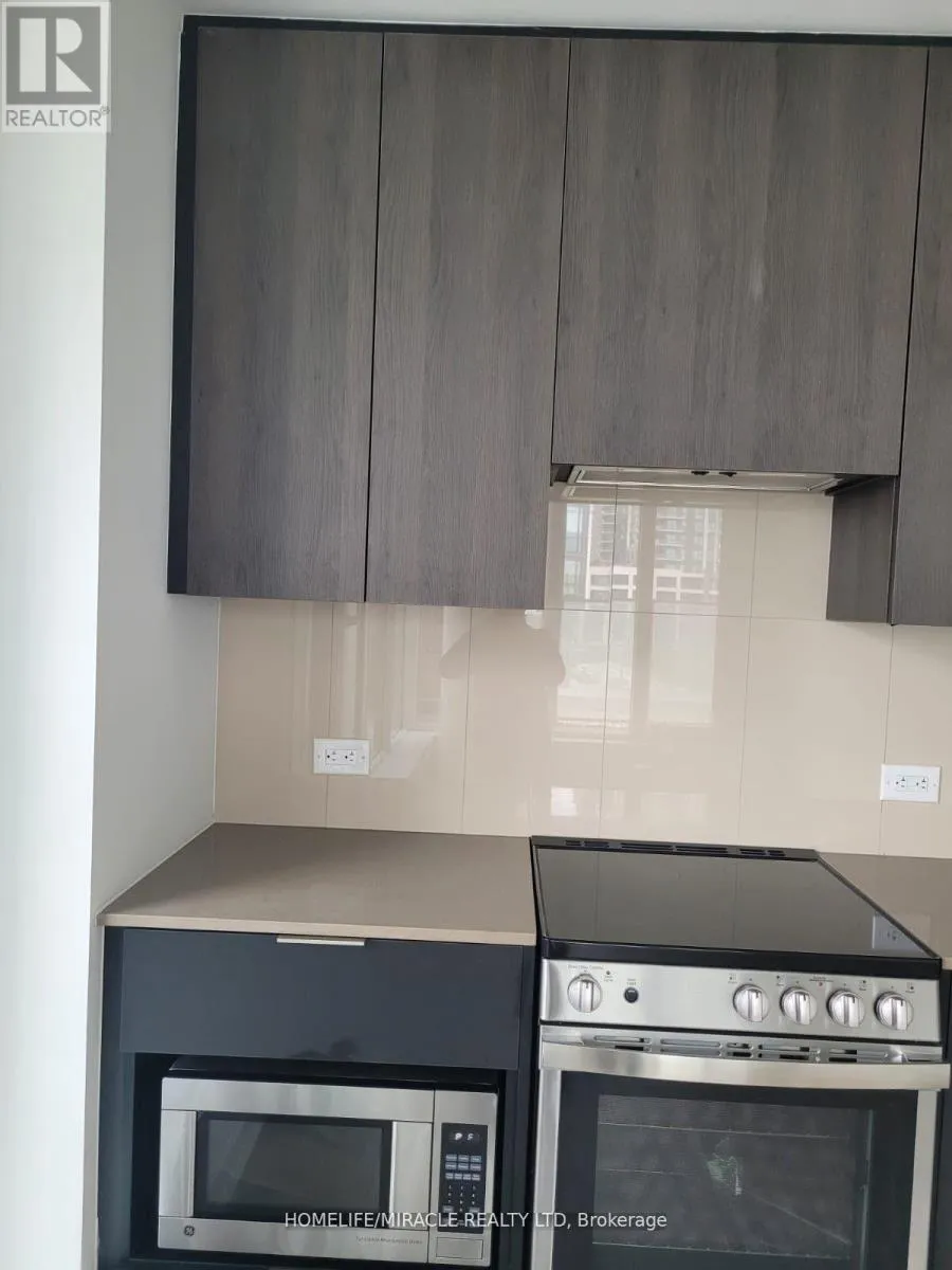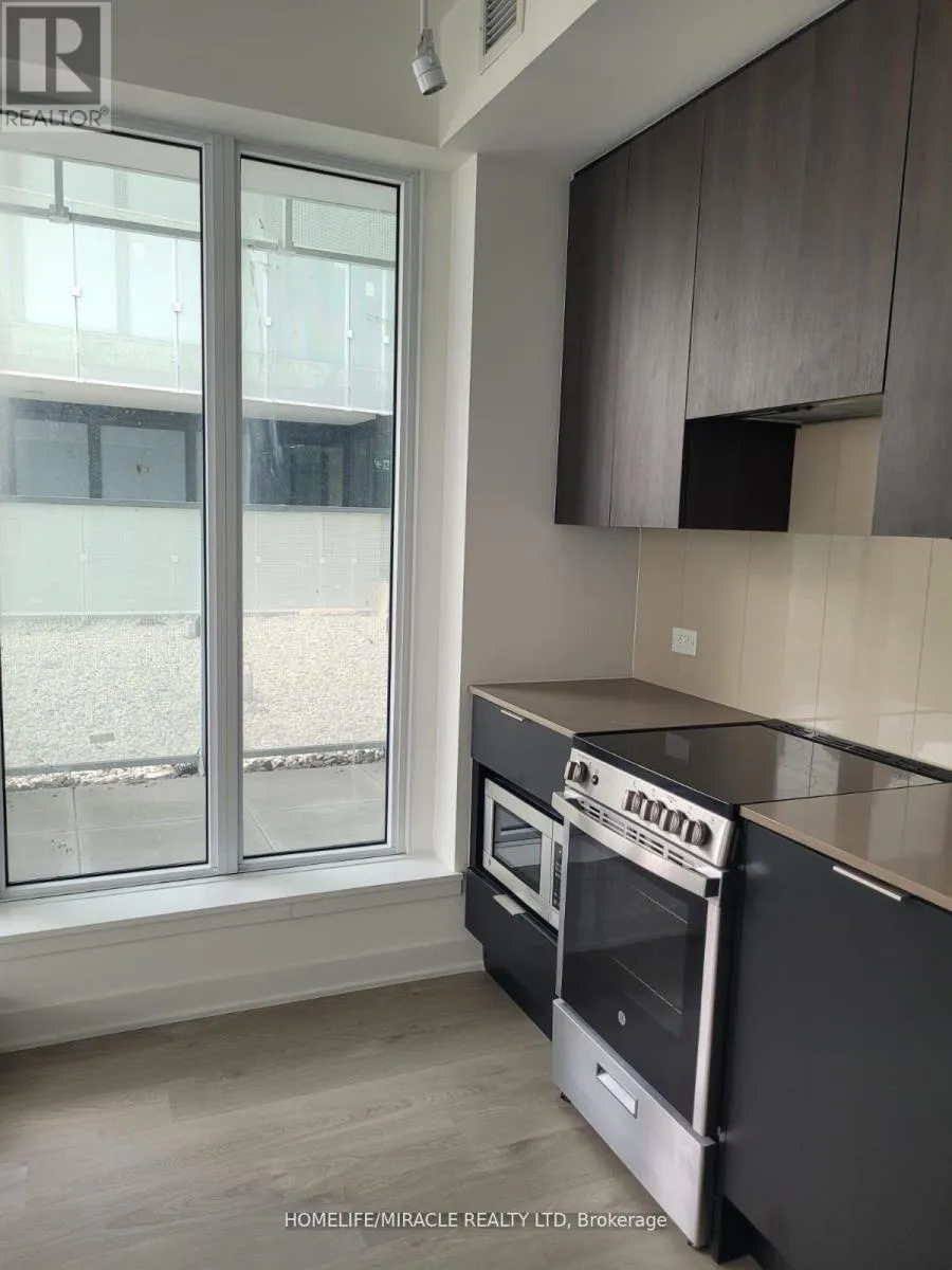 Burnhanthorpe & Confederation Experience upscale urban living in this almost-new 1 bedroom + den corner unit at the prestigious M City Condos in the heart of downtown Mississauga. The functional den is ideal as a home office or study space. This bright, open-concept layout seamlessly connects the kitchen, dining, and living areas, leading to a spacious 236 sq ft balcony-perfect for relaxing or entertaining. Floor-to-ceiling windows fill the unit with abundant natural light. Featuring high-quality finishes throughout, including a stylish kitchen backsplash, stainless steel appliances in excellent condition, and convenient ensuite laundry. Residents enjoy access to exceptional amenities such as a hotel-style saltwater pool, fitness center, outdoor lounge areas, kids' splash pad, and a unique rooftop skating rink. Unbeatable location just steps to Square One, Celebration Square, Living Arts Centre, Sheridan College, top-rated schools, and public transit, with easy access to Highways 403, 401, 407, and QEW. An excellent opportunity for professionals, first-time buyers, or investors seeking a sophisticated and convenient lifestyle in one of Mississauga's most desirable communities. (id:27476)