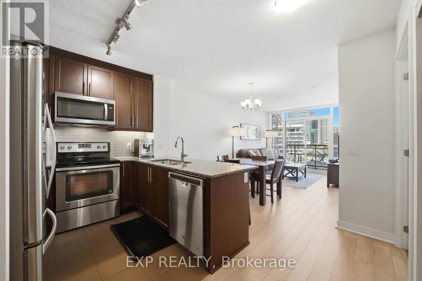 Cross Streets: Burnhamthorpe Rd W. ** Directions: Burnhamthorpe Rd W To Grand Park Drive. Welcome to this beautifully maintained 1-bedroom plus den condo in the heart of Mississauga, offering a functional and spacious layout. The large den is a huge feature, providing extremely convenient additional space for a home office, guest area, or extended living. The full kitchen features a breakfast bar, ample counter space, and plenty of cabinetry, complete with a built-in microwave, dishwasher, fridge, and stove. The bright living area opens to a spacious private balcony through sliding glass doors, creating a seamless indoor-outdoor feel. The bedroom includes convenient ensuite bathroom access and two his-and-her closets, while the living area features two additional closets for extra storage. In-suite laundry adds further convenience. This condo has been meticulously cared for and showcases true pride of ownership, and also includes one owned parking space and a separately owned locker located on the same floor. Residents enjoy access to excellent building amenities including a fully equipped gym, indoor pool, sauna, yoga room, theatre room, party room, and 24-hour security. Ideally located within walking distance to shopping, transit, and restaurants, this is an excellent opportunity for first-time buyers, downsizers, or investors alike. (id:27476)