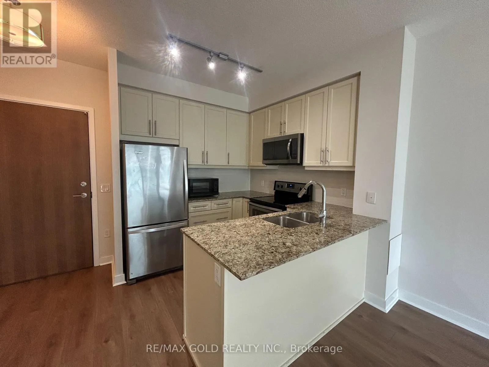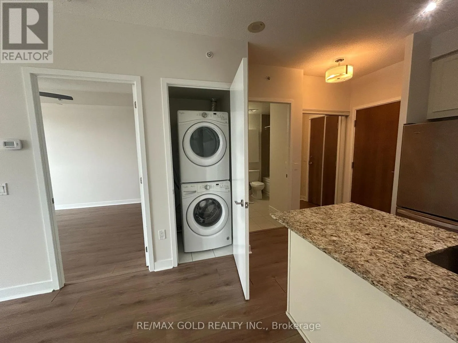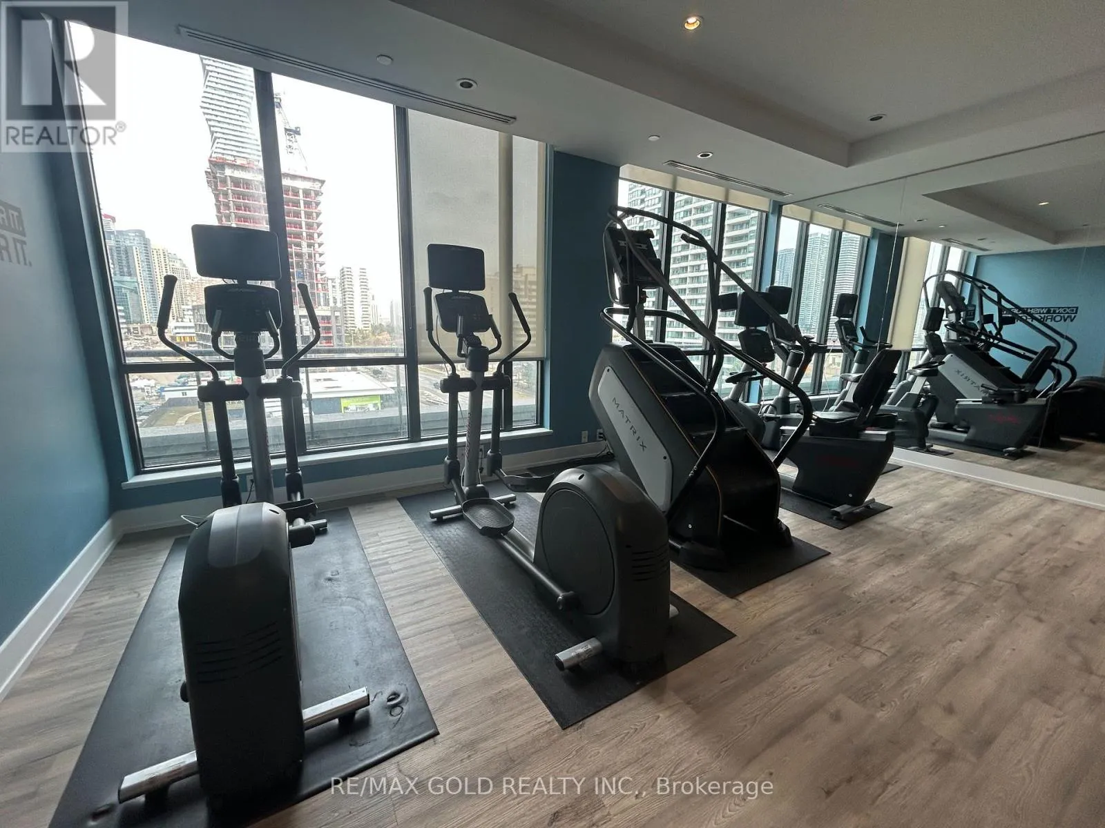 Burnhamthorpe and Mavis Experience elevated urban living in this beautifully upgraded 1-bedroom, 1-bathroom suite with1 parking space and 1 locker, ideally situated in the heart of Mississauga. Freshly painted with elegant modern zebra blinds, this residence offers a sophisticated open-concept layout, spacious bedroom, and huge windows that fill the space with natural light. Enjoy an unparalleled location just steps to Square One Shopping Centre, Celebration Square, and Sheridan College Hazel McCallion Campus, with convenient access to University of Toronto Mississauga, Hospital, Community Centers. Surrounded by upscale dining, entertainment, parks, and premium everyday conveniences, with seamless connectivity to public transit and major highways. Residents enjoy access to exceptional building amenities including concierge service, Property Management Office, guest suites (2 suites), dining room, theatre room, games room, hot tub, sauna, pool, gym, yoga room, party room and a BBQ area. Ideal for tenants seeking comfort, convenience, and a sophisticated lifestyle in a vibrant urban setting. (id:27476)