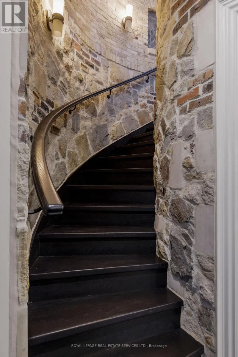 Cross Streets: Lorne Park Rd & Garden Rd. ** Directions: Lorne Park Rd - Garden Rd. Your castle awaits in Lorne Park, one of Mississauga's most prestigious lakeside communities, celebrated for its mature tree-lined streets, oversized lots, top-rated schools & seamless access to Toronto via the QEW & Clarkson GO. This extraordinary Medieval-inspired residence offers 4 bedrooms & 6 bathrooms, & an incredibly finished walk-up basement on a rare 79.25 x 274.83 ft lot, blending timeless Old-World architecture-steep rooflines, a striking stone turret, an arched entry & a stained-glass embellished entrance door-with modern luxury & functionality. The resort-style backyard is a private oasis featuring an in-ground saltwater pool with a new heater (2024), hot tub, mature trees, a covered stone terrace with a built-in natural gas BBQ, plus a custom hydro-equipped shed. Inside, artisan-crafted details abound, including stone feature walls, cathedral ceilings, wrought iron chandeliers, arched doorways & wide-plank engineered hardwood, complemented by modern comforts such as heated floors, 3 fireplaces, Sonos indoor/outdoor audio, custom Hunter Douglas blinds & extensive pot lighting. The main level impresses with a grand 2-storey living/dining room with a fireplace, a designer custom kitchen with premium Thermador & Gaggenau appliances, a breakfast room with a walkout, a family room with coffered ceilings & a fireplace, & a private office with custom cabinetry. Upstairs offers 4 spacious bedrooms, 3 elegant baths & a laundry room, while the walk-up lower level is designed for entertaining, along with wine tasting, fitness & spa/sauna spaces. The home offers a recently added hot tub, 3 upgraded electrical panels, upgraded alarm for heat detectors in garage, kitchen and mechanical room, & the garage has recently been fitted with a rough-in for a car charger & a rough-in for a future generator. Steps to a neighbourhood plaza, & minutes to Clarkson Village, parks & Lake Ontario, this one-of-a-kind estate delivers luxury, privacy & an unparalleled lifestyle. (id:27476)