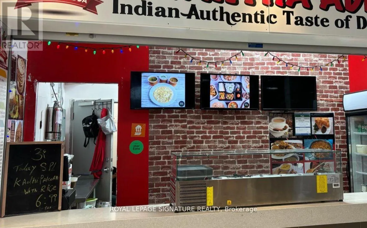 Derry/Goreway Dr Busy Food court Indian restaurant business fully equipped with exhaust hood, deep fryer, Gas stove, prep tables, Refrigerators, Freezers. shelves, display refrigerator and much more. Owner planning for bigger venture and expansion with franchisee opportunities. Name and corporation is not for sale. Very good option for chefs, first time entrepreneurs, catering business and tiffin services. Management allow early access to mall to vendors for prep in early mornings and late evenings. Big major anchor stores like Shoppers, Freshco, dollar stores, major banks, LCBO and many local food joints and stores in and around the mall. Close to Major hwys and bus terminal steps away. (id:27476)