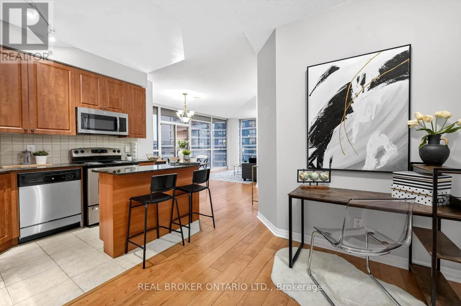 Cross Streets: Burnhamthorpe Rd W & Duke of York Blvd. ** Directions: Webb Drive & Duke of York Blvd. Well-maintained, move-in ready corner unit in the heart of Mississauga. 961 sq ft + private balcony with split-bedroom design, 9-ft ceilings and southeast exposure that fills the space with natural light. Open concept living and dining with a kitchen that includes granite countertops, stainless steel appliances, and a centre island that adds both prep space and a spot to gather. The primary bedroom offers his and hers closets and a 3-piece ensuite, while the den provides a practical work-from-home setup. Extensive building amenities include; gym, pool, hot tub, sauna, steam room, party room, media room, kids play area, guest suites, BBQ area, visitor parking, and bike storage. Super walkable location just steps to Square One, Celebration Square, restaurants, and everyday essentials. Easy access to MiWay, GO Transit, and major highways makes commuting simple. A smart move for buyers who value convenience, lifestyle and location. (id:27476)