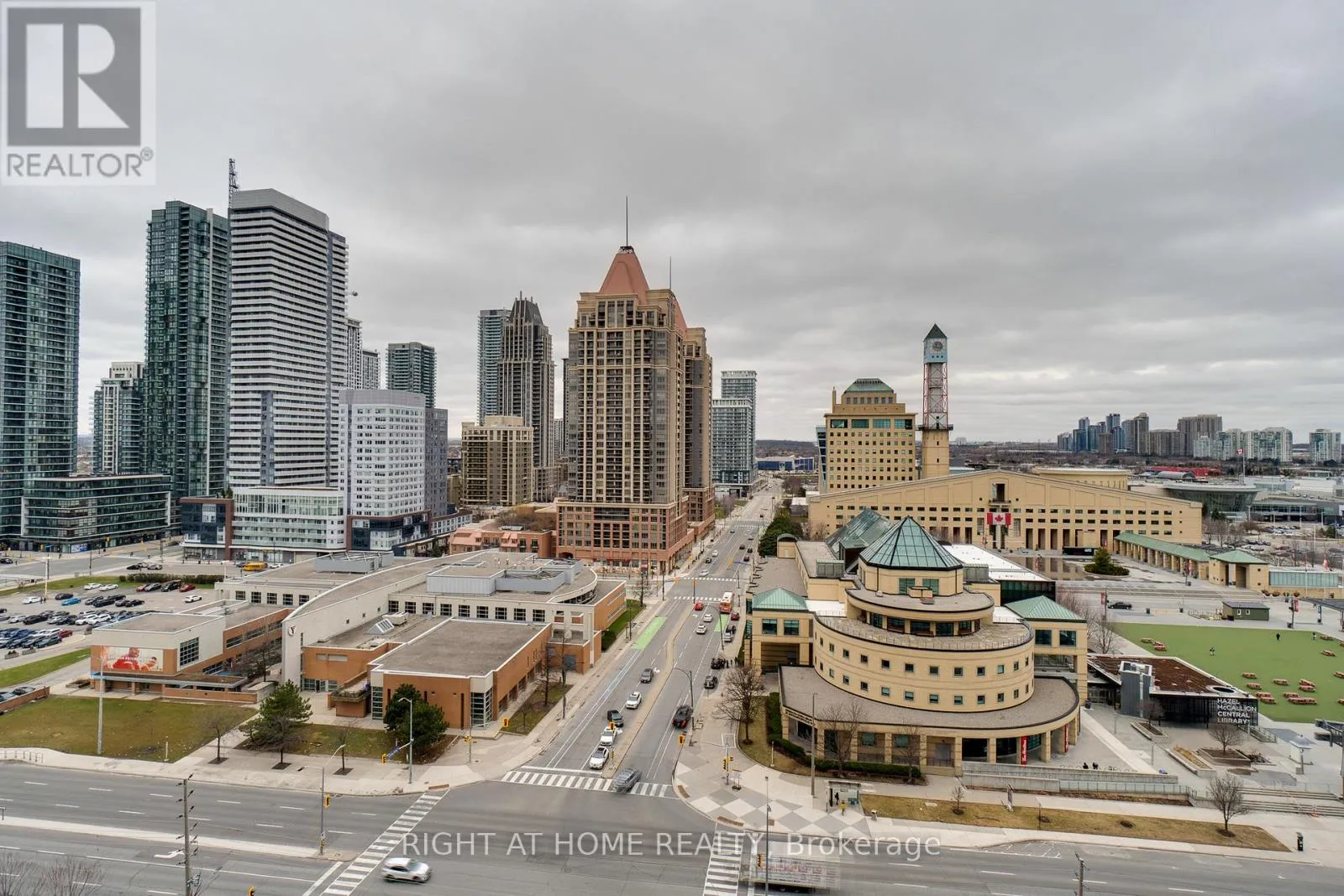 Burnhamthorpe Rd W/Living Arts Welcome to this stunning and rarely available 971 sq. ft. CORNER UNIT on the 17th floor, filled with natural light and offering breathtaking panoramic lake and city views to the north, west, and south. This spacious home features two large bedrooms plus a bright den with elegant glass French doors, along with two full bathrooms, including a comfortable primary ensuite designed for everyday convenience and relaxation.Enjoy the added value of TWO underground parking spaces and a large adjacent locker, as well as in-suite laundry with a new washer and dryer. The kitchen has been thoughtfully updated with a new sink and faucet, additional cabinetry, granite countertops, and newer full-size stainless steel appliances. Stylish upgraded laminate flooring throughout with soundproof underlay and fresh paint throughout, new custom blinds, make this home truly move-in ready. This gorgeous building offers modern amenities including a 24-hour concierge, indoor pool, hot tub, sauna, fitness centre, theatre room, party room, billiard room, guest suites, and a beautifully landscaped outdoor garden area with BBQ.Ideally located within walking distance to Square One Shopping Centre, close to Sheridan College Hazel McCallion Campus, and steps to transit with quick access to Hwy 403, this home offers exceptional comfort and convenience. Immediate possession available. Dogs (up to 15 lbs) welcome. (id:27476)