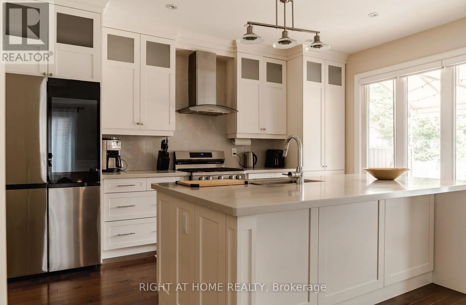 Greaves & Lakeshore Stunning custom-built home in prime Lakeview, steps to Lake Ontario & waterfront trails. Offering 2,538 sq ft of luxury plus 1,164 sq ft in finished lower level, this residence delivers exceptional space, style & comfort. Main floor features open-concept layout with 9' ceilings, hardwood floors, pot lighting & large picture windows overlooking tranquil back garden with above ground swimming pool. Gourmet Oakdale kitchen with huge centre island, stainless steel appliances & custom wood detail flows into great room with cozy gas fireplace & spacious dining area. Main floor also includes convenient laundry room, elegant 2-piece washroom & walkout to private deck & fully fenced backyard. Upper level offers hardwood throughout, bright skylight, 4 generous bedrooms & 3 luxurious bathrooms. Beautiful primary suite features stunning 5-piece ensuite & walk-in closet. Lower level boasts 9' ceilings, pot lighting, above-grade windows, huge family room, family size sauna, potential 5th bedroom & gorgeous 4-piece bathroom-ideal nanny or in-law suite. Oversized double-car garage is fully finished with direct access to main floor & lower level. Paved driveway provides parking for up to 7 cars, plus covered front porch for added charm. Entire home wired for phone, internet & cable. Newer furnace (2024), Roof (2023). Exceptional location within walking distance to excellent schools, close to QEW/427/403/401, minutes to GO Train & transit, yacht clubs, waterfront trail & vibrant Port Credit Village. Only 15 minutes to downtown Toronto & airport, offering true lakeside lifestyle with top-tier urban convenience. Must be seen to appreciate! (id:27476)