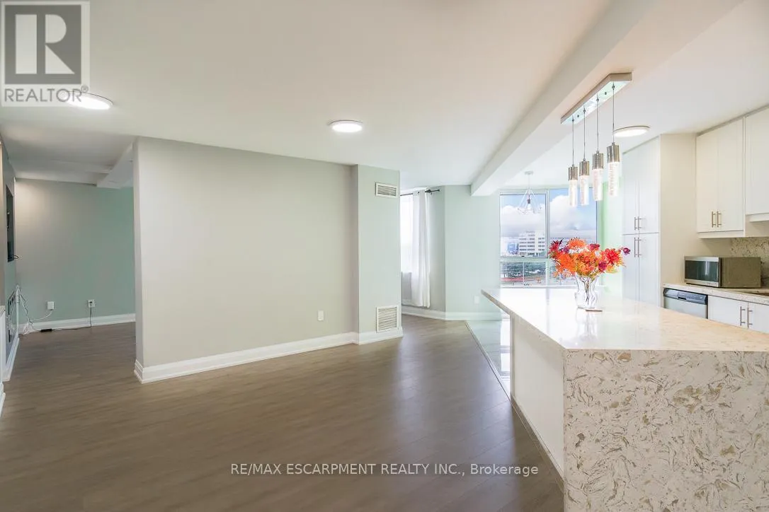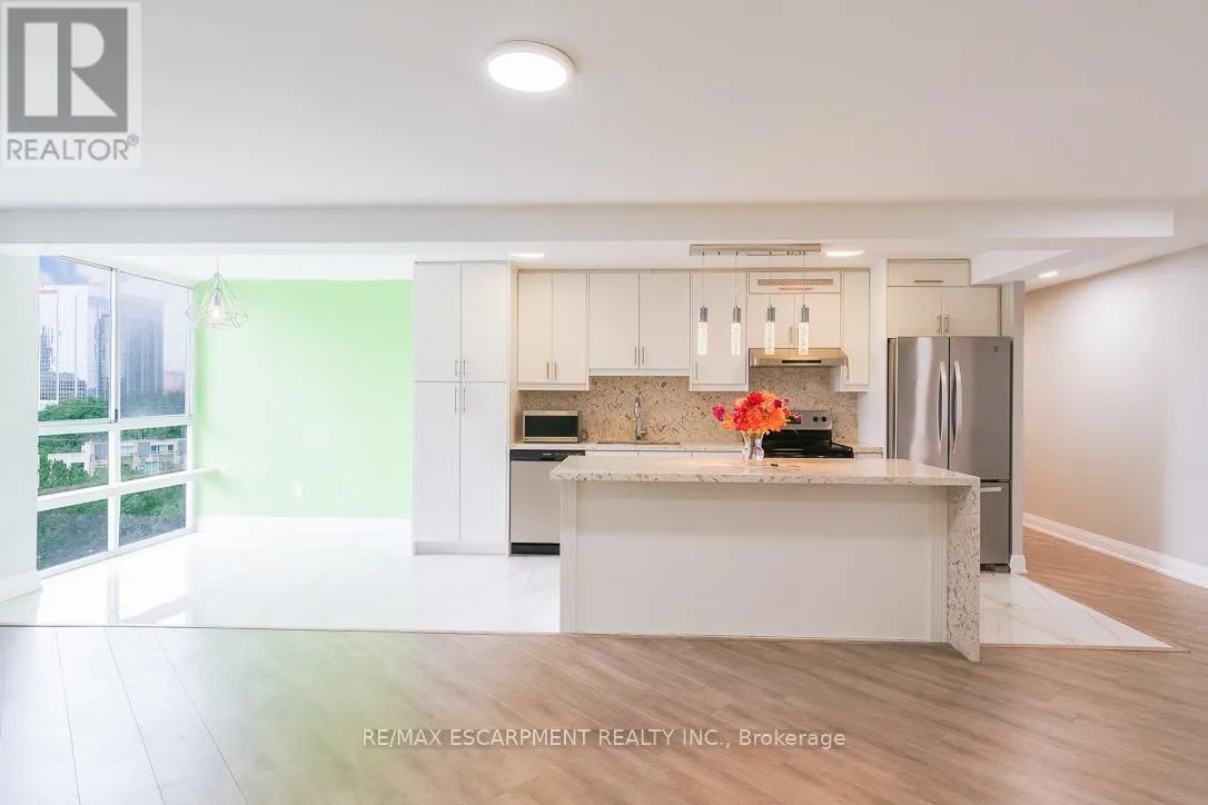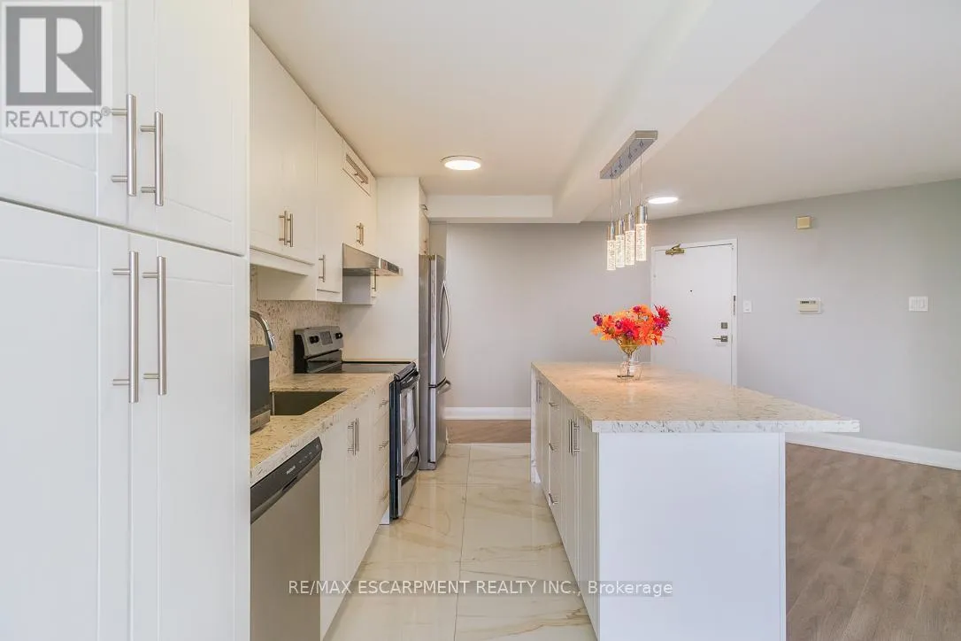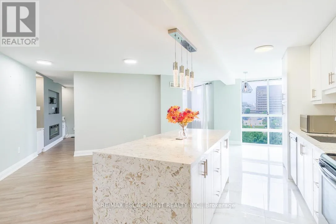 Burnhamthorpe/Hurontario Welcome to Place IV, an upscale residence in the heart of Mississauga, just minutes from Square One Shopping Centre, The Valleys Recreation Centre, and every convenience you could need. Surrounded by lush parkland and scenic walkways, this location offers both urban accessibility and natural beauty. This beautifully renovated suite features a stunning open-concept kitchen designed to impress, complete with a massive centre island, custom cabinetry, stylish backsplash, and stainless steel appliances. The layout offers generous space for both dining and a home office setup, ideal for modern living. Elegant finishes such as crown mouldings and pot lights enhance the space. The expansive living room is perfect for relaxing or entertaining, highlighted by a built-in electric fireplace and custom cabinetry. Both bedrooms are generously sized, with the primary bedroom offering a built-in closet and a private 3-piece ensuite. Each bathroom has been fully renovated with quality finishes. Enjoy breathtaking city views along with beautifully maintained garden surroundings. This exceptional condo is perfect for discerning tenants seek (id:27476)
