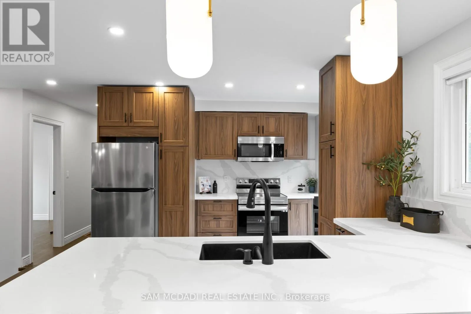 Cross Streets: Winston Churchill Blvd & Derry Road. ** Directions: If heading eastbound on Derry Rd, turn left on Copenhagen Rd and then turn right on Fayette Circle. If heading westbound on Derry Rd, turn right on Copenhagen Rd and then turn turn left on Fayette Circle. Welcome to 7209 Fayette Circle - a beautiful raised bungalow, fully renovated from top to bottom, offering over 1,800 sq. ft. of modern living space. Every corner of this home has been thoughtfully updated, blending sleek contemporary finishes with everyday functionality - perfect for families, investors, or multi-generational living. Step inside to find rich walnut flooring, brand new fixtures, and marble-inspired tiles and countertops that bring a touch of elegance throughout. The open-concept main level showcases a modern kitchen with stone counters, abundant cabinetry, stainless steel appliances, a breakfast bar, and a walkout to the backyard deck - ideal for morning coffee or entertaining. Overlooking the kitchen is a bright and spacious living and dining area, ideal for gatherings. The main level offers three generously sized bedrooms, including a primary suite with a walk-in closet and a luxurious 5-piece ensuite complete with a separate tub and shower. The lower level, designed with generous windows and directly accessible from street-level, functions like a main floor. Complete with a kitchen, bedroom, 3-piece bathroom, and laundry - it is perfect for extended family. This self-contained suite also offers strong rental income potential, providing an excellent opportunity to supplement mortgage payments or generate additional revenue. Nestled on a quiet street in the family-friendly Meadowvale community, this home offers exceptional convenience - just minutes from Meadowvale GO Station, top-rated public, private and catholic schools, big box stores (Wal-Mart, Superstore & Costco coming soon), parks, trails, and with easy access to Highways 401 and 407. With all-new bathrooms, doors, pot lights, baseboards, electrical switches, and fresh paint throughout, this home is truly move-in ready. Whether you're looking to live in, rent out, or invest, 7209 Fayette Circle delivers modern style, comfort, and versatility - ready for you to call home. (id:27476)