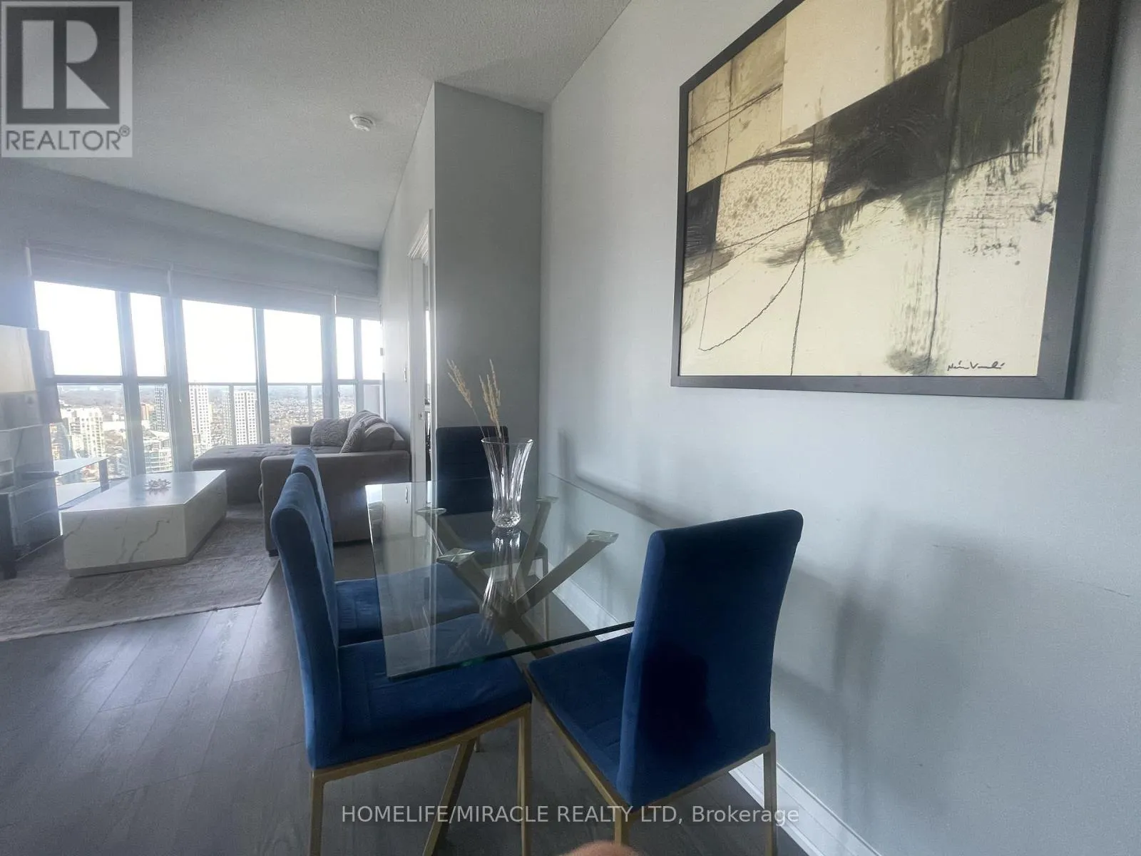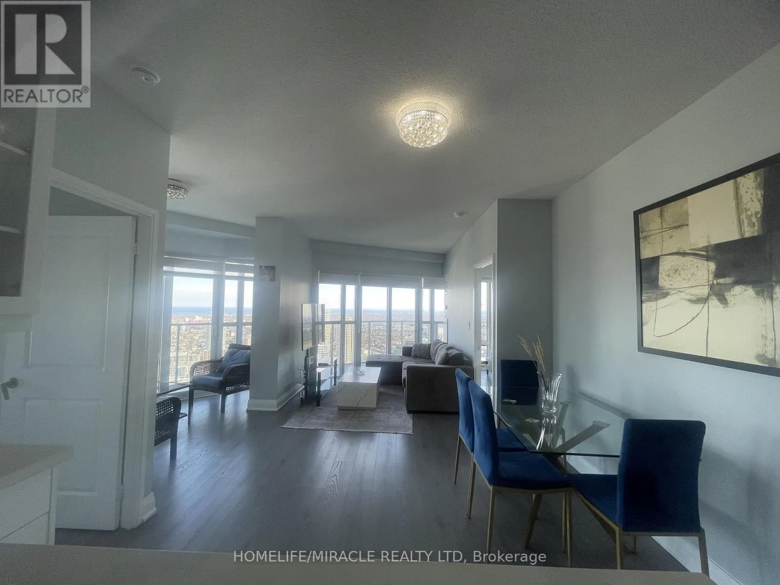 Hurontario and Burnhamthorpe Experience Upscale Living In The Heart Of Mississauga With This Tastefully Decorated, Fully Furnished 2 Bedroom + Den Suite On The 46Th Floor, Offering Breathtaking Panoramic Views And Abundant Natural Light. Featuring A Practical Open-Concept Layout With A Desirable Split-Bedroom Design, This Spacious Unit Boasts Upgraded Flooring, Newer Bathrooms, And A Modern Kitchen, While The Primary Bedroom Includes A Private Ensuite And His-And-Hers Closets. Enjoy Seamless Indoor-Outdoor Living With A Walkout To A Stunning Wrap-Around Balcony. Parking's Included. Residents Have Access To Premium, State Of The-Art Amenities Including Indoor And Outdoor Pools, A Fully Equipped Gym, Hot Tub, Sauna, Basketball And Squash Courts, BBQ/Sundeck, Media And Party Rooms, Guest Suites, And 24-Hour Concierge And Security , Making This An Exceptional Opportunity For Luxury And Convenience.Washer & Dryer ( 2026) (id:27476)
