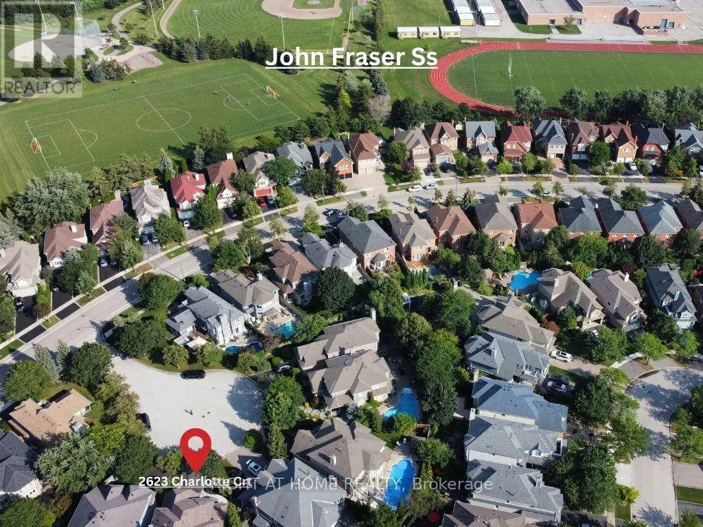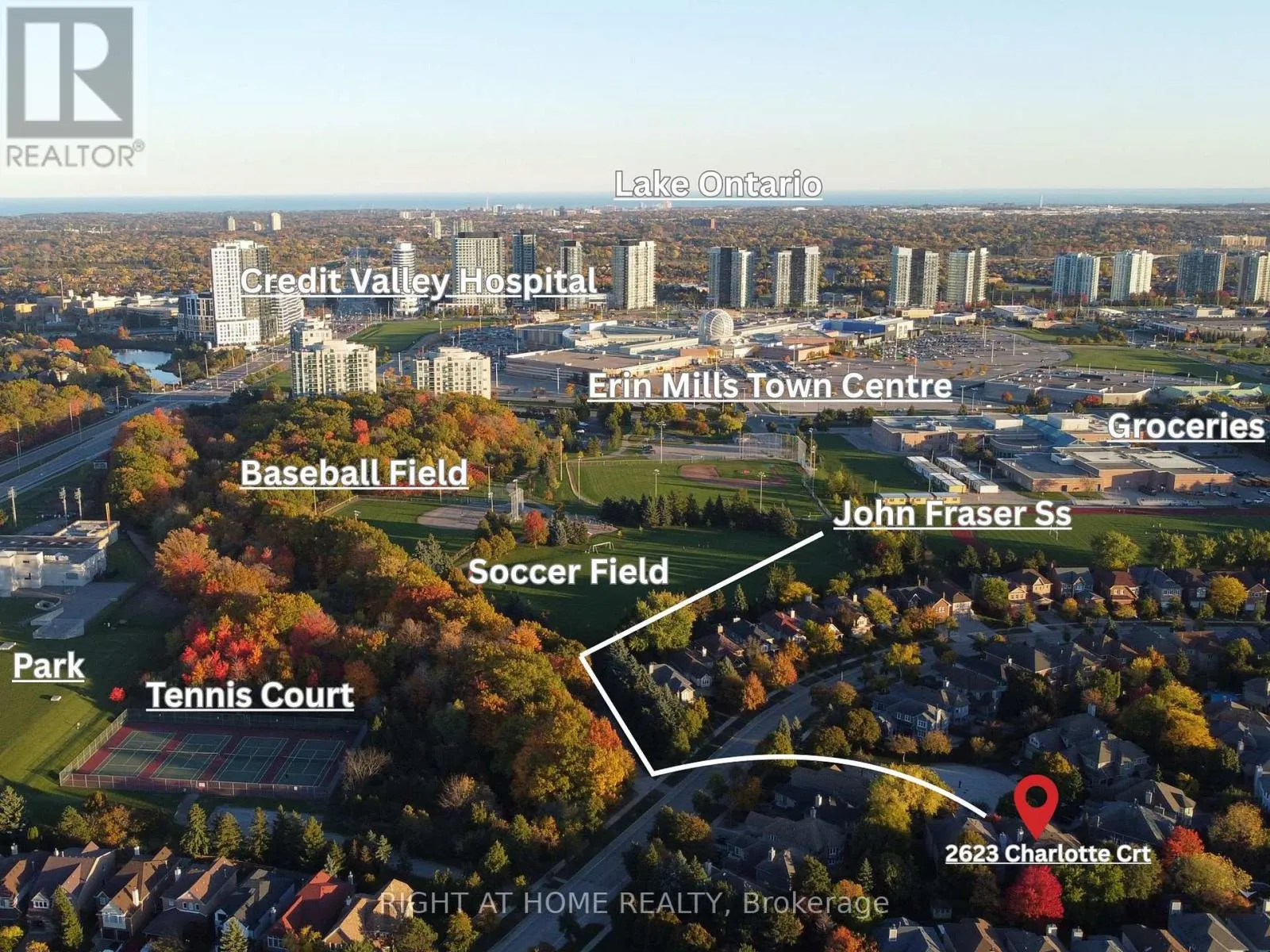Middlebury & Glen Erin Executive Home on a Premium Court in Central Erin Mills! Welcome to 2623 Charlotte Crt, a beautifully maintained residence nestled on a quiet cul-de-sac private court in one of Mississauga's most desirable communities, offering both privacy and a highly sought-after setting with excellent Feng Shui. The home features a beautiful covered front porch, creating a warm and welcoming entrance with added privacy from the street. This charming space is perfect for enjoying morning coffee or relaxing in the afternoon sun while overlooking the front yard. Situated on a rare pie-shaped lot, the property also offers a fully landscaped, fenced backyard with a tranquil pond, ideal for outdoor enjoyment and entertaining. Offering approx. 3,000 sq. ft., the home showcases hardwood flooring on the main level, a spacious layout, and a modern kitchen with granite countertops, perfect for family living and entertaining. The sun-filled primary bedroom features a private balcony, while the second floor offers 4 generously sized bedrooms and 3 full bathrooms, including 2 ensuites (primary bedroom and second bedroom). Convenient upper-level laundry adds to everyday comfort. Located in a top-ranked school district: John Fraser SS, St. Aloysius Gonzaga SS, Middlebury PS, and Thomas Middle School. Walking distance to schools, parks, community centre, and Erin Mills Town Centre. Minutes to Credit Valley Hospital, major highways, shopping (Walmart, Loblaws, Nations, Rona), dining, and entertainment (Cineplex). A rare opportunity to own a spacious family home in a premium location! Some photos are virtually staged for illustration purposes only. (id:27476)