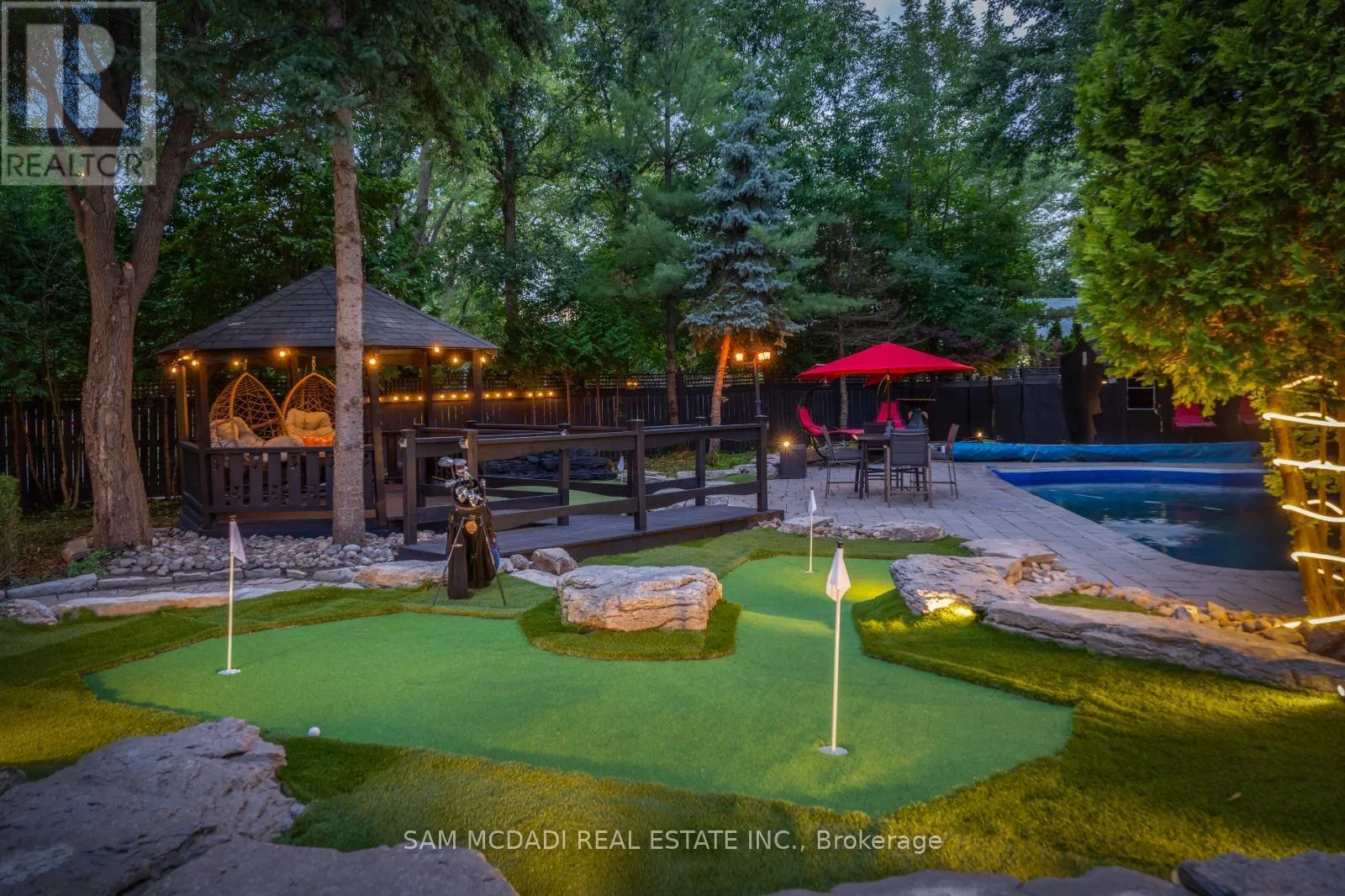 Mississauga Rd & QEW Unique Lorne Park mansion checking off 3 Major Boxes: Location, Lot Size & Square Footage. A homeowner's dream, this completely remodeled residence with wrought iron gates and a 7ft high wrought iron fence showcases Fascinating Finishes & Millwork T/O and offers 5+1 Bedrooms, 6 Baths in an Open Concept Layout w/ Expansive Windows Bringing In An Abundance Of Natural Light. 8ft tall wooden doors, 16 chandeliers and 10ft to 16ft raised ceilings add to the grandeur throughout. The chef's kitchen is equipped w/ a Lg Centre Island, B/I S/S Appliances, Beautiful Stone Counters & Ample Upper and Lower Cabinetry. Prodigious living and dining spaces are elevated by Crown molding, Pot Lights, Gas Fireplace, Eye Catching Millwork and original book-matched Italian tiles with 9ft & 12ft height. The home also fits a Rare In-Law Suite w/ a Full Size Kitchen, Living Rm, Bdrm & A 3pc Ensuite. The owners suite boasts raised ceiling heights, a gorgeous 5pc Ensuite & A Lg W/I Closet. Down the hall lie 2 More Bdrms That Share A 4pc Bath + A Junior Suite w/ A 5pc Ensuite & W/I Closet. The entertainer's basement features a Lg Rec Area, Gym, Wet Bar, Dining Area & Ample Storage Rms + A Den That Can Be Used As A 6th Bdrm. The mesmerizing resort-like backyard completes this home with an In-ground Pool, Several Fountains, A Covered Deck, Beautiful Cabana, a 4 hole mini-golf course & More! Absolutely breathtaking. The property also features a beautiful stone driveway; Beautiful Mature Trees & high rocks enhance the beauty and curb appeal of the property. (id:27476)