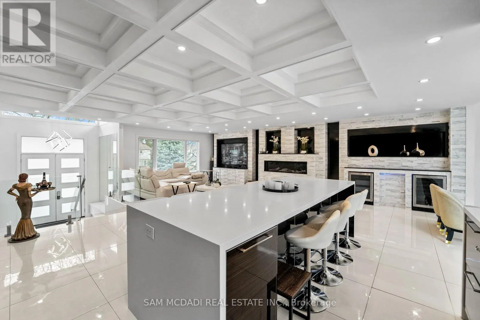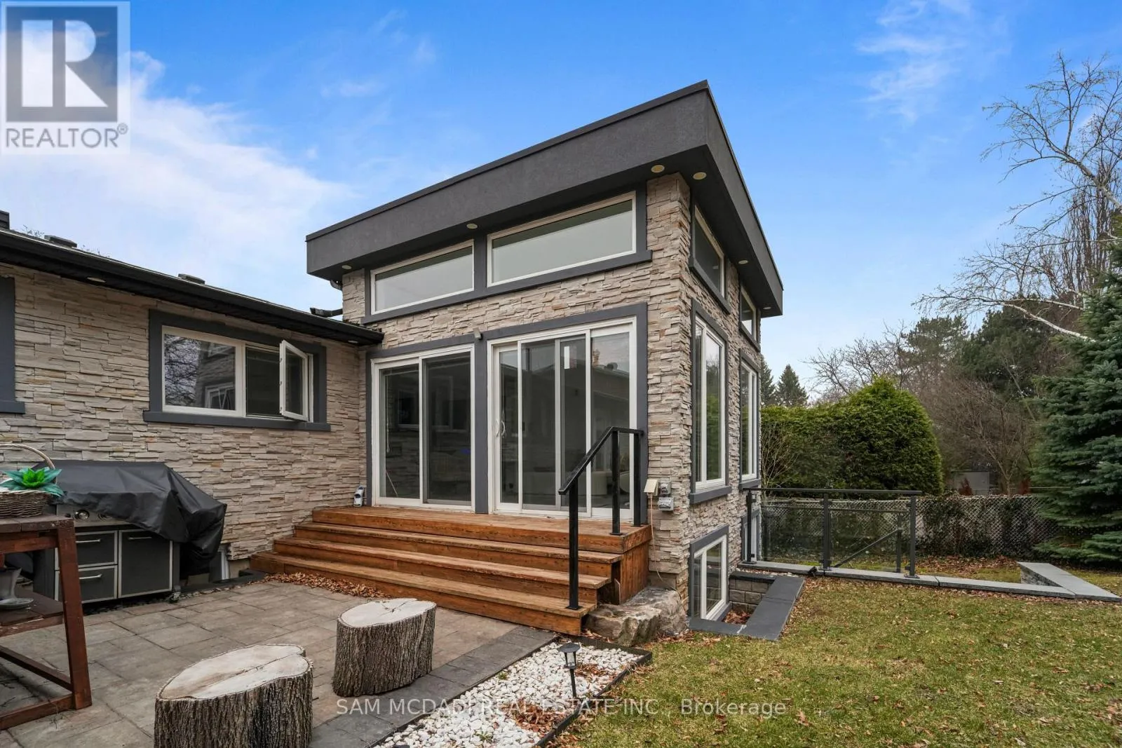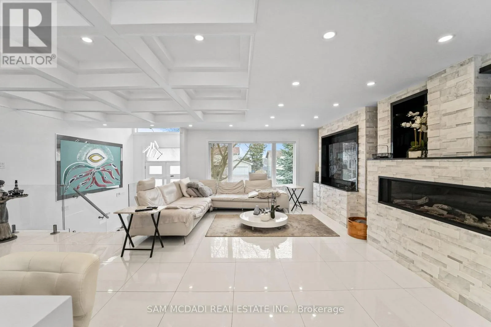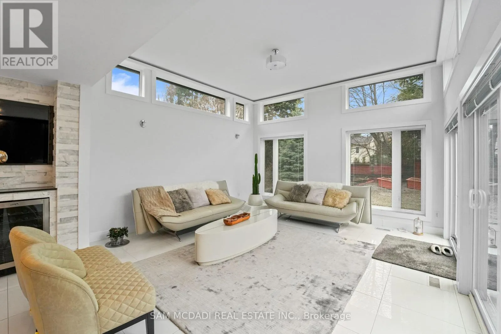 Cross Streets: Lakeshore Rd W & Silver Birch Tr. ** Directions: Via Lakeshore Rd W and Silver Birch Tr, then right onto Petrie Way. Tucked into one of Mississauga's most sought-after communities, this custom-renovated raised bungalow on Petrie Way is a rare offering with the warmth of a true family home. From the moment you step through the double-height foyer, flooded with natural light and anchored by gleaming large-format porcelain floors, you sense that every detail here was chosen with intention. The main floor flows seamlessly, connecting the principal rooms in a way that invites gatherings of every size. Coffered ceilings add depth overhead, while the stunning stone feature wall anchors the living room, complete with a fireplace that warms the winters and becomes the backdrop of a thousand family moments. The chef's kitchen is both a workspace and a showpiece. Custom cabinetry in rich dark tones, a waterfall quartz island, breakfast bar, built-in appliances, and generous countertop space allow two cooks to move comfortably while the island becomes the natural gathering spot when friends arrive. Step through to the sun-drenched family room and feel the shift: soaring ceilings, panoramic windows on three sides, clerestory glass above, and sliding doors that dissolve the boundary between indoors and out. Walk out to the spacious backyard, ideal for entertaining, summer barbecues, or quiet evenings outdoors. Three bedrooms occupy the main floor. The primary suite is a genuine retreat with a yard walkout, walk-in closet, and 3-piece ensuite. Two additional well-sized bedrooms with closets complete the level. Below, a self-contained apartment with a separate entrance offers three bedrooms, 5-piece bath, kitchen, family room, and backyard walkout. Multigenerational families and investors alike will recognize the extraordinary potential. A location celebrated for excellent schools, mature tree-lined streets, quick QEW and GO access, steps to Rattray Marsh, Jack Darling Memorial Park, and all that Clarkson Village has to offer. (id:27476)