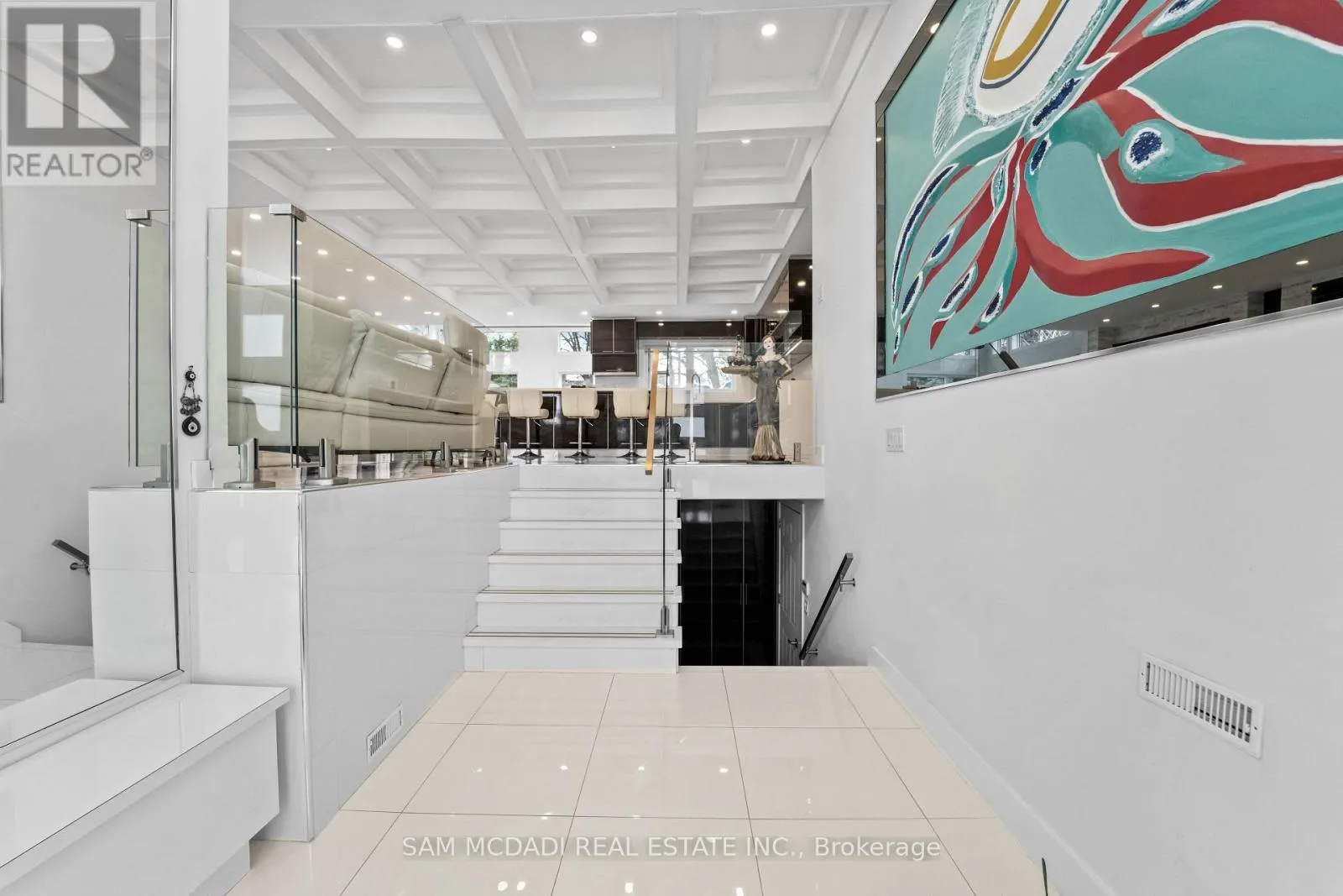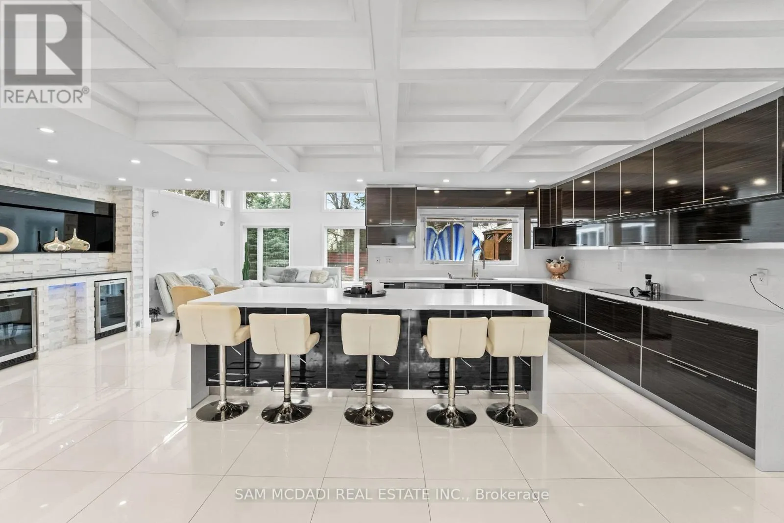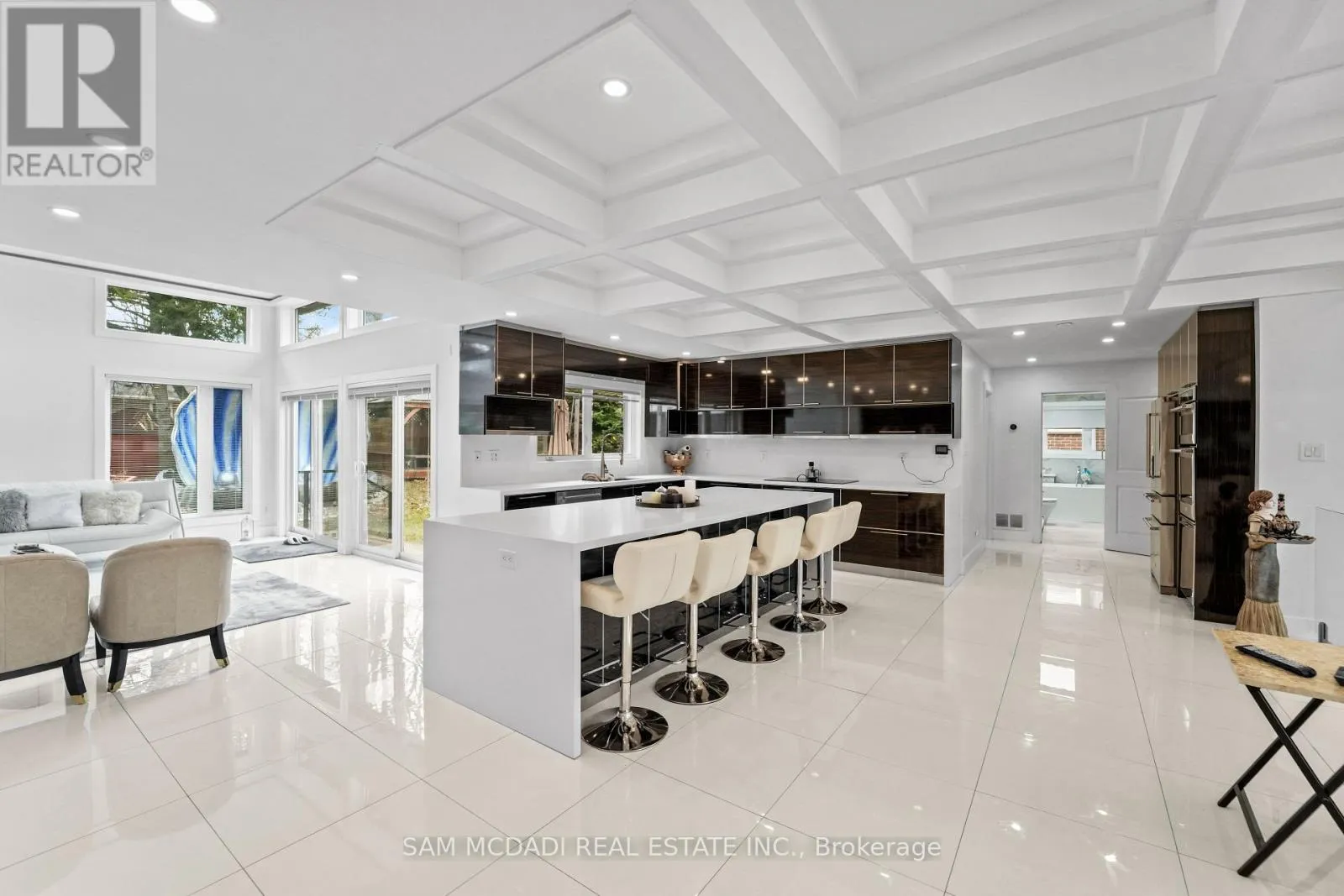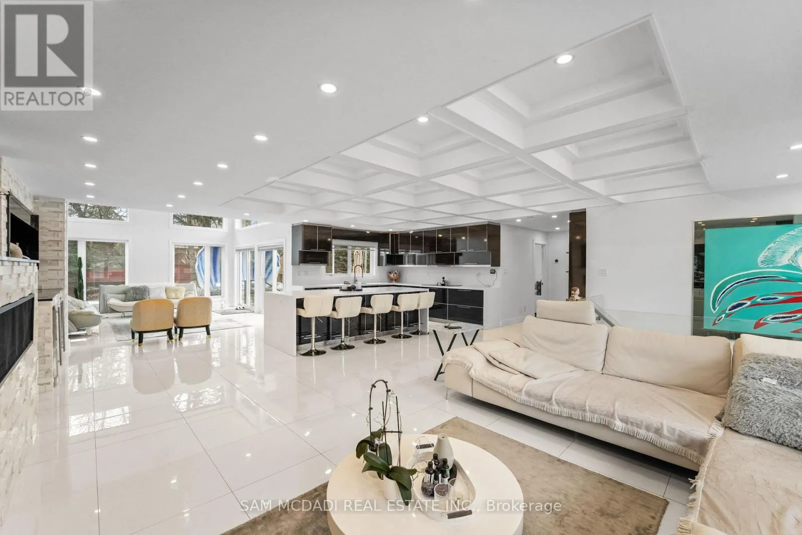 Cross Streets: Lakeshore Rd W & Silver Birch Tr. ** Directions: Via Lakeshore Rd W and Silver Birch Tr, then right onto Petrie Way. Tucked into one of Mississauga's most sought-after communities, this custom-renovated raised bungalow on Petrie Way is a rare offering with the warmth of a true family home. From the moment you step through the double-height foyer, flooded with natural light and anchored by gleaming large-format porcelain floors, you sense that every detail here was chosen with intention. The main floor flows seamlessly, connecting the principal rooms in a way that invites gatherings of every size. Coffered ceilings add depth overhead, while the stunning stone feature wall anchors the living room, complete with a fireplace that warms the winters and becomes the backdrop of a thousand family moments. The chef's kitchen is both a workspace and a showpiece. Custom cabinetry in rich dark tones, a waterfall quartz island, breakfast bar, built-in appliances, and generous countertop space allow two cooks to move comfortably while the island becomes the natural gathering spot when friends arrive. Step through to the sun-drenched family room and feel the shift: soaring ceilings, panoramic windows on three sides, clerestory glass above, and sliding doors that dissolve the boundary between indoors and out. Walk out to the spacious backyard, ideal for entertaining, summer barbecues, or quiet evenings outdoors. Three bedrooms occupy the main floor. The primary suite is a genuine retreat with a yard walkout, walk-in closet, and 3-piece ensuite. Two additional well-sized bedrooms with closets complete the level. Below, a self-contained apartment with a separate entrance offers three bedrooms, 5-piece bath, kitchen, family room, and backyard walkout. Multigenerational families and investors alike will recognize the extraordinary potential. A location celebrated for excellent schools, mature tree-lined streets, quick QEW and GO access, steps to Rattray Marsh, Jack Darling Memorial Park, and all that Clarkson Village has to offer. (id:27476)