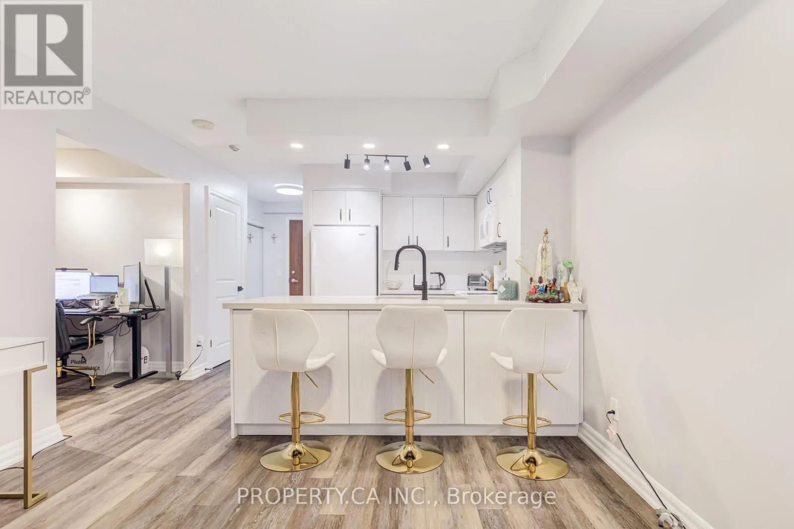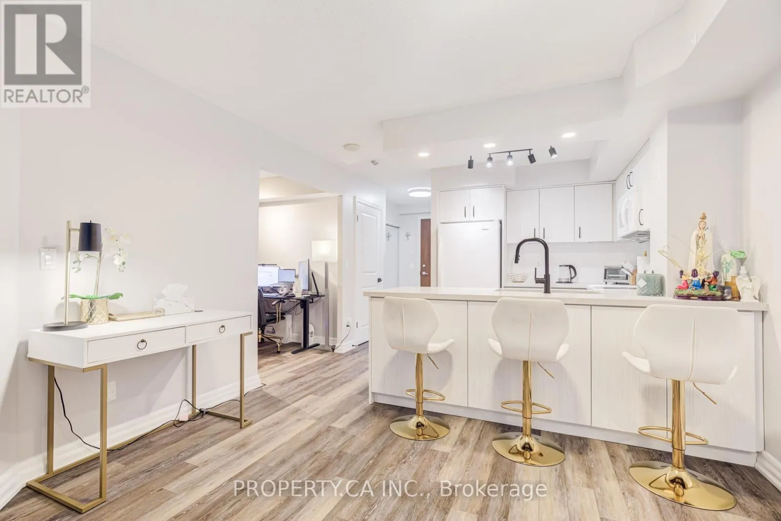 Burnhamthorpe Rd/Living Arts Discover urban luxury next to Square One in Mississauga! This stylish renovated 1 Bedroom + Den offers 2 full baths, parking, & locker. Enjoy the bright, open living spaces with luxury vinyl plank flooring and a large, fully covered terrace sized balcony. The gourmet kitchen features quartz countertops, pot lights and additional cupboards for storage. Relax in the master bedroom with an ensuite shower, and utilize the spacious den as a home office. With a private balcony boasting city views and prime location near shopping, dining, and transit, this condo offers the ultimate urban lifestyle, perfect for professionals and couples alike. Don't miss out schedule your private tour today! (id:27476)