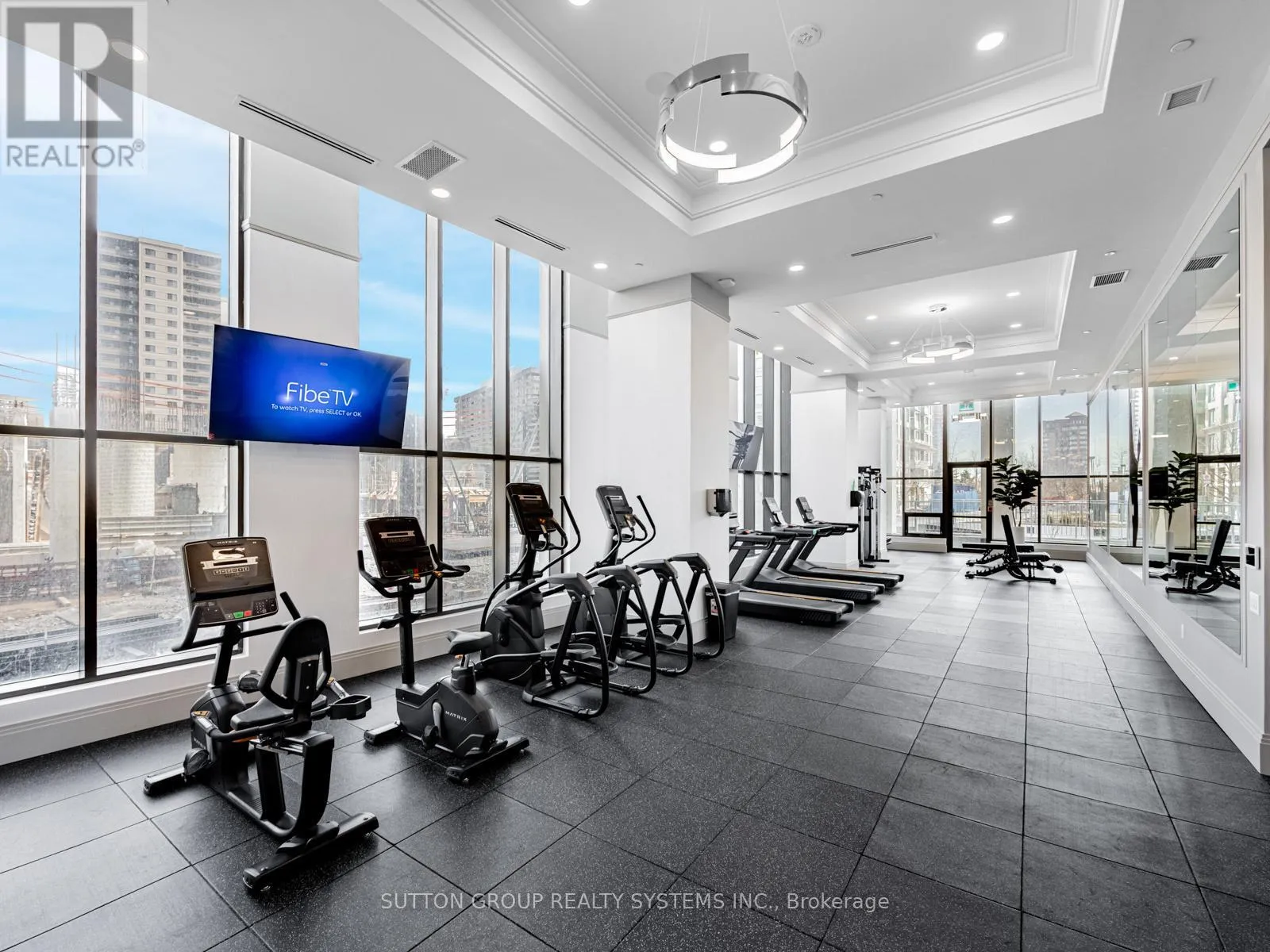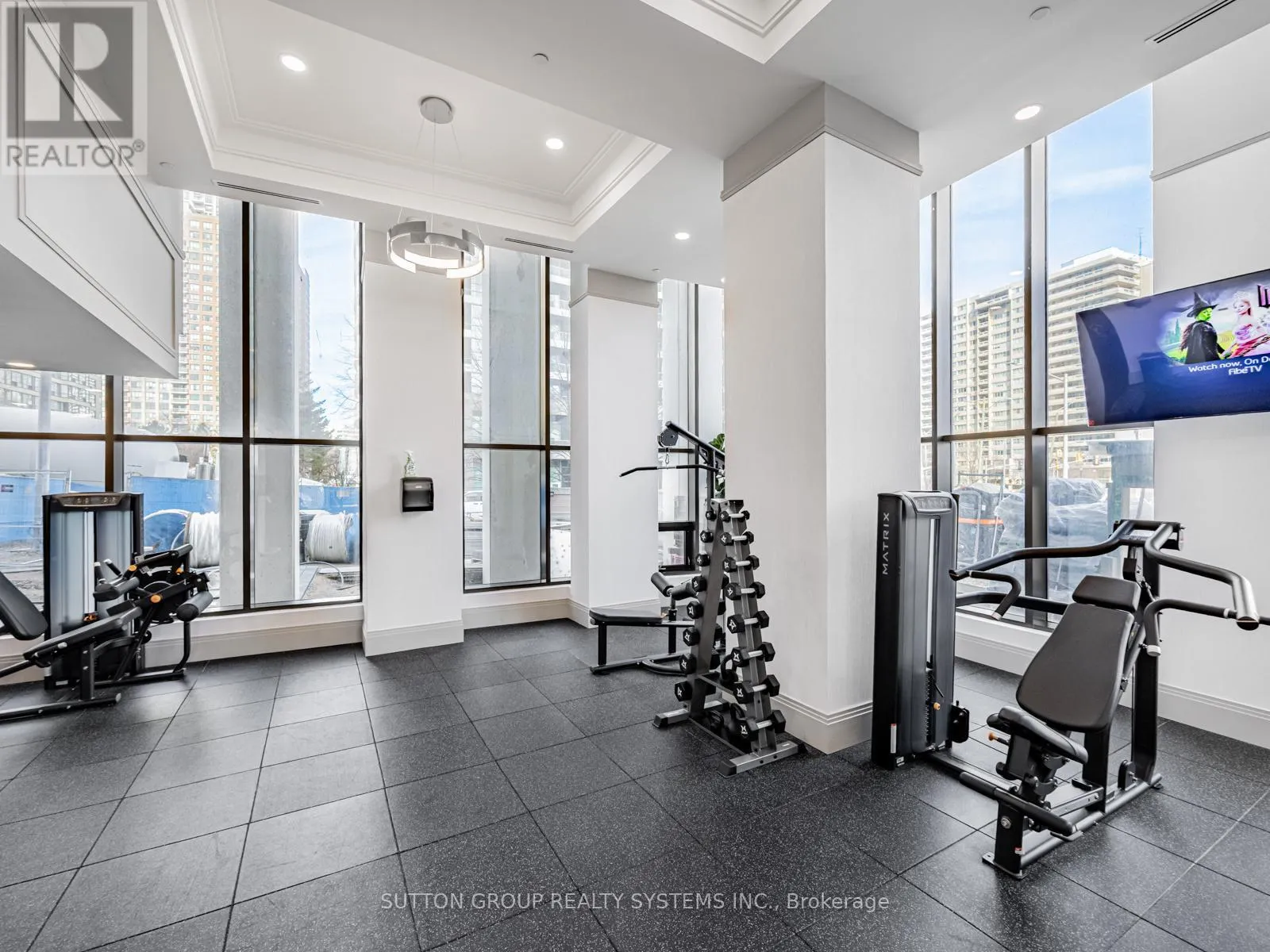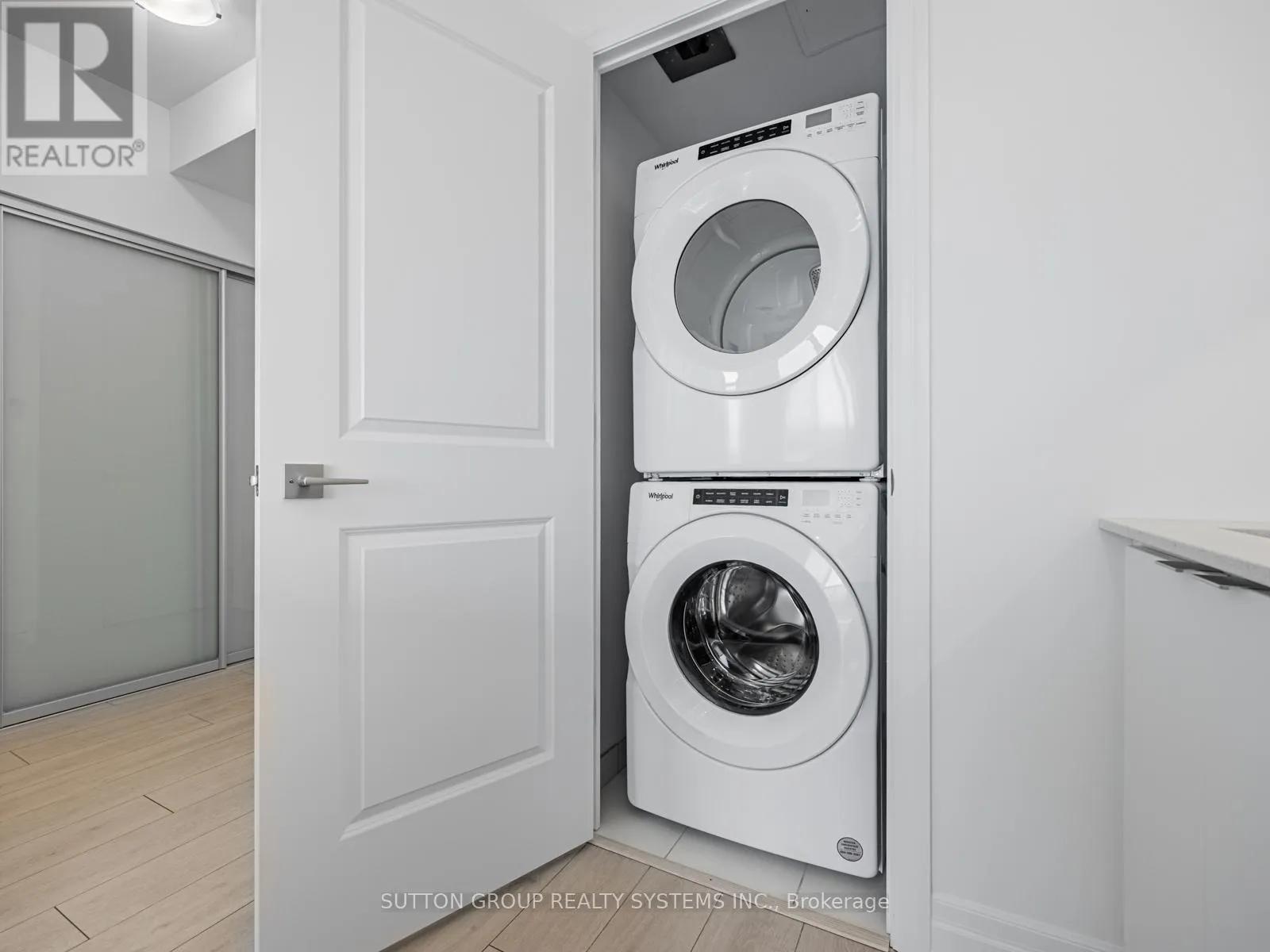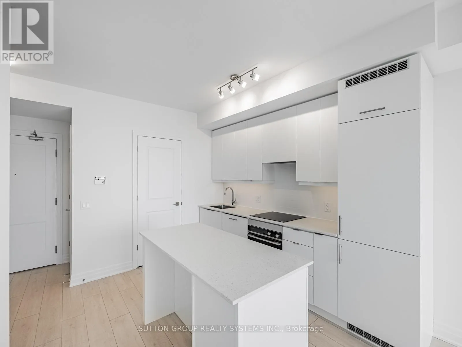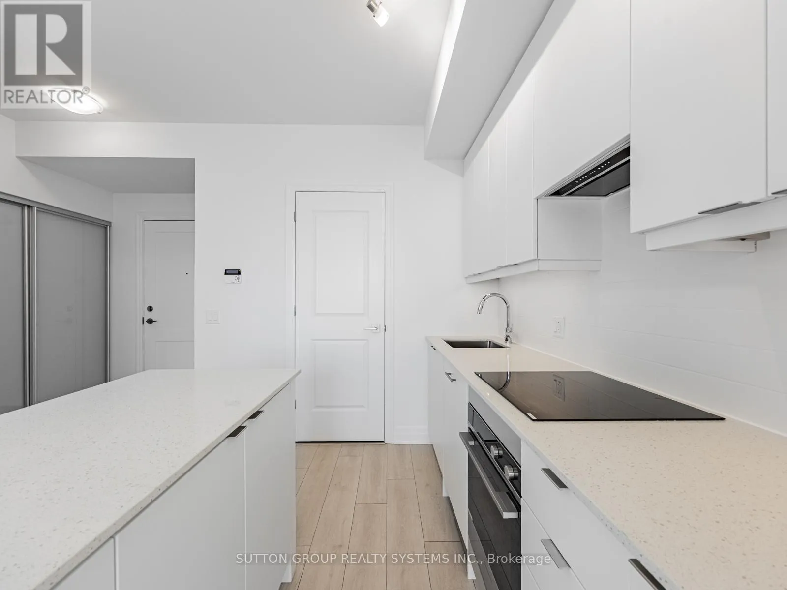Cross Streets: Hurontario St & Elm St W. ** Directions: West of Hurontario St to Elm St W. Only one year old, modern, and sophisticated 1-bedroom + spacious den, 2-bathroom suite at Edge Towers 2 by Solmar! Ideally situated in the heart of Mississauga, just steps from Square One. Featuring 9 ft. smooth ceilings, premium plank laminate flooring, and high-quality baseboards and casings throughout. Enjoy floor-to-ceiling windows with a stunning, south-facing, unobstructed view of the lake and CN Tower! The open-concept layout boasts contemporary and elegant finishes. The sleek kitchen includes high-end built-in Fisher & Paykel appliances, an island, quartz countertops with undermount sinks, and a ceramic backsplash. The primary bedroom offers a 3-piece ensuite and a spacious closet. The versatile den, with sliding doors, can serve as a second bedroom or office, complete with its own 3-piece washroom. Bathrooms feature frameless glass shower doors and quartz countertops. Building amenities include a 24-hour concierge, a party room, a rooftop terrace, a Wi-Fi lounge, a games room, a fitness center, and a theatre room. Conveniently located with easy access to major highways (401, 403, 407, 410, and QEW), the upcoming Hurontario LRT, Sheridan College, Celebration Square, the Central Library, and the YMCA. Includes one parking spot, one locker, and desirable south-facing views of the lake and Toronto's CN Tower! (id:27476)