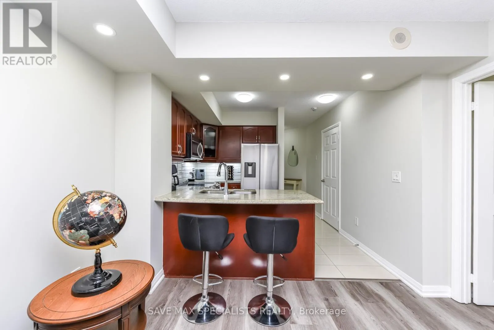 Eglinton Ave./Hurontario Welcome to the Tuscany Gate community, Stunning well maintained 2 bedroom,2 Bath suite withopen, unobstructed views and exceptional privacy rarely found in condo living. Filled withnatural light, this thoughtfully designed home features a functional open concept layout thateffortlessly connects the living and dining areas to a fully upgraded kitchen complete withquartz waterfall countertops & stainless steel appliances. Freshly painted, newly installedmodern laminate flooring and pot lights throughout. The suite also includes modern Window shadsand a private balcony, perfect for morning coffee or unwinding at sunset. The primary bedroomoffers a walk-in closet and a 3 piece ensuite, while the second bedroom provides flexible spacefor guests, family, or a dedicated home office. Residents enjoy an impressive selection ofamenities, including an outdoor pool with cabana, fitness center, yoga room, party room, gameslounge, playground, car wash, security, and ample visitor parking. Ideally located neartransit, the upcoming LRT, Square One, shopping, groceries, major highways(403,401,410) &Toronto Pearson International Airport. Includes TWO (2) underground parking spaces and onelocker. A quiet, stylish & low maintenance home offering privacy, light, and everydayconvenience - an exceptional opportunity in today's market. (id:27476)