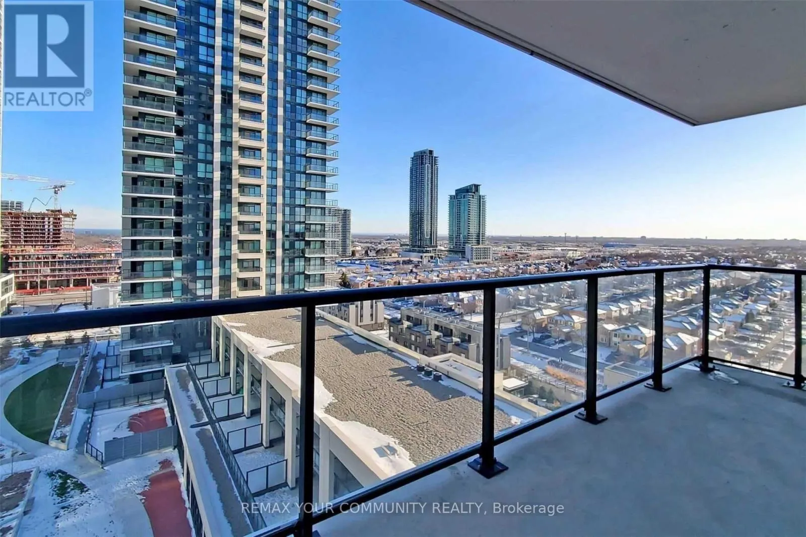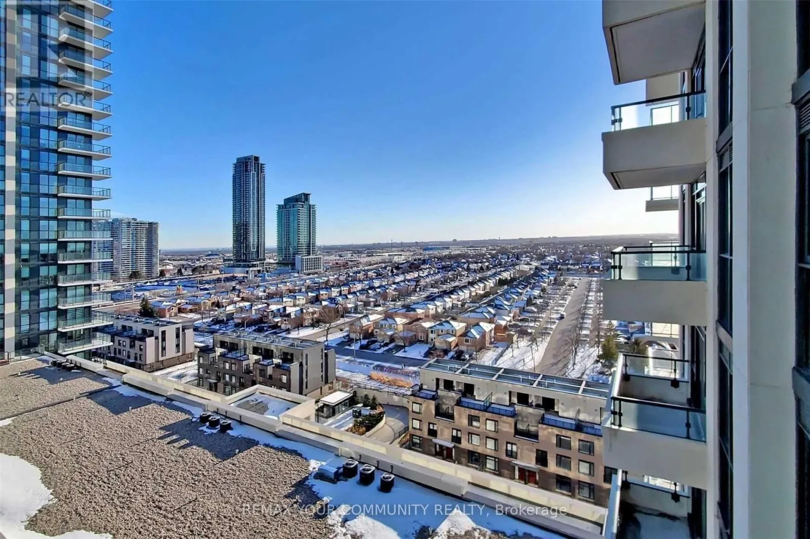 BURNHAMTHORPE & CONDFEDERATION Bright, spacious, and ideally located, this 2-bedroom, 2-bath corner suite is filled with natural light thanks to floor-to-ceiling windows and hardwood flooring throughout. The upgraded kitchen includes stainless steel appliances and flows comfortably into the open living space. The primary bedroom offers a modern ensuite, while the second bedroom provides flexibility as a child's room,guest bedroom, or home office, making it well suited for a family of three. Step out onto the oversized wrap-around balcony and enjoy impressive city views. The unit will be freshly painted prior to tenant occupancy. Located just steps from Square One, the Living Arts Centre, library, and a wide selection of restaurants, lounges, and entertainment. (id:27476)