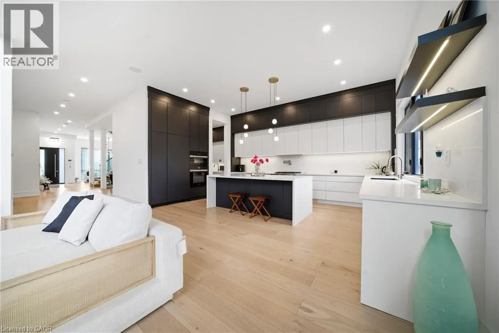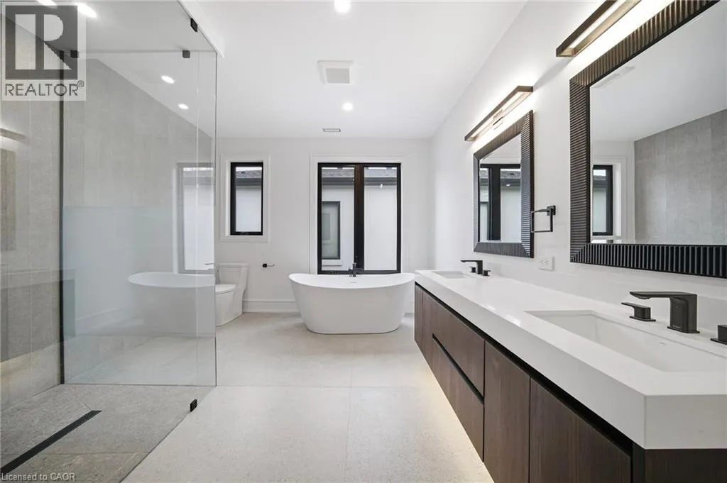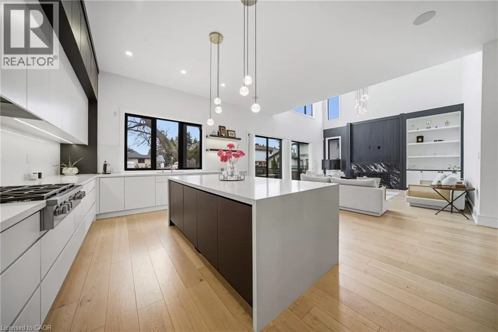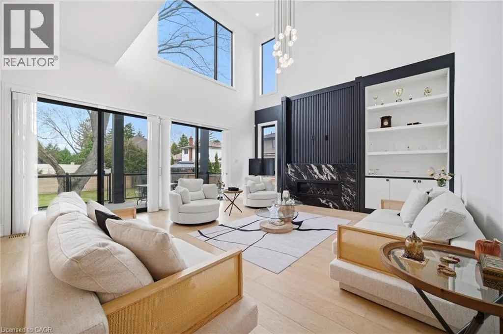 Welcome to this exceptional custom-built Masterpiece in prestigious Erindale, where timeless elegance meets modern sophistication. Set on a rare and premium 50x165 ft lot, this home offers over 4,000 sqft of meticulously designed living space above grade. The main level showcases soaring 11-ft ceilings, a grand foyer w/ heated floors, wide-plank engineered hardwood floors, & a breathtaking great room w/ a dramatic 21-ft open-to-above design & gas fireplace. The chef-inspired kitchen is a true showpiece, featuring a waterfall quartz island, floor-to-ceiling custom cabinetry, panel-ready Miele appliances including a side-by-side Fridge/Freezer, Gas Range, Built-in Oven & Dishwasher & a spacious walk-in pantry. A main floor office or bedroom w/ private ensuite adds both convenience & flexibility for multigenerational living or work-from-home needs. Upstairs, four generously sized bedrooms each offer custom built-in closets & private, spa-like ensuites w/ designer fixtures . The primary retreat is a sanctuary of its own, complete w/ a private balcony overlooking mature trees, heated floors, Towel warmer, custom vanity, glass shower, & a luxurious freestanding tub. Additional features include a solid wood staircase w/ glass railings, heated laundry floors, & integrated audio system throughout the home. The fully finished walkout basement w/ 9-ft ceilings provides additional living space, including a recreation room, bedroom w/ ensuite, full bathroom & flexible areas for extended family, guests, or a nanny suite, along w/ a rough-in for a wet bar. Exterior highlights include a professionally landscaped front & rear yard w/ LED lighting, covered porch with glass railings, natural gas line for BBQ & a fully fenced private backyard perfect for entertaining. Additional features include central vacuum, multiple fireplaces, EV charging rough-in, multi-zone audio, security cameras, & dual furnaces w/ separate controls for optimal comfort. *Virtually staged pictures** (id:27476)