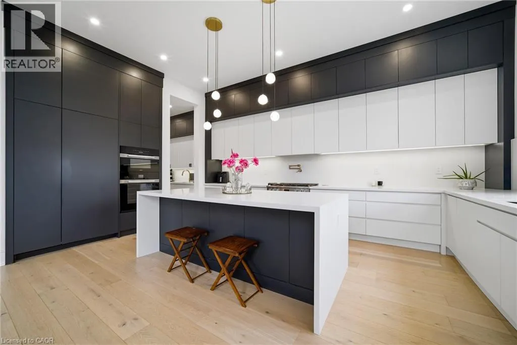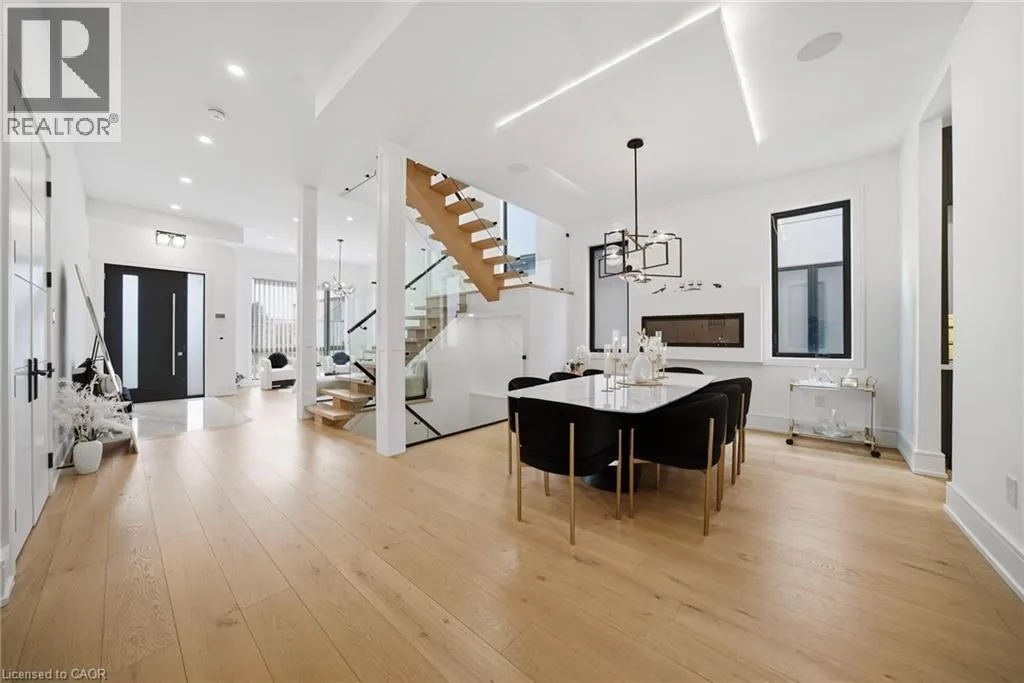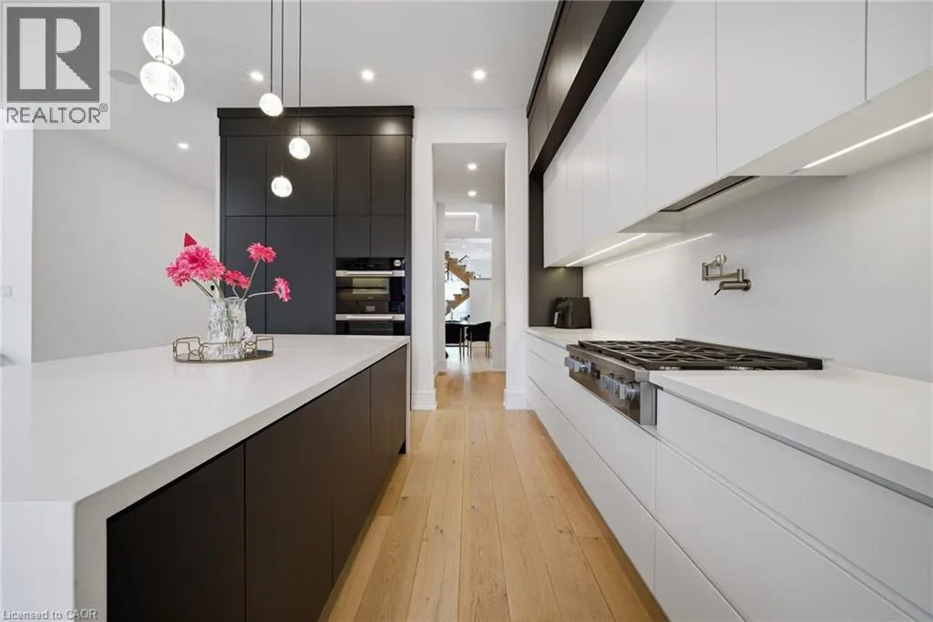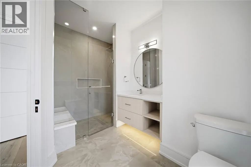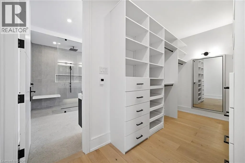 Welcome to this exceptional custom-built Masterpiece in prestigious Erindale, where timeless elegance meets modern sophistication. Set on a rare and premium 50x165 ft lot, this home offers over 4,000 sqft of meticulously designed living space above grade. The main level showcases soaring 11-ft ceilings, a grand foyer w/ heated floors, wide-plank engineered hardwood floors, & a breathtaking great room w/ a dramatic 21-ft open-to-above design & gas fireplace. The chef-inspired kitchen is a true showpiece, featuring a waterfall quartz island, floor-to-ceiling custom cabinetry, panel-ready Miele appliances including a side-by-side Fridge/Freezer, Gas Range, Built-in Oven & Dishwasher & a spacious walk-in pantry. A main floor office or bedroom w/ private ensuite adds both convenience & flexibility for multigenerational living or work-from-home needs. Upstairs, four generously sized bedrooms each offer custom built-in closets & private, spa-like ensuites w/ designer fixtures . The primary retreat is a sanctuary of its own, complete w/ a private balcony overlooking mature trees, heated floors, Towel warmer, custom vanity, glass shower, & a luxurious freestanding tub. Additional features include a solid wood staircase w/ glass railings, heated laundry floors, & integrated audio system throughout the home. The fully finished walkout basement w/ 9-ft ceilings provides additional living space, including a recreation room, bedroom w/ ensuite, full bathroom & flexible areas for extended family, guests, or a nanny suite, along w/ a rough-in for a wet bar. Exterior highlights include a professionally landscaped front & rear yard w/ LED lighting, covered porch with glass railings, natural gas line for BBQ & a fully fenced private backyard perfect for entertaining. Additional features include central vacuum, multiple fireplaces, EV charging rough-in, multi-zone audio, security cameras, & dual furnaces w/ separate controls for optimal comfort. *Virtually staged pictures** (id:27476)