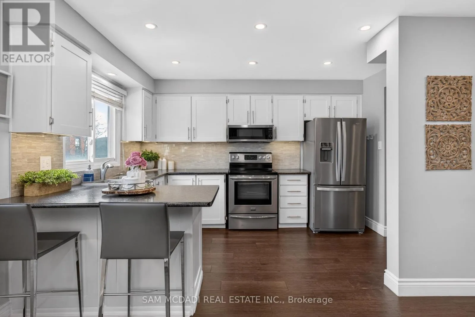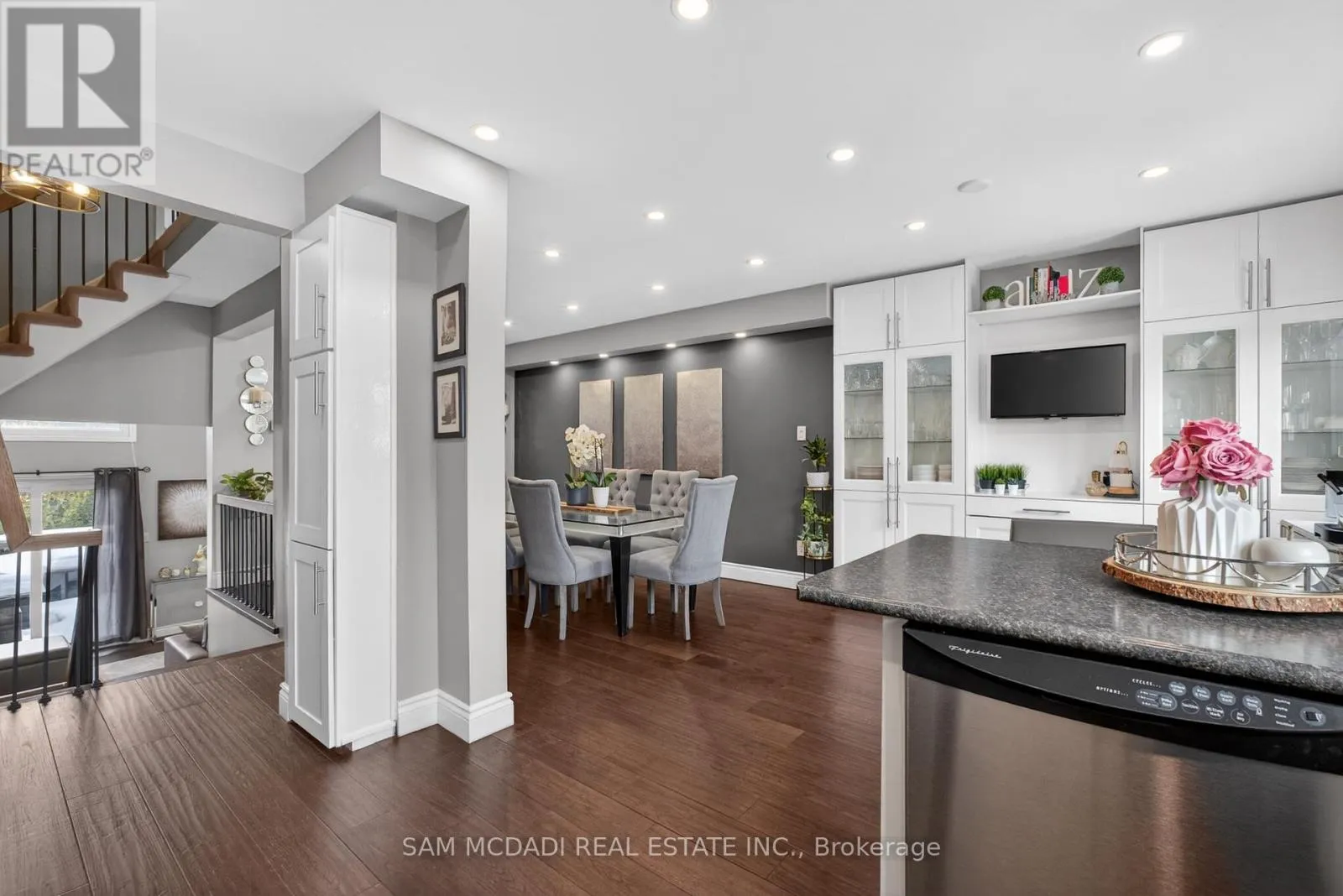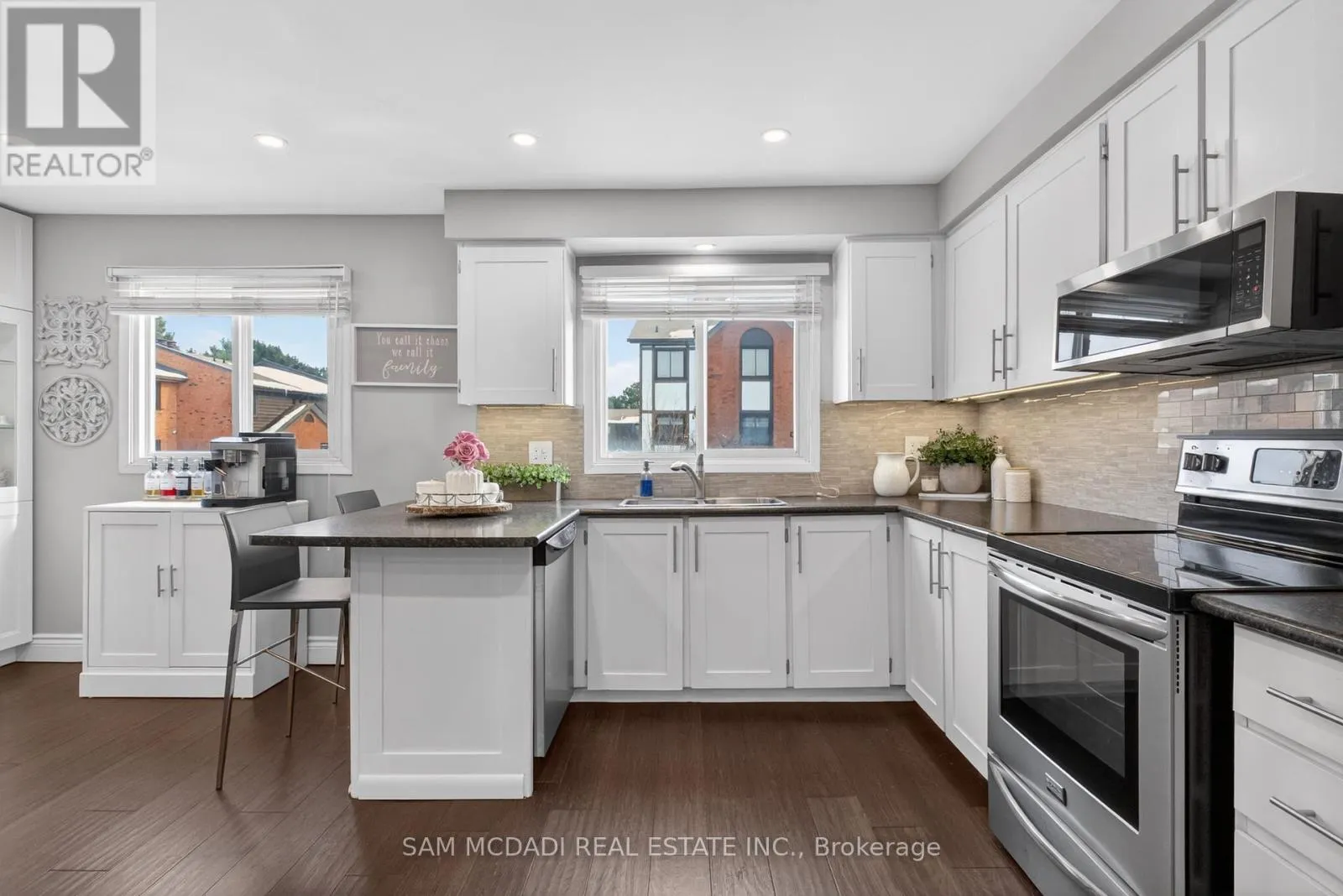 Rathburn Rd E & Fieldgate Dr Location! Location! Location! Welcome to the heart of Rockwood Village, bordering Etobicoke in the vibrant City of Mississauga. Nestled in a highly desirable and quiet family-friendly complex backing onto detached homes, this beautifully updated and meticulously maintained executive residence offers the perfect blend of space, style, and convenience. Boasting 1,540 sq. ft. of bright, open-concept living space, this 3-bedroom, 3-bathroom home impresses from the moment you step inside. The stunning living room features soaring 12-foot cathedral ceilings, dramatic floor-to-ceiling windows that flood the space with natural light, a cozy functional wood fireplace, and a walkout to a private, beautifully patio-ideal for entertaining or relaxing in your own serene retreat. The kitchen and dining level have been thoughtfully redesigned and renovated to remove interior walls, creating a seamless open-concept layout. The updated kitchen showcases SS appliances, ample cabinetry & storage, under mount lighting & stylish backsplash. Pot lights and rich hardwood flooring that flows beautifully through the space-perfect for everyday living and hosting family gatherings. All bathrooms throughout the home have been tastefully updated, offering modern finishes and comfort. The warm and inviting primary bedroom features a walk-in closet with closet organizer and a private ensuite. Two additional generously sized bedrooms offer spacious closets with organizers and sun-filled windows. The finished lower level adds valuable living space with a versatile recreation area and a dedicated laundry area-ideal for a growing family.Enjoy unparalleled convenience with walking distance to Longo's Plaza, schools, transit, parks, and scenic trails. Commuters will appreciate quick access to major highways including Highway's 401, 403, 427 & QEW. This exceptional home truly blends comfort, space, and an unbeatable location-perfect for families seeking a lifestyle of ease and convenience. (id:27476)