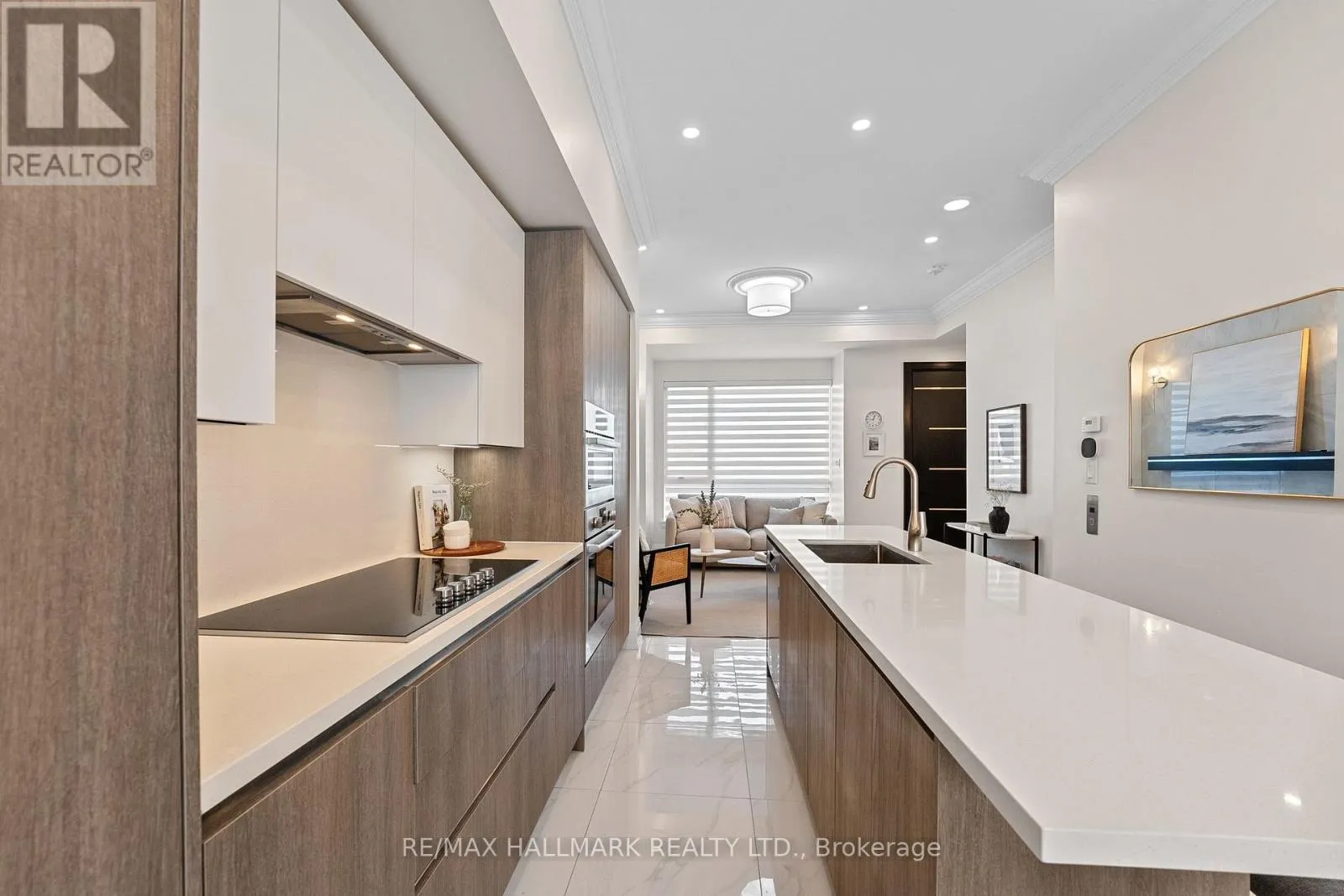 Benson And Lakeshore Welcome to this one-of-a-kind luxury condo townhouse in the prestigious Shores of Port Credit community. This exquisite 3-bedroom, 4-bathroom home has been thoughtfully upgraded throughout with high-end custom features and elegant design details that truly set it apart. Step inside and experience the perfect blend of style and functionality. The main floor features gleaming porcelain tile, crown molding, and a gourmet kitchen equipped with premium Jenair appliances, Blomberg dishwasher, and custom cabinetry. From the custom light fixtures and power blinds to the pot lights, closet systems, and carpet runners, every inch of this home has been meticulously curated. A rare in-unit elevator adds ease and convenience across all levels. The fully finished basement boasts custom pantries with integrated fridge, storage mezzanine, and a newly added bathroom with an indulgent infrared sauna with Bluetooth connectivity. The third-floor primary suite is a true retreat with crown molding, expansive lake views, and a spectacular 5-piece custom ensuite featuring porcelain floors, marble accent walls, and a herringbone tile shower floor. Enjoy seamless indoor-outdoor living with two storm-proof electric awnings, a Napoleon BBQ with gas line hookup, and a private rooftop terrace with sweeping lake views - perfect for outdoor entertaining. As an exclusive townhome owner, you'll have access to two underground parking spots right next to your unit and access to unmatched amenities including a state-of-the-art gym, Wine club & golf simulator, Indoor pool & spa, Restaurants, lounges & library, Billiards, meeting rooms & more. All of this located steps from Lake Ontario, with easy access to Lakeshore Rd., shops, dining, parks, and vibrant Port Credit life. Truly a rare offering luxury, convenience, and lakeside living all in one. Check the virtual tour for lots more photos! (id:27476)