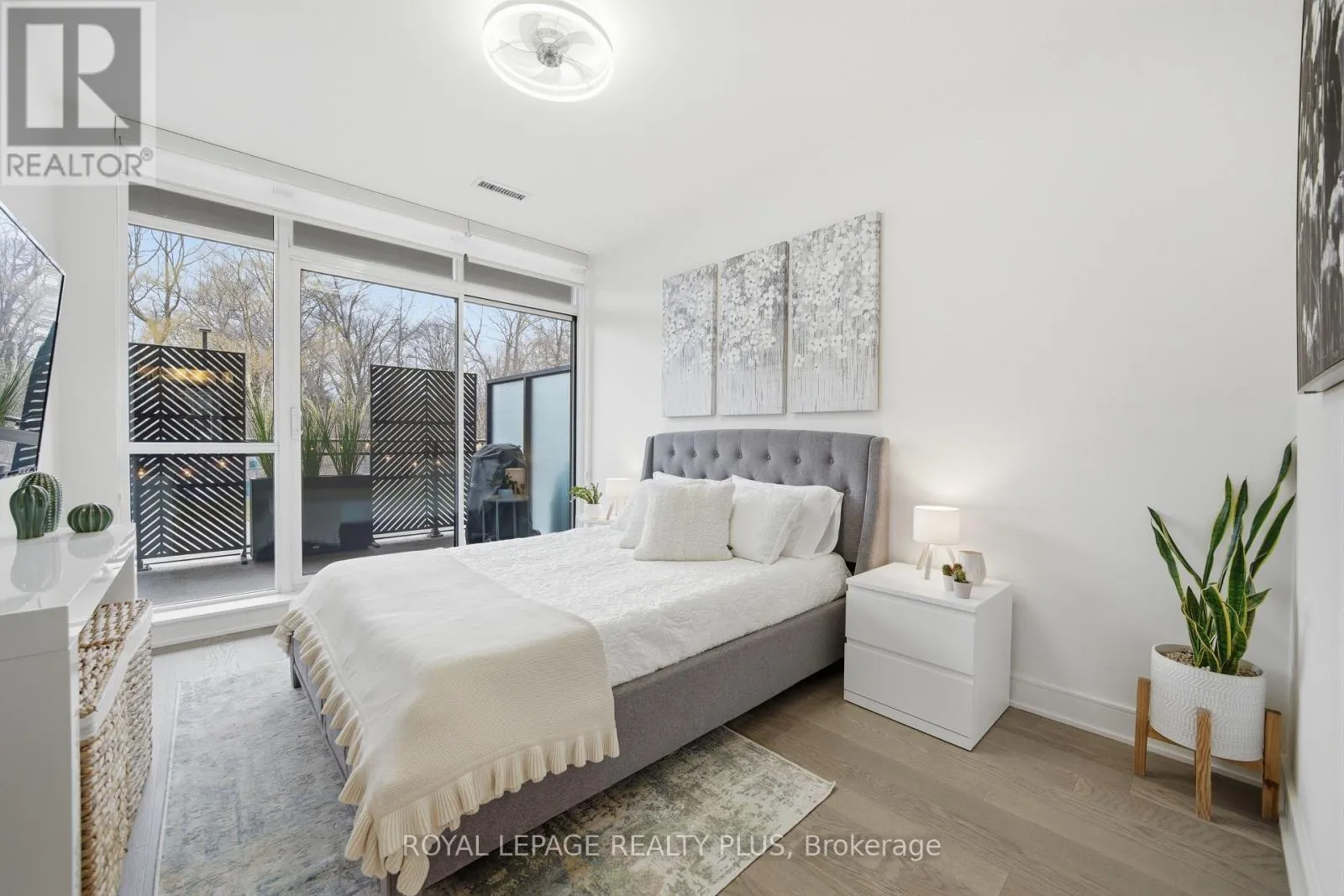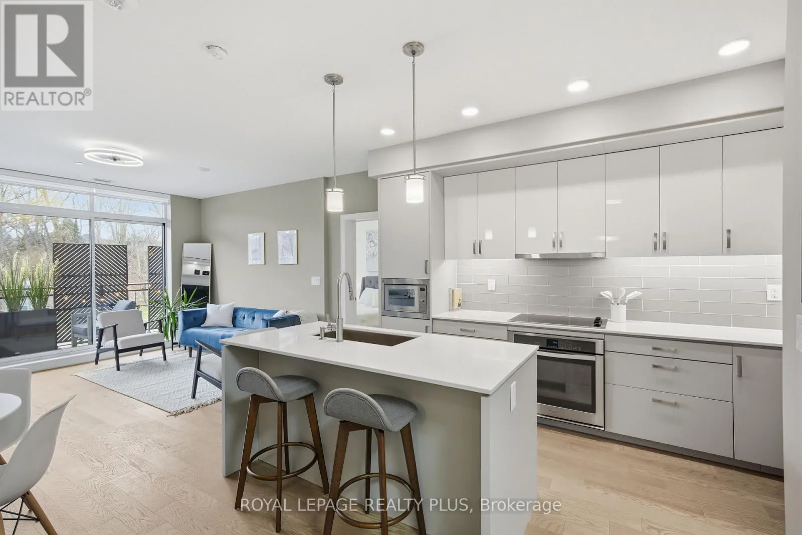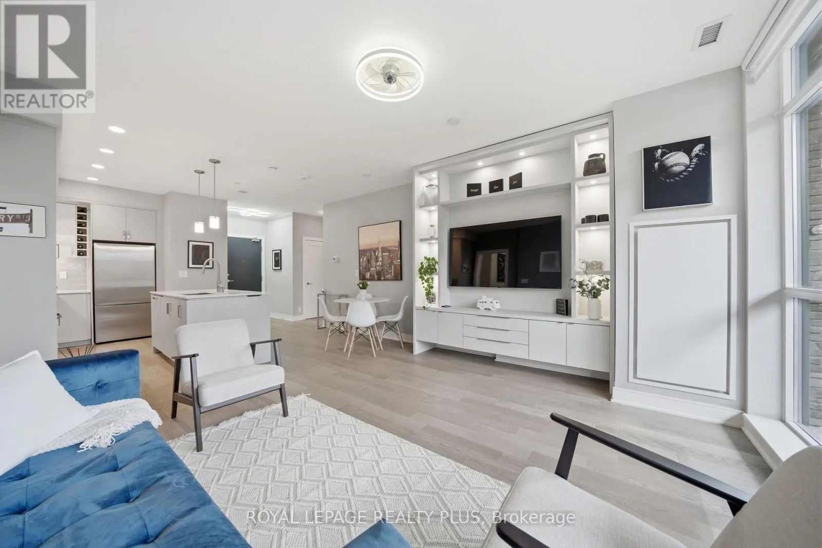 Cross Streets: Lakeshore Rd W / Meadow Wood Rd. ** Directions: North side of Lakeshore Rd W, East of Meadow Wood Rd. Situated in one of South Mississauga's most desirable communities, this sunny west-facing suite has unobstructed views of parkland and offers a rare blend of privacy and convenience, being located just steps to the lobby, building amenities, and the elevator to your oversized parking spot. Inside, 5-in engineered hardwood floors and open sightlines create a seamless flow from foyer to balcony. Expansive windows flood the suite with natural light, while motorized blinds offer privacy and shade at the touch of a button. The open living area has plenty of room for both living and dining, plus a custom media unit with integrated display lighting anchors the space, providing an upscale focal point that also maximizes storage. The sleek kitchen features two-tone cabinetry, built-in appliances, and a large island, making the space perfect for casual dining or entertaining. Two large bedrooms sit on opposite sides of the suite, with the primary retreat offering a walk-in closet, balcony access, and a spa-like ensuite with two sinks and a glass shower stall featuring Kohler fixtures. Beyond the front door lies The Craftsman, a landmark building for the city thanks to its Frank Lloyd Wright-inspired design and forested setting of Birchwood Park. This luxurious complex has many useful amenities and elegant common spaces, but what makes it truly unique is the sense of community among its residents, with neighbours frequently gathering for events and celebrations thanks to a vibrant social club. Step outside to discover Clarkson Village with its boutique shops, cafés, and some of Mississauga's finest dining. Within minutes, you'll reach Jack Darling Park, Rattray Marsh, and countless trails, plus nearby MiWay transit stops, GO stations, and major routes like Lakeshore, Southdown, and the QEW make commuting a breeze. With its refined finishes, thoughtful upgrades, and prime location, Suite 105 at The Craftsman offers affordable luxury living in the heart of Clarkson. (id:27476)
