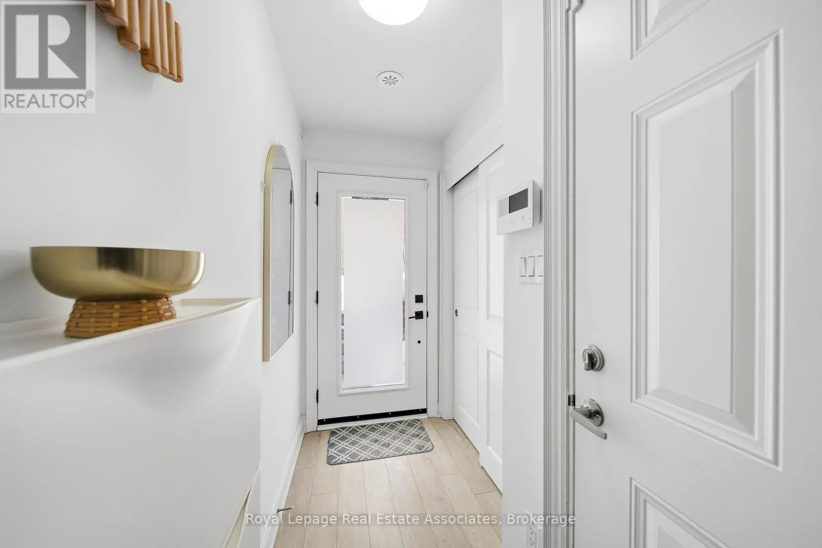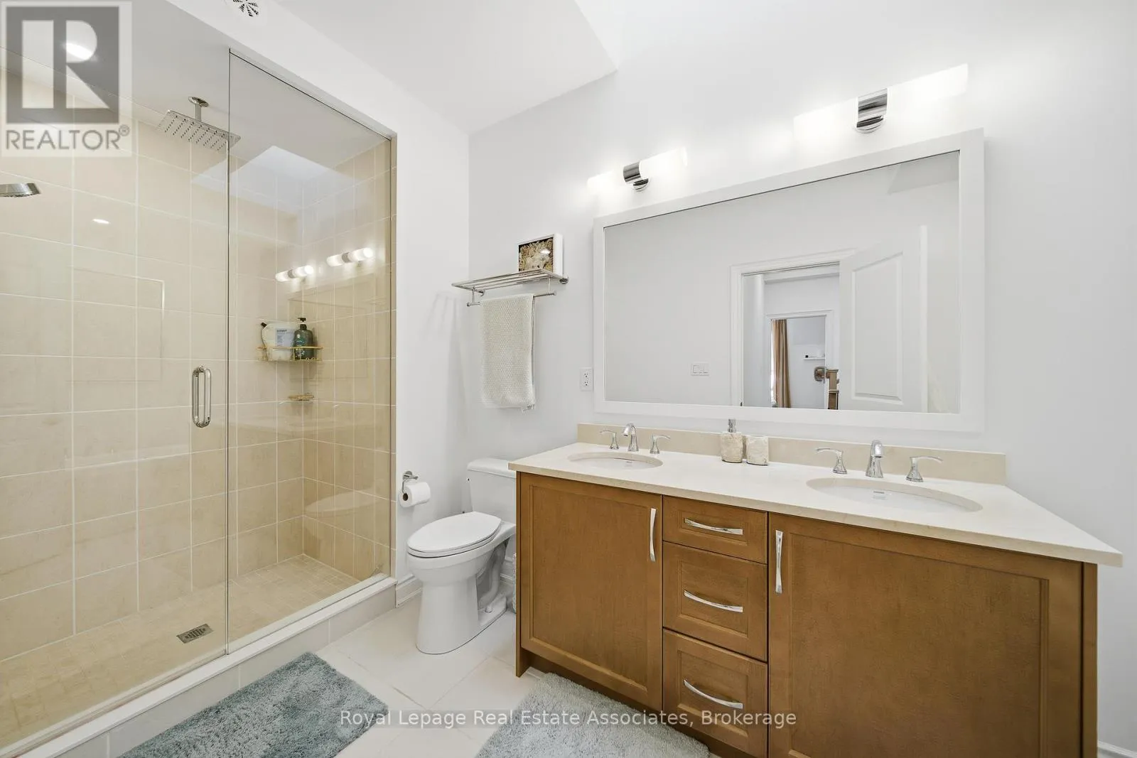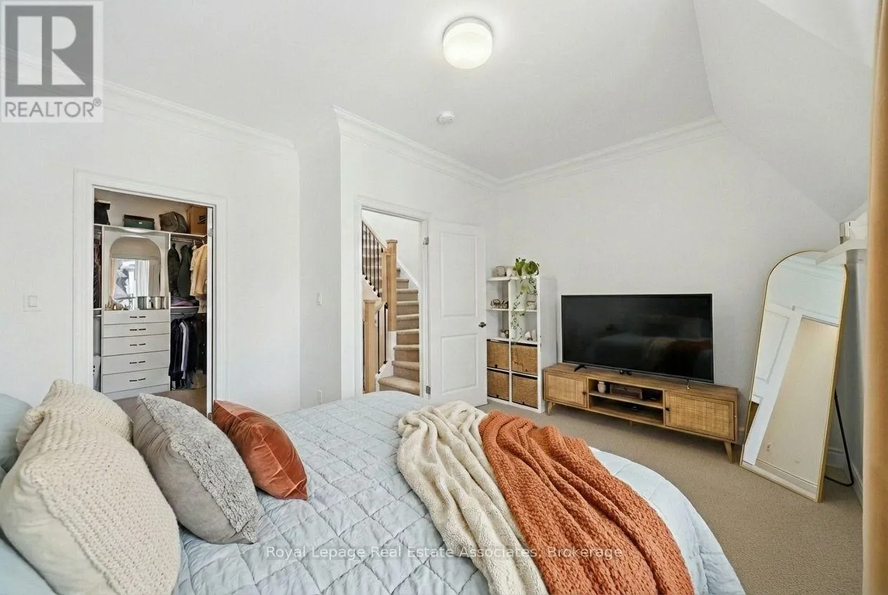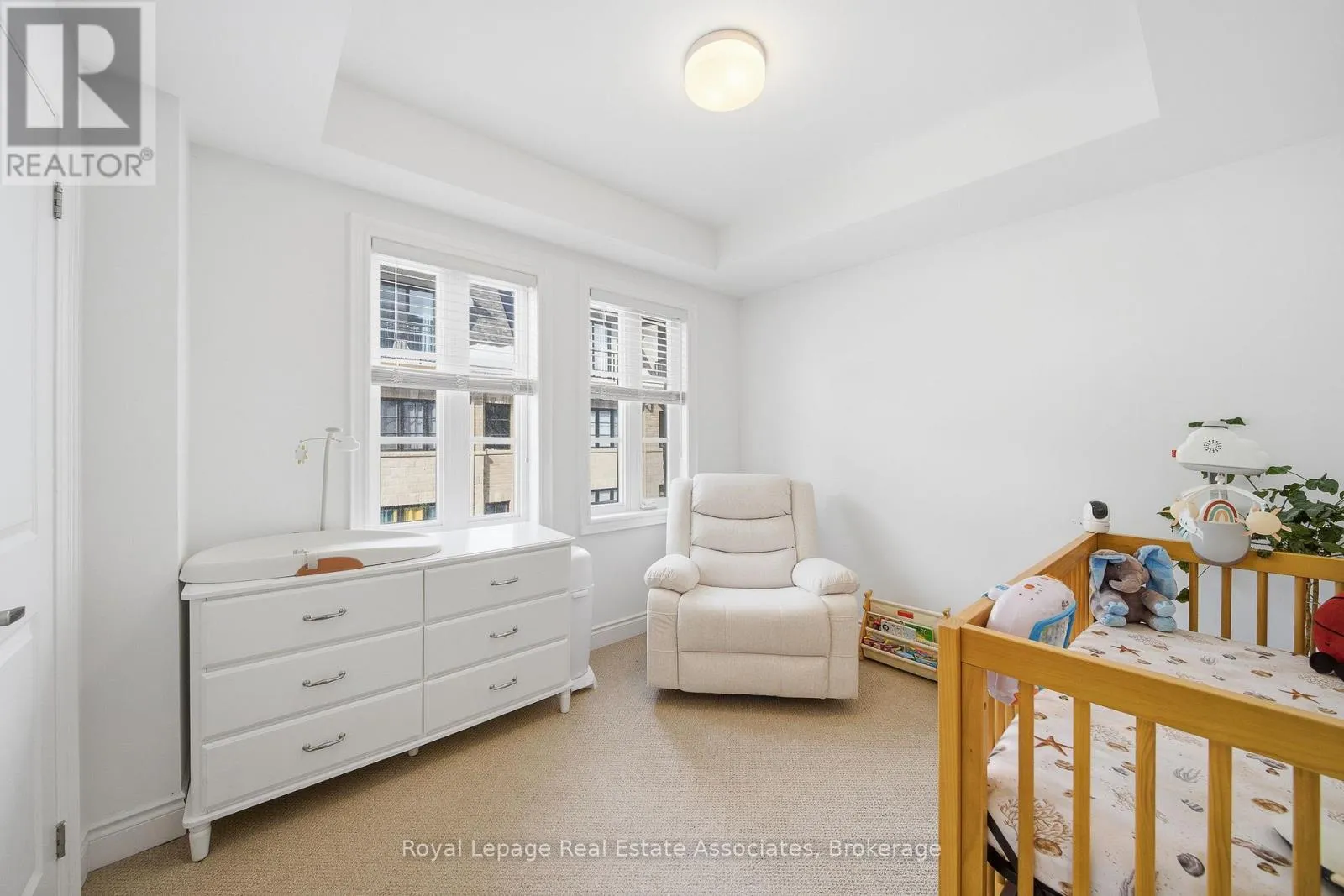 Thomas & Queen A refined luxury townhome by Dunpar Homes, nestled in the heart of vibrant Streetsville. This thoughtfully upgraded 1517 sq ft 3-bedroom, 2-bathroom residence delivers premium finishes, thoughtful design, and exceptional indoor-outdoor living in a prime, walkable location. The interior is bright and open, featuring soaring 9.5-foot ceilings and numerous skylights that flood the home with natural light. Wide plank hardwood flooring, smooth ceilings, LED pot lights, and solid oak stairs with iron pickets create an elegant and cohesive feel throughout. A natural gas fireplace with an upgraded Regency-style mantel and custom built-in shelving anchors the main living space, adding both warmth and functional design. The custom two-toned kitchen is a chef's delight, finished with quartz counters, a waterfall island, crown mouldings, premium stainless-steel appliances, and elevated cabinetry details. Bathrooms feature luxurious marble counters. Additional upgrades include a central steam humidifier and an electric vehicle charger rough-in. The primary suite functions as a private retreat, complete with crown moulding, a walkout to a private balcony, and an oversized walk-in closet with a fully integrated custom organization system. Outside, an expansive south-facing 268 sq ft rooftop terrace offers a gas BBQ line, water hookup, and a pergola-ideal for effortless, sun-filled entertaining. Enjoy an unparalleled level of convenience. The home is steps to GO transit, dining, trails, parks, top-rated schools, a recreation centre, and charming village shops, all with quick access to major highways. Set within an exclusive, family-friendly community known for its timeless architecture and modern design, this townhome offers the perfect blend of luxury, convenience, and low-maintenance living. Extensively upgraded, generously sized, and offering exceptional value, this turnkey home delivers luxury without compromise. (id:27476)
