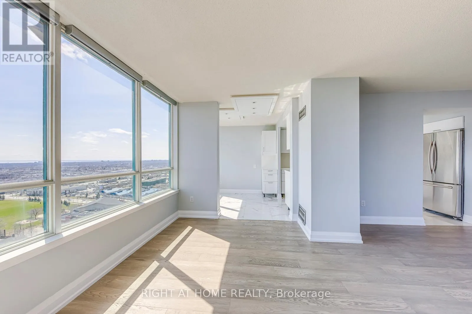 Webb Dr & Grand Park Drive Experience upscale living in this one-of-a-kind, rarely offered 23rd-floor corner suite, boasting approximately 1,300 sq. ft. of fully renovated space. This bright and elegant 2-bedroom, 2-bathroom residence features a brand-new modern kitchen, beautifully upgraded bathrooms, a spacious living and dining area, a sun-filled solarium, and a private balcony showcasing breathtaking south-facing views of Lake Ontario and the Toronto skyline.This exceptional corner unit is flooded with natural light through expansive windows, offering an open-concept layout ideal for both comfortable living and entertaining.Residents enjoy access to a full-service luxury building with premium amenities, including a fitness centre, jacuzzi, outdoor pool, tennis and squash courts, a newly renovated party room, private theatre, and a secure, monitored entrance.Ideally located just minutes from Square One Shopping Centre, major highways, public transit, and the vibrant Mississauga city centre. Turnkey unit - move-in ready. Electricity - Water - Heat- AC are included. (id:27476)