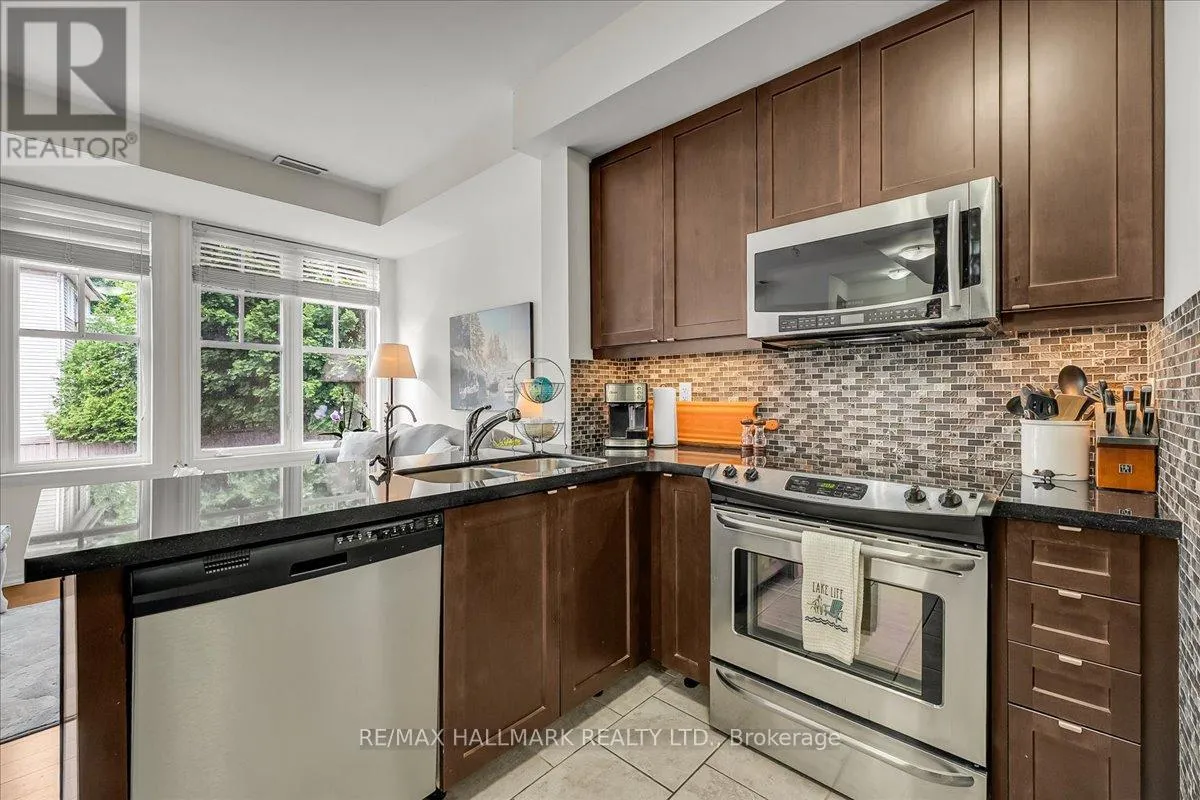 Cross Streets: Lakeshore/Dixie. ** Directions: Lakeshore to Deta Rd. Welcome to the sought-after Stonewater community. This beautiful 2-storey, 2 bed, 2 bath Executive upgraded townhome is one of the exclusive few that have more privacy as its located at the rear of the complex, with views of mature trees and greenery from every window. Situated in the family friendly South Lakeview neighbourhood, offers almost 1,100sqft of living space, with a 75sqft private balcony that allows BBQs, great for indoor/outdoor entertaining, a rare find! Boasting an open-concept layout that is bathed in natural light thanks to the large windows throughout, with beautiful nature views. The main floor features wood floors, open concept living with modern upgraded eat-in kitchen, double thick granite countertops, breakfast bar, updated fixtures, tiled backsplash, upgraded cabinets, water filtration system & built-in pantry/storage. Get excited to host gatherings in the cozy living room & enjoy family meals w/ loved ones in the dining area. Upstairs you will find two bright spacious bedrooms with large windows, both outfitted w/ large double closets & closet organizers, complete with a modern 4-pc bath with stone countertop, ensuite laundry and additional storage. Enjoy the convenience of parking in your garage with direct entry into your home + ample storage for all your toys. Waterfront trails, Marie Curtis Park & Orchard Hill Park are right outside your front door. Lakeside active living awaits you with this incredible location, walking distance to Lakeview and Toronto golf courses, GO train & Long Branch shopping district. Mins from beautiful Port Credit & Sherway Gardens, and HWY access. A must see! (id:27476)