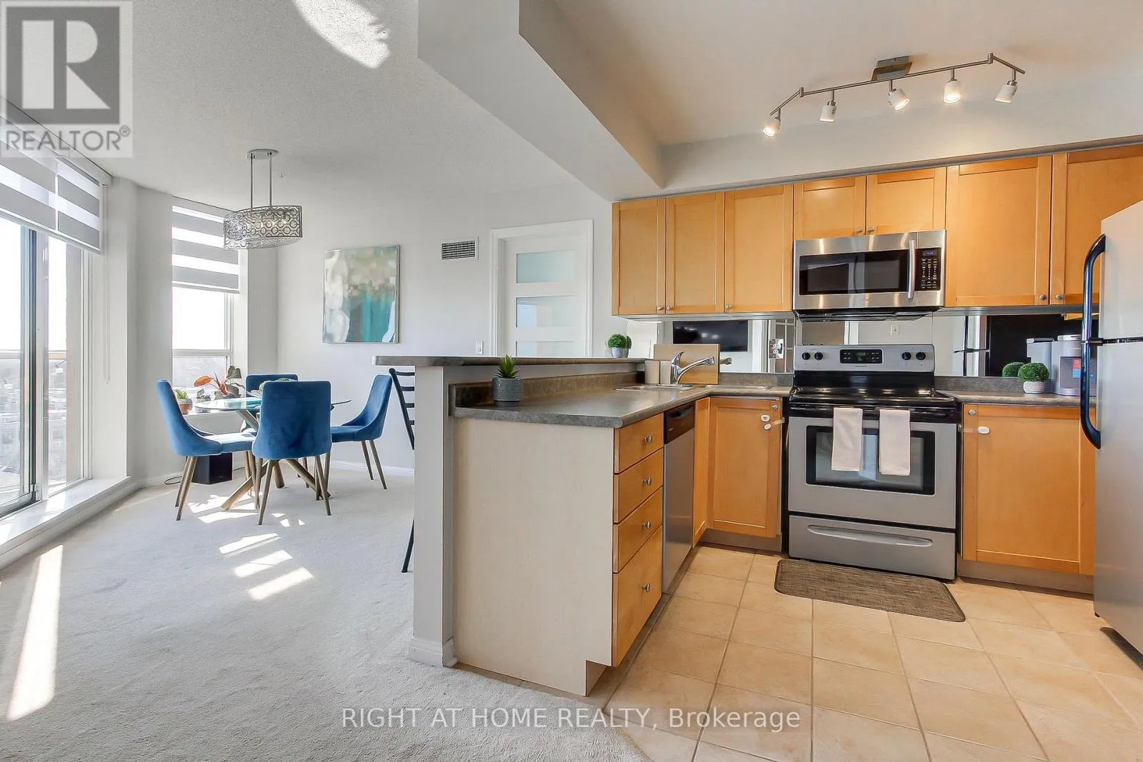 Cross Streets: Lakeshore Rd. East and Cawthra. ** Directions: Cawthra; West on Village Green Blvd. In a community that once inspired legendary jazz pianist Oscar Peterson, this home offers its own rhythm of comfort, convenience and lifestyle! Bright and spacious, functional layout offering both open-concept living and a defined dining space; ideal for families or working from home. This bright 2-bedroom, 2-bathroom unit features a split-bedroom design for privacy, a spacious primary retreat with walk-in closet and ensuite, and a versatile dining area that easily doubles as a home office or third functional zone. Walk out to a private balcony with unobstructed southwest-facing sunsets and views of the Lake, while you grill that ribeye on your BBQ; a gas grill this high in the sky is truly an uncommon, rare feature. Ideally positioned just up the street from the emerging Lakeview Village waterfront development; one of the Six's most ambitious, master-planned communities. Minutes to the Lake, shopping, GO Train, QEW, 427 and parks. Ideal for those beginning a new chapter; establishing a family or simplifying without compromise. Enjoy an amenity-rich building with gym, sauna, library, party room, hobby/workshop space, visitor parking, and 24-hour concierge. Maintenance fees include heat, water, and central air for added value and convenience. Open House Saturday (April 25th) and Sunday (April 26th) 12 pm - 3 pm. (id:27476)