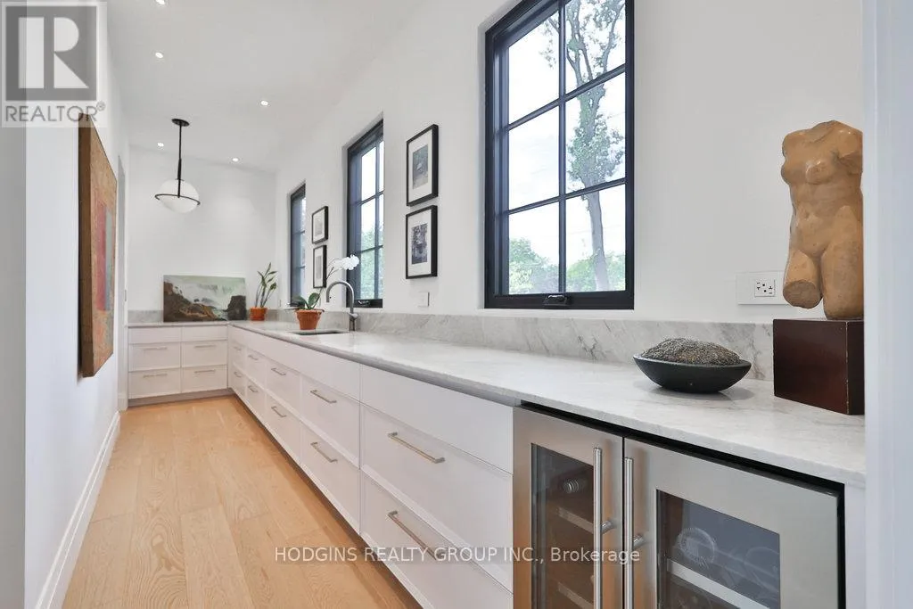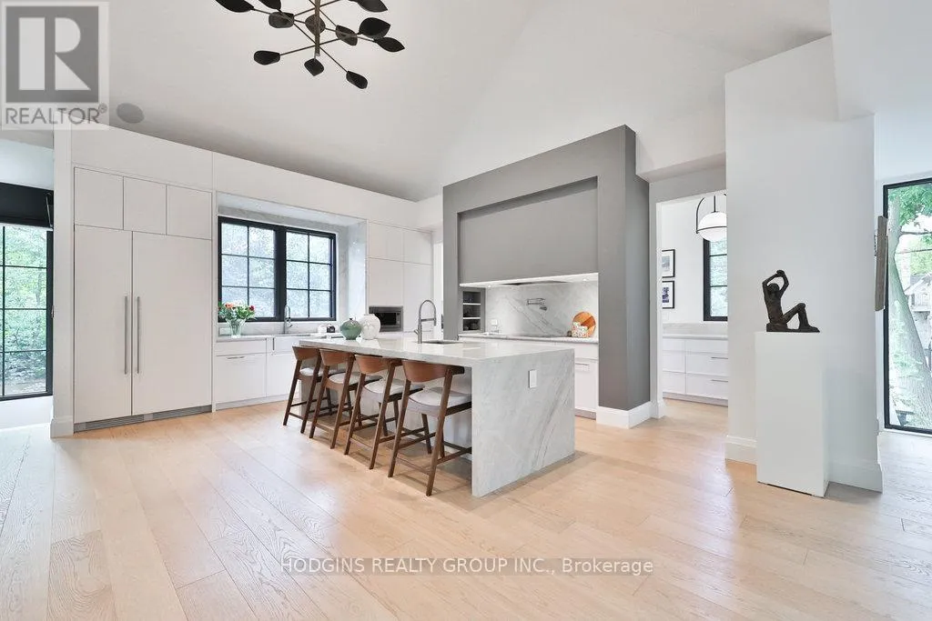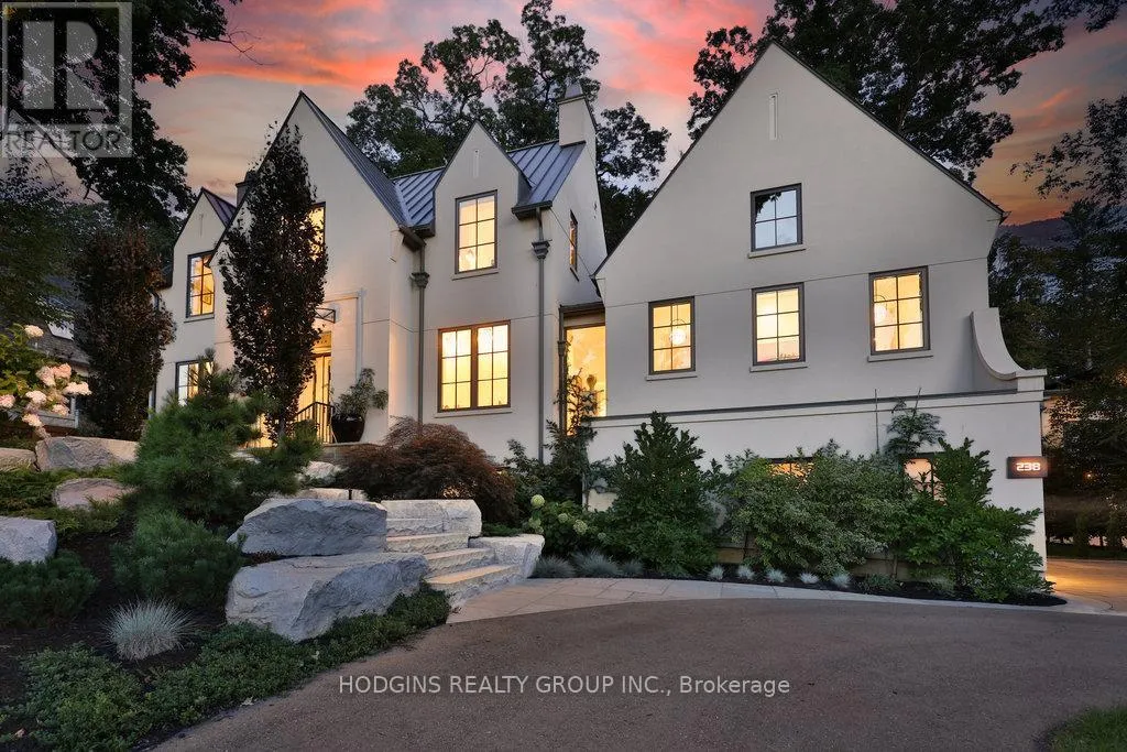 Cross Streets: Hurontario St / Mineola Rd W. ** Directions: Follow Queen Elizabeth Wy to Hurontario St. Take exit 132 from Queen Elizabeth Wy.Continue on Hurontario St. Drive to Mineola Rd W. Custom Masterpiece in Prestigious Mineola West by architect Lauren Boyer. A residence of distinction where design, craftsmanship & setting converge. Main floor Primary Bedroom retreat anchors a flowing layout with heated white oak floors, dramatic ceilings and expansive windows framing wooded views. Gourmet kitchen finished in exquisite Taj Mahal quartzite with oversized island, custom cabinetry, professional-grade appliances & separate prep kitchen and mudroom with laundry. The inspiring Great Room shares magnificent open vaulted ceilings with the kitchen, and offers a relaxing lounge vibe with vibrant fireplace and grand piano niche/library. Walkout to entertainers terrace complete with outdoor kitchen and gas grill. Bespoke entry doors by Brenlo bring you to elegant dining and living spaces with curated lighting by Top Brass, and refined attention to every detail. The raised lower level features an expansive recreation lounge with heated floor and an additional bedroom/office with full bath, abundant storage, and a separate entrance. The second floor has an additional master suite, plus two more bedrooms, a full bath, laundry, and ample storage. Exterior features a stately & durable metal roof, in-ground sprinklers, Landscape architect Mark Pettes, lush mature gardens & sought-after circular drive. A rare blend of modern luxury & timeless architecture in one of South Mississauga's most coveted enclaves. Over 5500sf of luxury living space on premium 100ft frontage. Close to Kenollie Public School, a 5-minute walk to the Credit River, 10-minute walk to the Go Train, or a 20-minute walk to the lakefront. (id:27476)