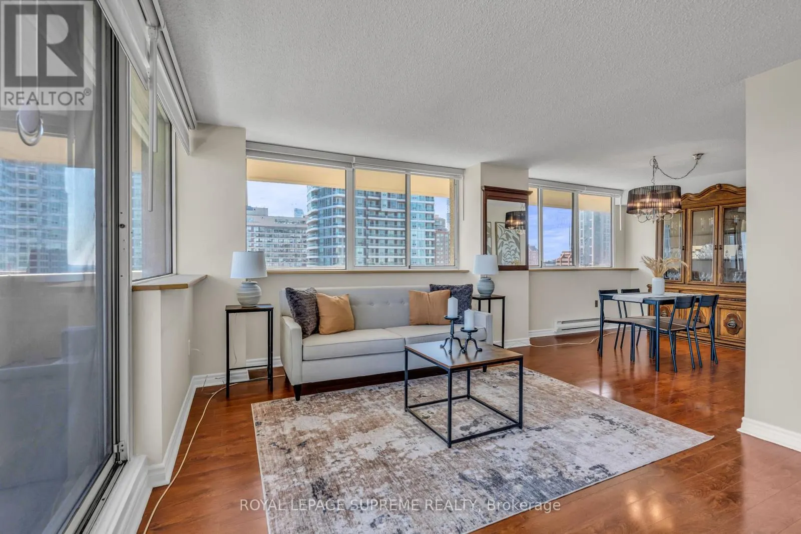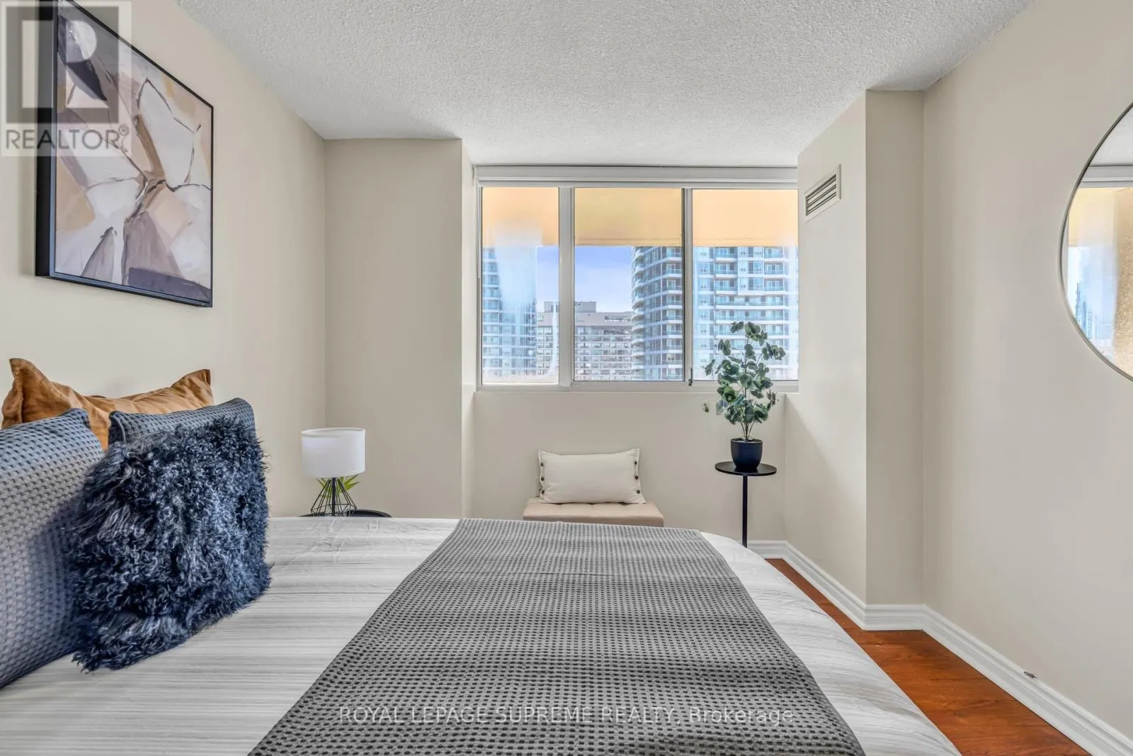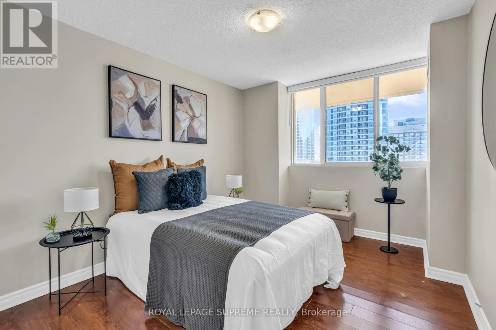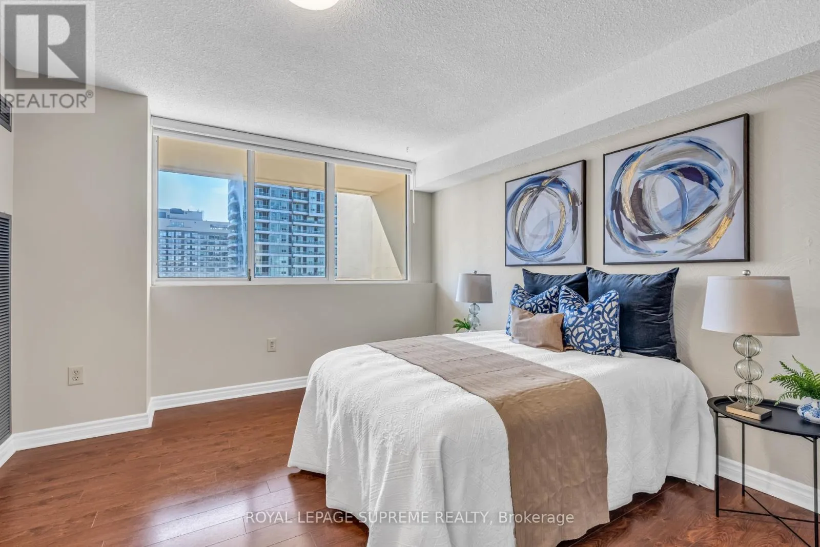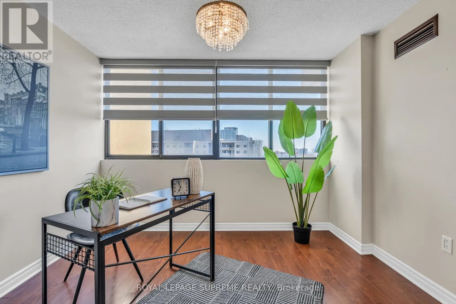 Hurontario and Burnhamthorpe Bright, spacious, and exceptionally well-maintained sun-filled 2-bedroom plus den corner suite featuring a large wrap-around balcony with beautiful open exposure. This unit offers a functional and well-designed layout, perfect for both everyday living and entertaining. The suite features stainless steel appliances, laminate flooring throughout, and has been freshly painted in neutral tones, creating a modern and move-in-ready space. The generous den provides the perfect option for a home office, guest area, or additional living space. As one of the largest units in the building, this corner suite offers an abundance of natural light from multiple windows and a bright, airy feel throughout. Ideally located in the heart of Mississauga, close to shopping, restaurants, transit, parks, and all major amenities. A fantastic opportunity for buyers looking for space, comfort, and a prime location. (id:27476)