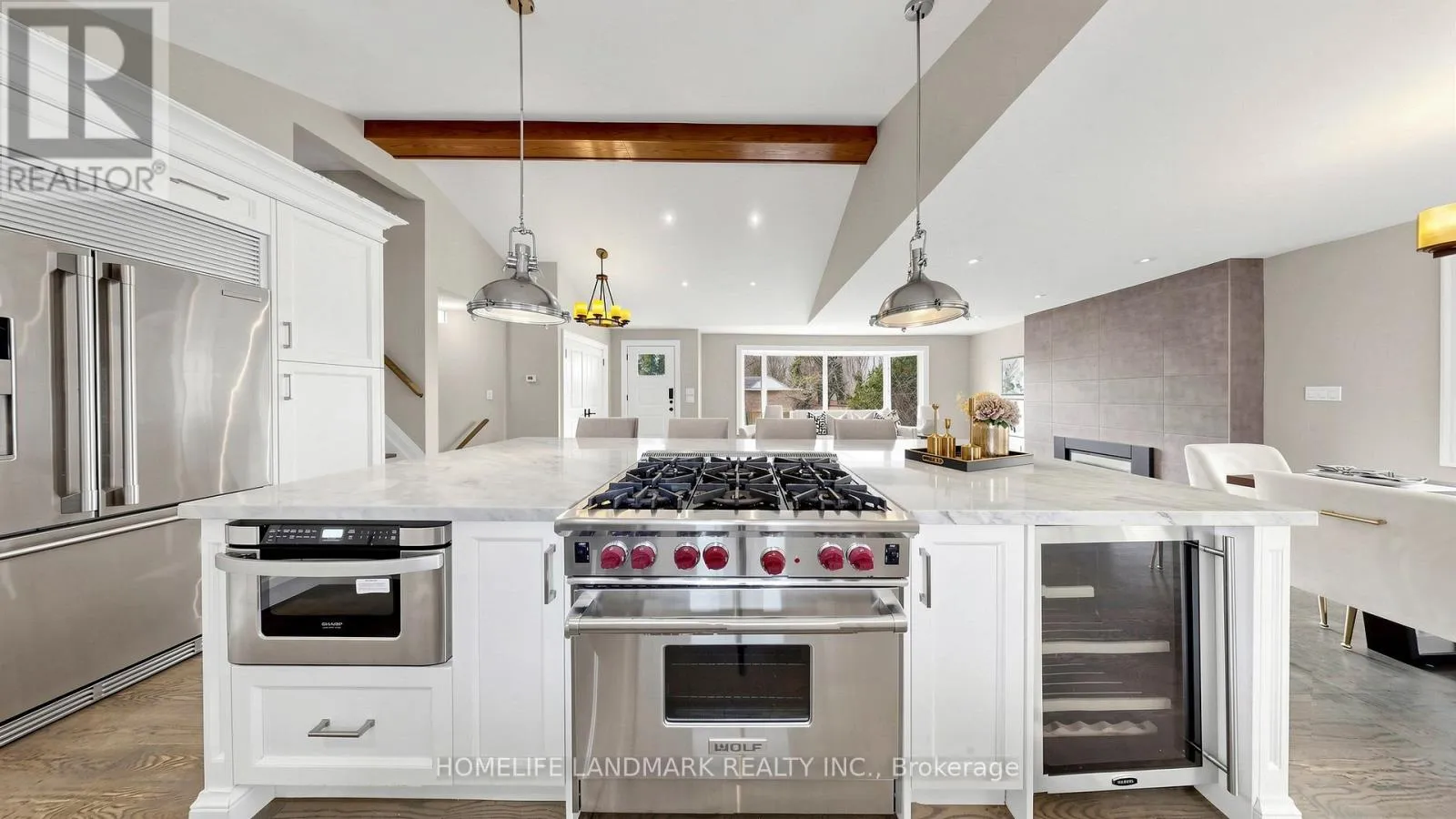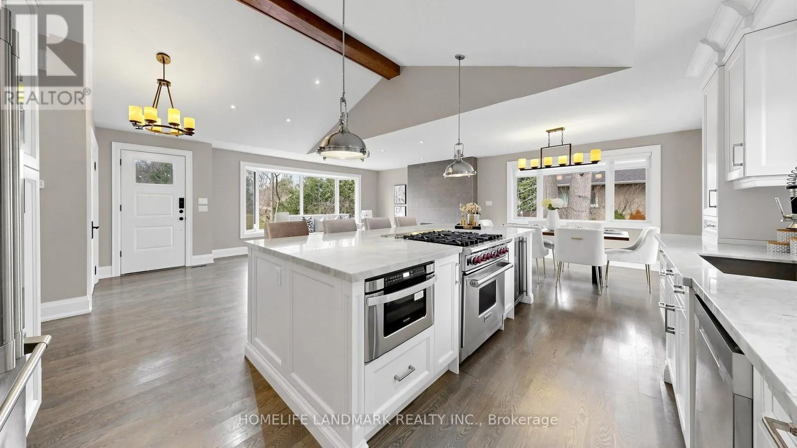 Truscott Rd / Lorne Park Road Welcome to 1549 Elite Road in prestigious Lorne Park, Mississauga, forested 100-foot lot offering both privacy and elegance. This completely renovated home features a modern open-concept design with soaring vaulted ceilings and seamless walkouts to a stunning 1,284 sq.ft. two-level wraparound deck, stunning inground pool surrounded by sleek and frameless glass fence offers both child safety and unobstructed views, ideal for entertaining or relaxing in style. The interior boasts exquisite finishes throughout, including newer flooring, and a chef-inspired kitchen equipped with a stainless steel Wolf 6-burner gas stove, built-in microwave, dishwasher, beverage fridge, and luxurious marble countertops. Ideal for the most discerning buyer. Enjoy the convenience of being steps from White oaks Park, the local library, and top-rated Lorne Park Secondary School. Complete with a beautifully landscaped yard, this property is truly one of a kind. (id:27476)