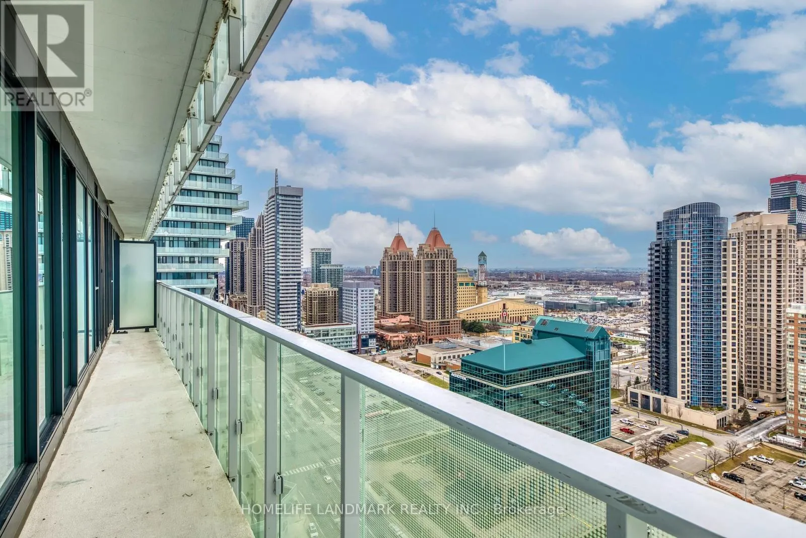 Burnhamthorpe & Confederation Parkway Welcome to 2024 CTBUH Award of Excellence Best Tall Building winner M City2. The stunning 2-bedroom + den corner suite offers one of the most sought-after floor plans in the building, with a 290+ sq. ft. wrap-around balcony showcasing breathtaking 270 panoramic views of Mississauga City Centre, the Toronto skyline, and Lake Ontario. The den is enclosed with a sliding door and window, making it a perfect private office or flexible third room. Builder upgrades include 4 ceiling outlets for added lighting design options and premium upgraded tiles in both bathrooms for a sleek, modern finish. The open-concept kitchen, dining, and living areas create an elegant flow ideal for both everyday living and entertaining. Residents of M City2 enjoy a wealth of 5-star amenities, including rooftop terrace, outdoor swimming pool, basketball court, hotel-style concierge, children's playroom, meeting rooms, fitness facilities, and more. Located in the heart of Mississauga, this residence puts you steps from Square One Mall, Celebration Square, Sheridan College, Living Arts Centre, YMCA, library, T&T, restaurants, parks, schools, movie theatre, future LRT, and the GO Transit Terminal. This is your chance to embrace luxury, convenience, and urban living at its finest in an award-winning community. Don't miss out on this extraordinary condo at M City2! (id:27476)
