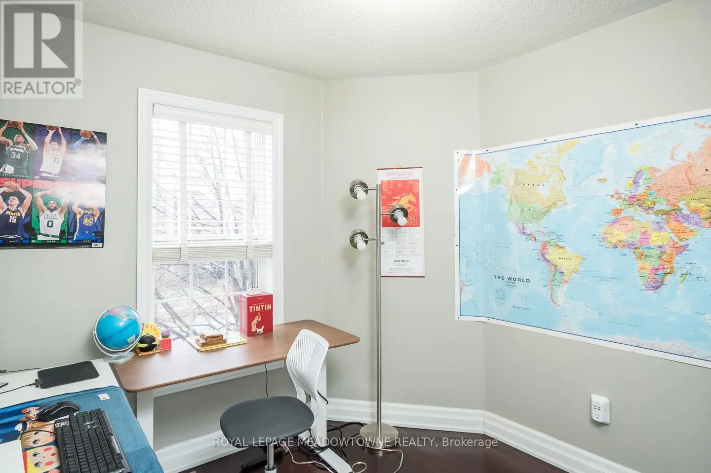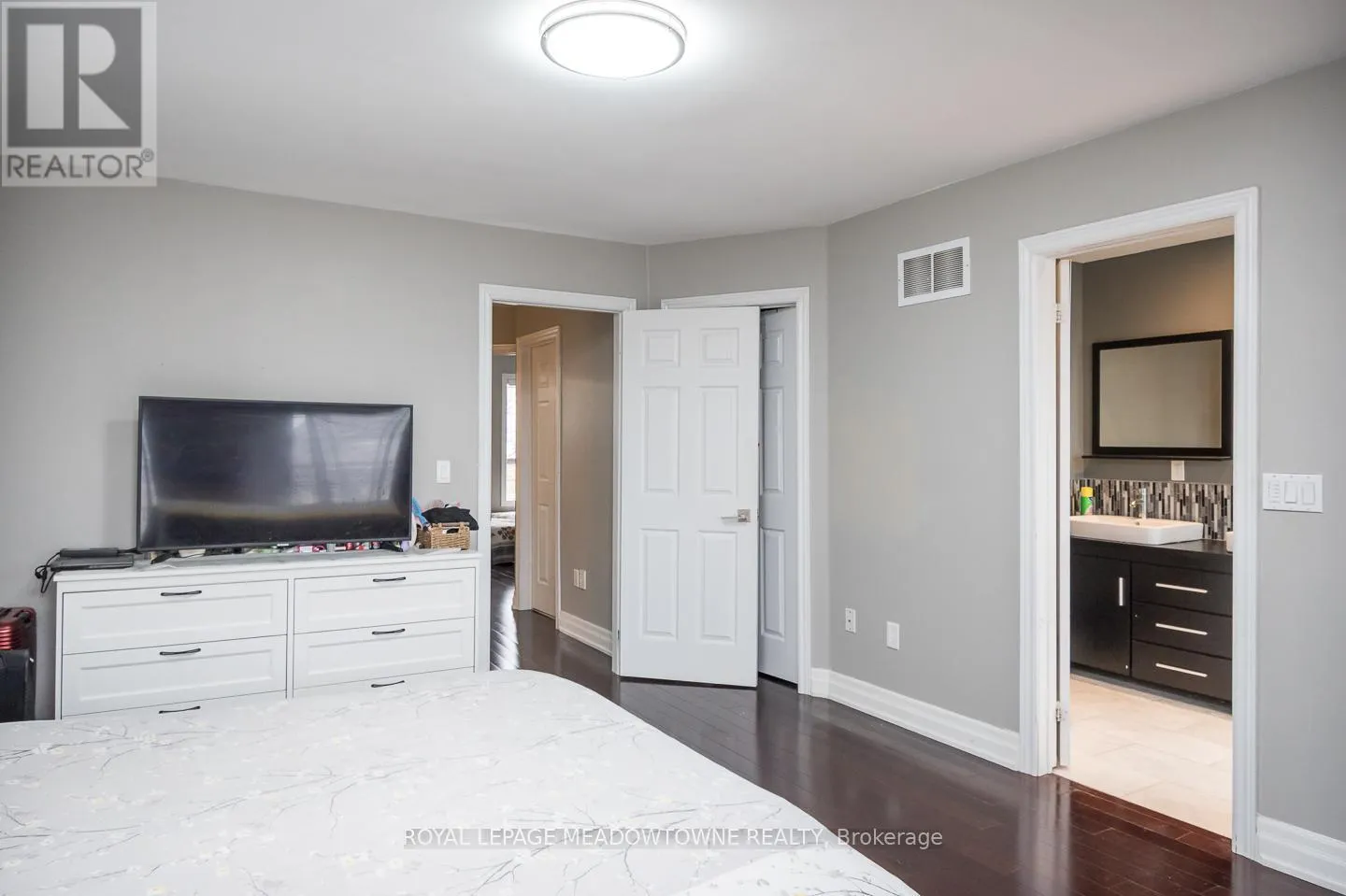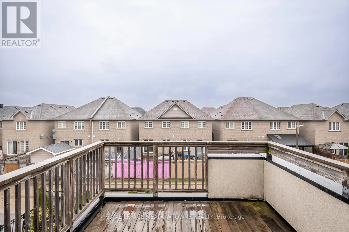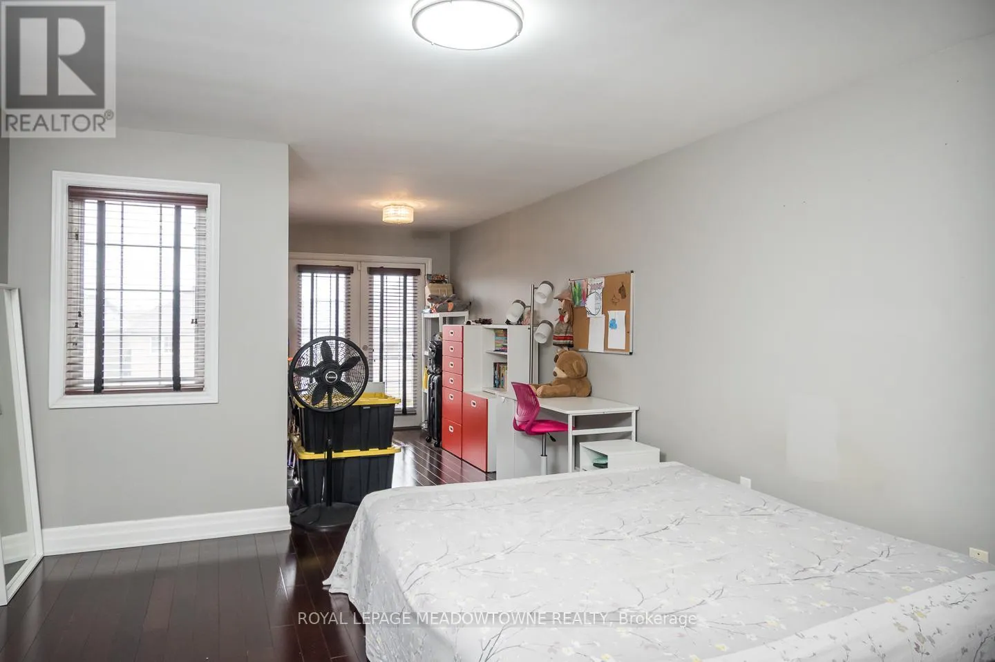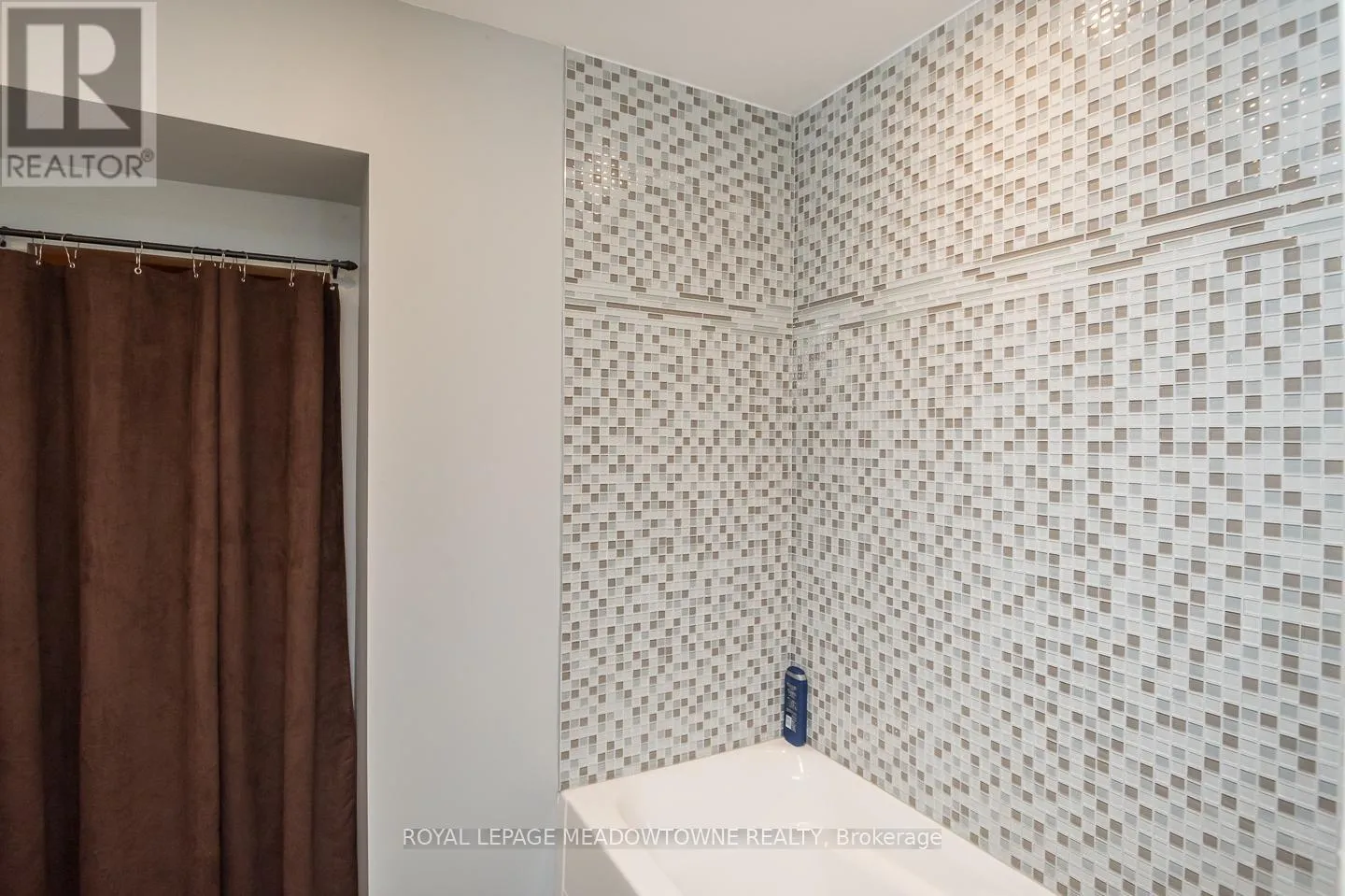 Eglinton Ave / Ridgeway Dr Step inside to a home where the finishes take center stage. Rich Jatoba hardwood flows across the main & second levels, paired with sleek glass & steel railings & lighting that elevate every space. The front living room offers a warm focal point with its fireplace, while the distinct dining area creates an effortless setting for hosting. The custom Irpinia kitchen is the true showpiece - bright, refined, & designed for both beauty & performance. Caesarstone quartz counters, a stylish tile backsplash, Blanco undermount sink, & premium Dacor dual fuel gas cooktop with electric oven (paired with a Ventahood) set the tone. Walk out to a private backyard retreat with an interlock patio. Upstairs, the primary suite features a private balcony, walk in closet & spa inspired 4 piece ensuite. Two additional bedrooms share a generous main bath, with upper-level laundry for convenience. The finished basement adds a bright recreation area with large windows & a full 4 piece bath. Three car parking & interior garage access complete this home in sought after Churchill Meadows. (id:27476)