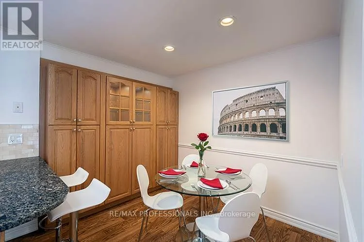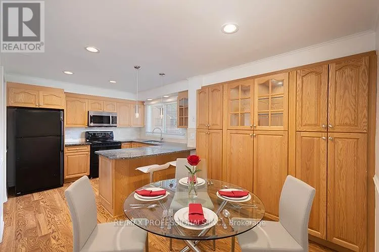 Rathburn/Fieldgate Welcome to this end unit multi-level townhome in a small, quiet complex offering comfort, space, and convenience. Enjoy interior access to an oversized garage and a thoughtfully designed layout ideal for everyday living and entertaining. Bright living room features a dramatic cathedral ceiling, wood burning fireplace and large windows that flood the space with natural light. A walkout leads to a spacious deck and private south facing backyard- perfect for relaxing or hosting outdoors. Family-sized kitchen offers ample cupboard space, breakfast barand great functionality. Formal dining area overlooks the living room for easy entertaining. Spacious primary suite includes a walk-in closet and 2 piece bath. Two other large bedrooms provide plenty of space for family, guests, or a home office. Finished rec room adds valuable living space, along with a finished laundry room. Many updates throughout and freshly painted from top to bottom make this house move-in ready! Located in the fantastic neighbourhood of Rockwood Village, close to Longos, Shoppers, schools, MiWay transit, parks and numerous bike and walking trails. Commuters will appreciate quick access to major routes and proximity to Pearson Airport. (id:27476)