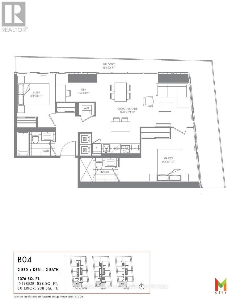 Cross Streets: Burnhamthorpe / Confederation. ** Directions: Confederation Pkwy Between Webb Dr & Burnhamthorpe Rd W. Stunning 2bed+den/2bath corner unit in Chic M City1! The best layout in the whole project. Huge wrap-around terrace facing SW with fantastic clear Lake Ontario, DT Toronto, Mississauga, and M City Park views. Laminate floors throughout. Cartier kitchen. Quartz counters, built-in s/s appliances in kitchen. Building amenities: outdoor pool, gym, 24hr security, bbq lounge, party room, kids play zone, splash pads, rooftop skating rink. Internet included! Smart lock. Steps to Square One Mall. Parking and locker included. (id:27476)