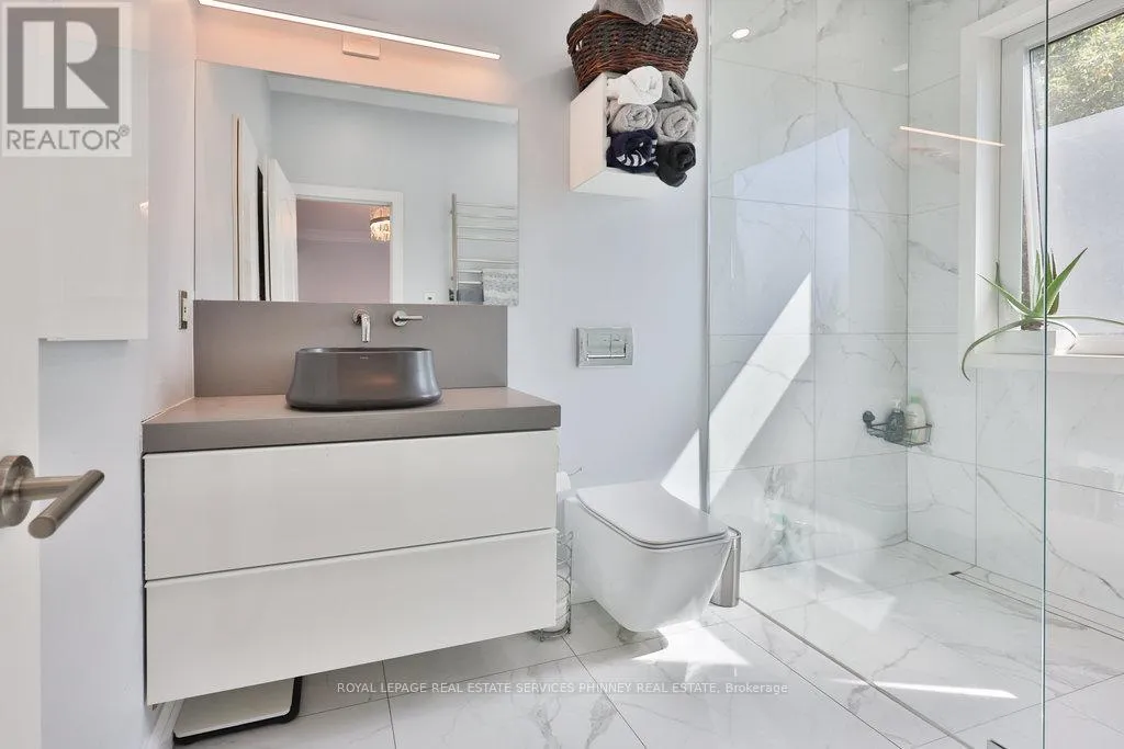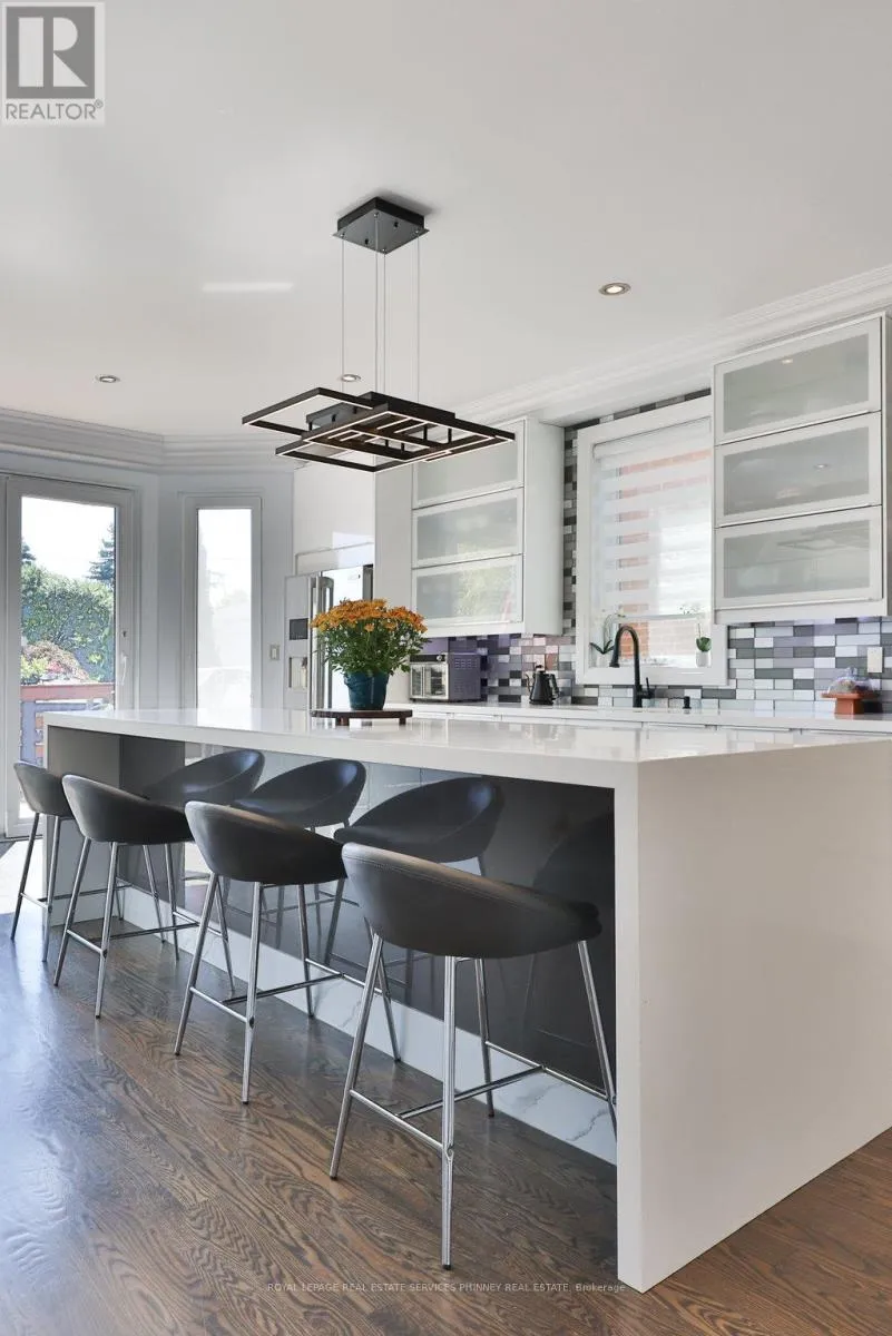 Northmount Ave & Sixth St Don't miss this rare opportunity to own a fully renovated, move-in ready detached home in the highly desirable Lakeview neighbourhood. Offering 4+1 bedrooms and a thoughtfully designed layout, this home blends modern luxury with everyday functionality-perfect for families and savvy buyers alike. Step into a bright, open-concept main floor with soaring 9' ceilings, oversized windows, and a seamless flow between the living and dining spaces, anchored by a stylish fireplace. The chef-inspired kitchen is a true highlight, featuring premium stainless steel appliances, stone countertops, custom cabinetry, and a large centre island. The spacious eat-in area walks out to the backyard, creating an ideal setting for effortless indoor-outdoor entertaining. A standout feature is the main-floor primary suite, complete with a walk-in closet and a spa-like ensuite-offering comfort, privacy, and convenience rarely found in this area. Upstairs, you'll find a second bedroom with its own private ensuite (perfect for guests or extended family), along with two additional bedrooms, a versatile loft space ideal for a home office or lounge, and well-appointed bathrooms. The fully finished lower level with separate side entrance offers incredible flexibility-featuring an additional bedroom, full bathroom, and expansive living space ideal for a recreation room, home gym, or potential in-law suite. Located just steps to the prestigious Toronto French School, and close to parks, shopping, and major highways, this home delivers the perfect balance of luxury, convenience, and lifestyle. Turnkey, stylish, and located in one of Lakeview's most sought-after pockets-this is the one buyers have been waiting for. (id:27476)