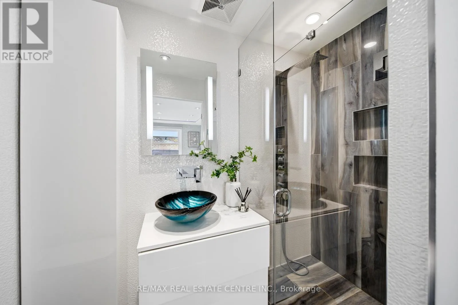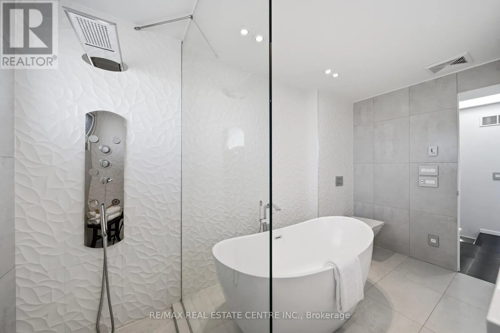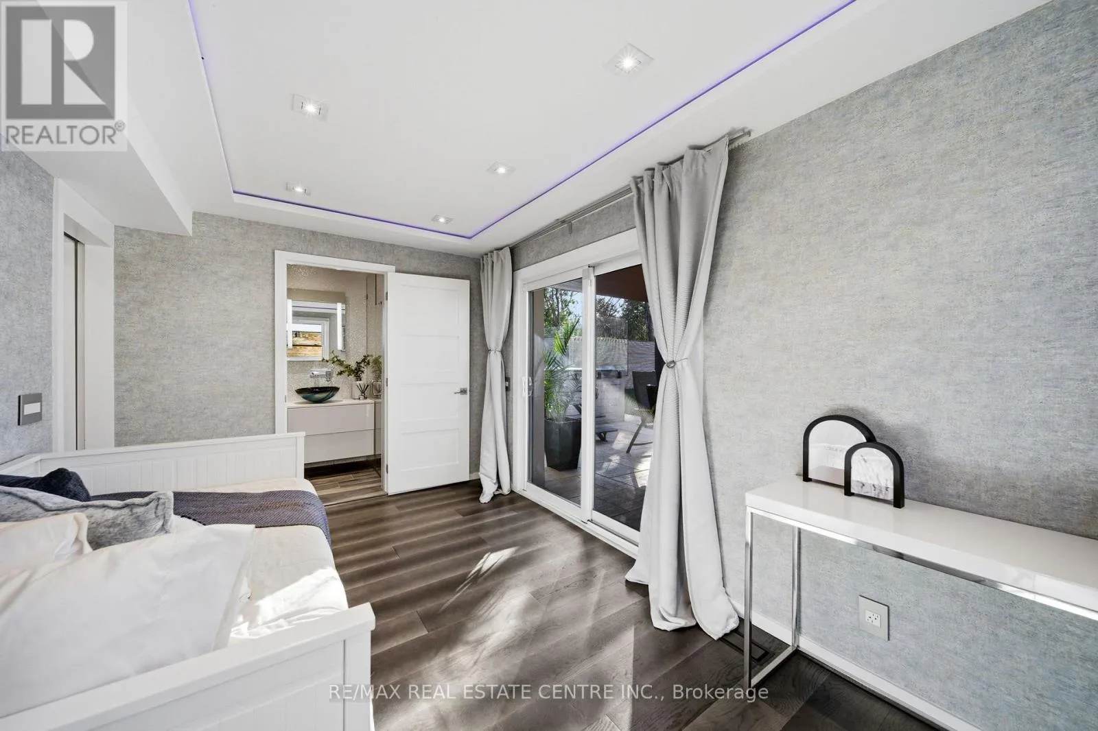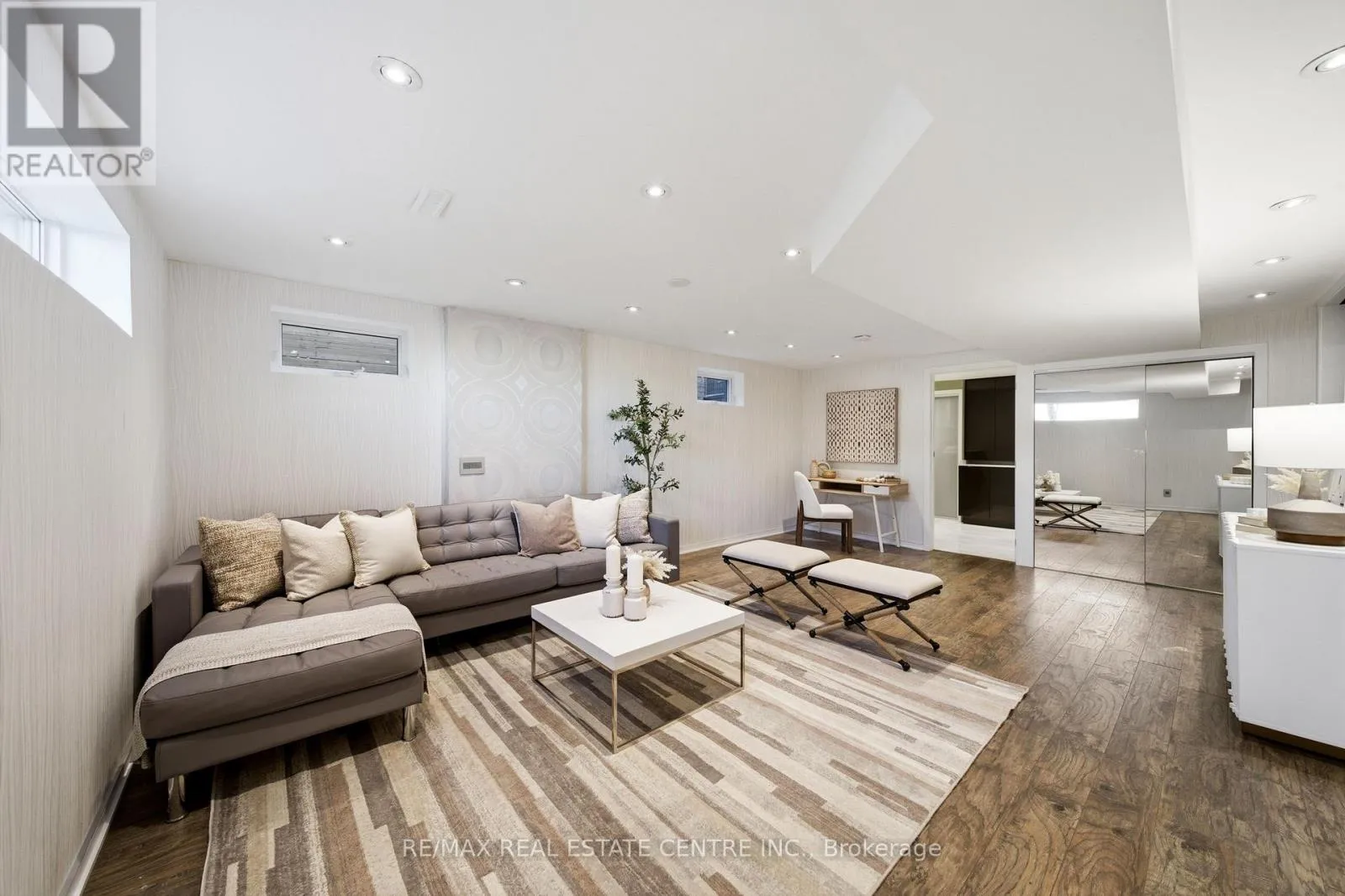 Truscott - Southdown Spectacularly reimagined in the heart of Clarkson, this extensively renovated residence offers a rare blend of luxury, comfort, and thoughtful design with premium upgrades throughout. A spacious foyer welcomes you to a bright, open-concept layout featuring Italian tile and engineered hardwood flooring, potlights, and a skylight that fills the home with natural light. Heated floors in the foyer, kitchen, powder room, and upper bathroom add everyday comfort. The living room makes a bold statement with designer Versace wallpaper, custom built-ins, and a large picture window, flowing seamlessly into the show-stopping chef's kitchen. Designed as the heart of the home, it features built-in appliances, an induction cooktop, double ovens, panelled fridge, waterfall island, stunning backsplash with water valve, organic waste disposal, water filtration system, and a sun-filled dinette. A contemporary staircase leads to four bedrooms with custom closets and beautifully updated bathrooms. The main bath is exquisitely remodelled with double vanities, a soaker tub, and sleek glass shower. The bright, finished lower level offers a cozy family room with gas fireplace and stone surround, a dedicated office, additional bathroom, and a beautifully designed laundry room. Outdoors, your WOWZA backyard awaits. Enjoy a professionally landscaped backyard with interlock stonework, patio, and deck with privacy awning. The fully renovated heated pool, hot tub, and covered ceiling with potlights create a true resort-style escape right at home. Additional highlights include a natural vein-cut travertine façade, metal roof with warranty, updated windows, sprinkler system, EV charger rough-in, and no rental equipment-offering peace of mind and turnkey convenience. Ideally located within walking distance to shops and the community centre, this home delivers upscale living in a sought-after neighbourhood. (id:27476)