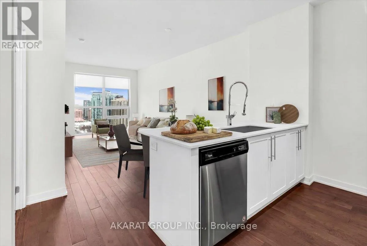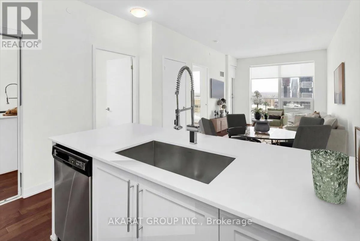 Cross Streets: Confederation & Burnhamthorpe. ** Directions: Turn West on Curran Place from Confederation. Arrive at building. One-bedroom One-Washroom condo in the heart of Mississauga City Centre. Open-concept living and dining area with a modern kitchen featuring stainless steel appliances. Freshly Painted. Spacious bedroom with large window and closet. Walk out to a private balcony with clear northeast views. Includes one parking space and one locker. Building offers gym, pool, and 24-hour concierge. Steps to shopping, transit, and everyday amenities. Photos are Virtually Staged. (id:27476)