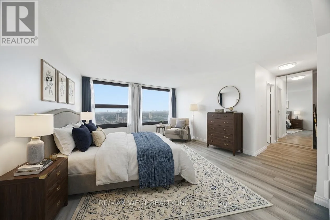Cross Streets: Bloor St and Dixie Rd. ** Directions: Dixie Rd to Bloor St. Sweeping lake, city and skyline views in this beautifully updated 2 bedroom 2 bathroom suite in the prestigious Applewood Landmark, a well-established and sought-after community known for its exceptional amenities and refined lifestyle. This sun-filled southwest facing suite offers a generous 1415sf of modern design and showcases an open concept living and dining room area that connects seamlessly to the updated kitchen complete with abundant cabinetry, generous counter space, under-cabinet lighting, and a cozy breakfast area that can also be used as a den or reading space. The generous primary bedroom serves as a peaceful retreat and includes a beautifully renovated bathroom and generous wall-to-wall closet space. A large second bedroom and well-appointed 4-piece bath provide flexibility for family or functions as a guest room or a home office. This stylish suite comes complete with one parking spot, ensuite laundry, ensuite storage space and new windows. A high demand building that's known for its established community and an exceptional list of amenities such as 24hr concierge security, Rooftop Deck, Indoor Rooftop pool with Sauna and Whirlpool, Party rooms, Board room, Guest Suites, Car wash, ERV/HRV stations, Convenience Store, Gym/Health Club, Pickleball court, Tennis Court, Shuffleboard, Billiards Rooms, Boardroom, Craft Room, Woodworking shop, golf practice area to name a few. Amazing opportunity not to be missed! Some photos virtually staged. (id:27476)
