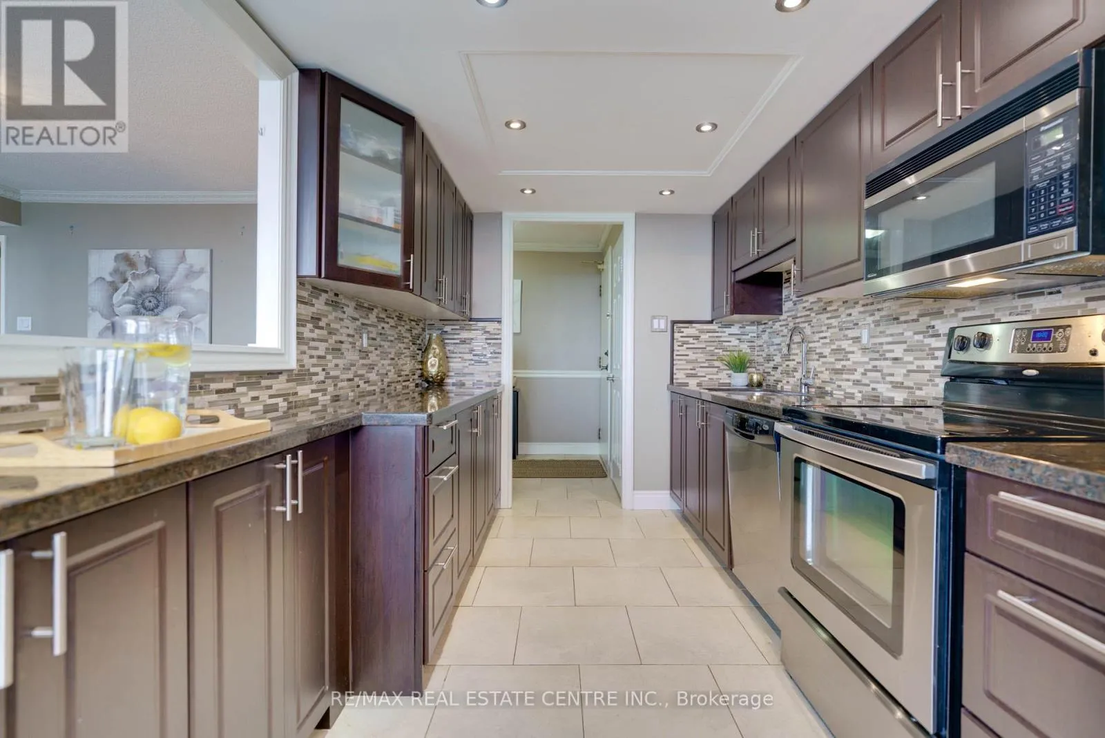 Cross Streets: Hurontario / Hwy 403. ** Directions: Hurontario to. Bungalow style living in a large condo! ***Quiet Location! *** Close to Hurontario/Eglinton Plazas and a hop onto Hwy 403 to take you East to Toronto or West to Milton.***5 min to Square One Mall. ***Upcoming LRT nearby. Quiet Building with wonderful amenities! This one is perfect for downsizers or first time buyers with a family. *** 2 parking spots + large locker*** Inside the condo, you are wowed by the first impression of space and openness and high end finishes.*** The views are just unobstructed and majestic! There are no buildings in front of the condo so the views stretch to the horizon! The extended renovated kitchen is a cook's delight with gleaming granite counters! You have soooo much counter space, so many cabinets! The primary bedroom is a private retreat with open wraparound views and no direct sunlight making the room too hot or too bright. A large walk- in closet and an ensuite bath complete this room. The 2nd bedroom has the main bath close to it as well. Both the bathrooms are renovated. This condo is really a gorgeous buy for anyone looking for high quality and space. (id:27476)