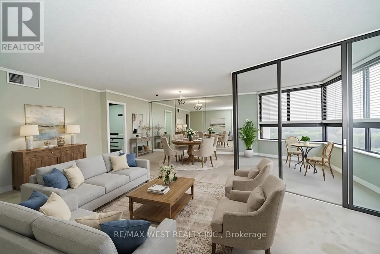Cross Streets: Bloor St and Dixie Rd. ** Directions: Dixie to Bloor. Enjoy expansive skyline views from this spacious 1,327sf 2 bedroom 2 full bathroom suite at the prestigious Applewood Landmark. This suite is thoughtfully designed with generous principal rooms and showcases an open-concept living and dining area plus a bright solarium that offers an extension to the living space and is perfectly suited for morning coffee, quiet reading, or a refined home office. The updated kitchen features a pantry, ample cabinetry, under cabinet lighting and a cozy breakfast area. Relax in the generous primary retreat with 3-piece ensuite bath, large huge and additional built-in storage. The second bedroom is beautifully enhanced by custom storage and a built-in Murphy bed making the space ideal for guests. A 4-piece main bath, ensuite laundry, dedicated storage, and one underground parking space complete the suite, plus all utilities and Internet are included in the maintenance fee. The Applewood Landmark offers an extensive list of amenities such as 24hr concierge security, Rooftop Deck, Indoor Rooftop pool and Whirlpool, Party rooms, Guest Suite, Electric Vehicle charging stations, Car wash area plus vacuum and air pump, Convenience Store, Gym with separate Male and Female Exercise rooms, Sauna, Pickleball court, Tennis Court, Shuffleboard, Billiards Rooms, Boardroom, Craft Room, Woodworking shop and golf practice area to name a few. Some photos are virtually staged. (id:27476)