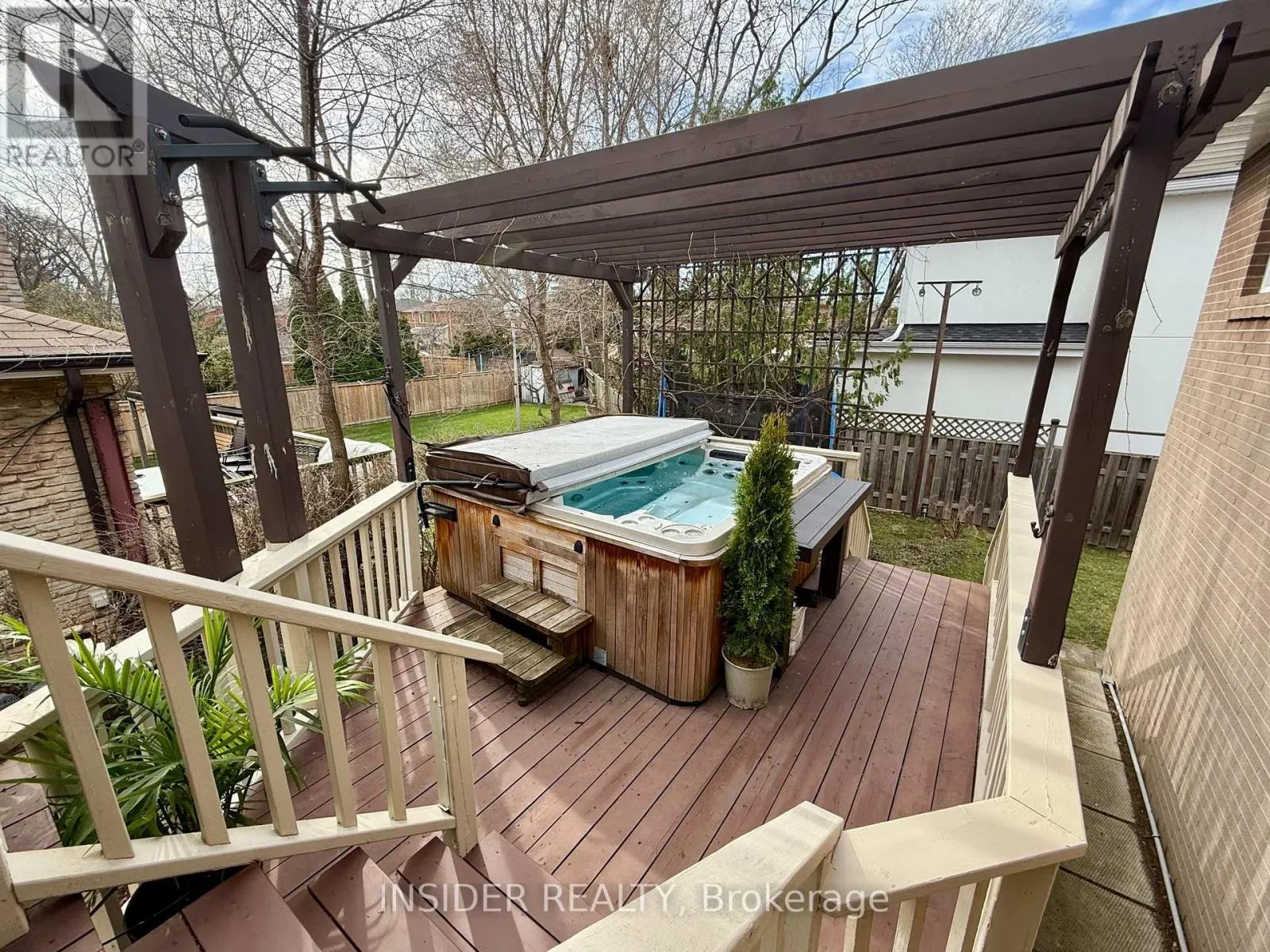 Stanfield Rd / Queen Elizabeth Way Over 2,000 Square Feet of Finished Living Space in This Meticulously Renovated Raised Bungalow in Applewood Acres. Red Oak Hardwood in the Living Room. Brazilian Jatoba in the Hallway. Ash and Beech Throughout the Bedrooms. Granite Floors in the Kitchen and Primary Ensuite. Italian Granite with Peruvian Wall Tiles in the Guest Bath. Heated Floors in Two Bathrooms. Crown Mouldings and Custom Trim Throughout. Moen Fixtures in Every Kitchen and Bath. The Kitchen Features Granite Counters, Full Backsplash, and a Built-In Breakfast Nook - a Touch That Turns Morning Coffee into a Ritual. The Custom Office Is a Room Unto Itself: Floor-to-Ceiling Built-In Desk, Shelving, File Cabinetry, Bar Fridge, and Sink. Upper Level: Three Bedrooms, Two Full Washrooms, Living Room, Dining Room, and Kitchen. Lower Level: Fourth Bedroom, Full Washroom, Custom Office, and Generous Family Recreation Room. Oversized Garage with Dedicated Workshop Space. Step Outside to a Private Backyard with a Large Deck and Hot Tub. Roof (2018), Central Air (2024), Hot Water Tank (2025), Refrigerator (2025), New Hot Tub Cover (ordered). Natural Stone Porch and Custom Front Stairs. Central Vacuum. LED Pot Lighting Throughout. St. Edmund Catholic Elementary School Ranks in the Top 3% of All Elementary Schools in Ontario. Applewood Acres at the Etobicoke Border - Steps to Parks and Applewood Plaza. Minutes to the QEW, Gardiner, Sherway Gardens, Two GO Lines, Pearson, and the Waterfront. 92-Foot Frontage Corner Lot with Second Exposure on Henley Road, Approaching 8,000 Square Feet Total. RL-Zoned with As-of-Right Fourplex Potential (Development Potential Summary Available). (id:27476)