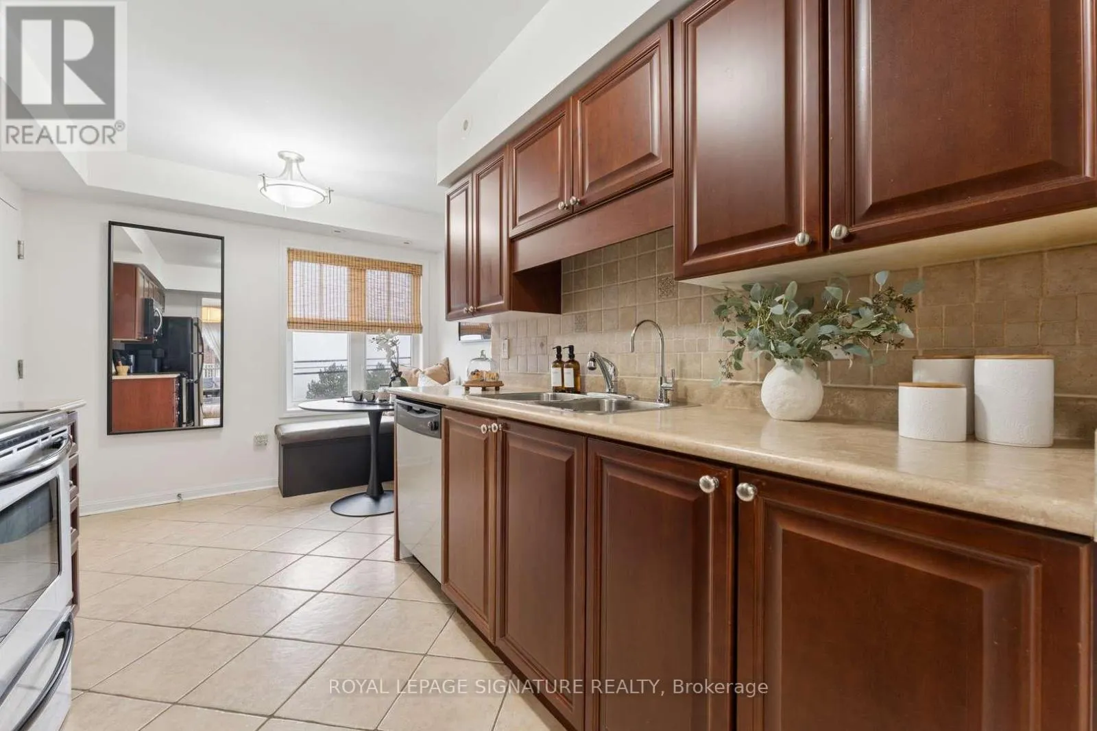 Dundas/Elmcreek This Lovely Mattamy-built Townhome offers 2 Bedrooms, 2 Bathrooms in the desired High Park Village Neighborhood. The Spacious Living room opens to a large Balcony with BBQ gas hookup, perfect for entertaining. The kitchen features Stainless Steel Appliances and an eating area with built-in bench. The primary bedroom has a walk-in closet and 3-piece ensuite, while the second bedroom includes a sizable closet with mirrored doors. Ensuite laundry with stacked washer/dryer, single-car garage plus driveway parking. Located near the Beautiful Brickyard Park, Cooksville GO Station, Shopping, Restaurants, Public Transit, and Desired Schools. Your search ends here. Welcome Home! (id:27476)