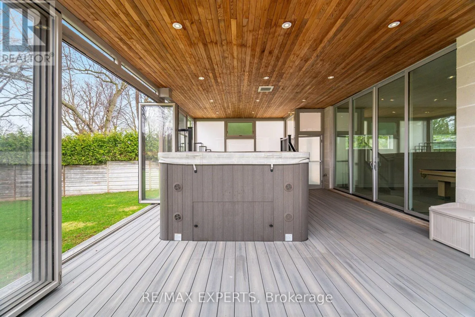 LORNE WOOD RD & INDIAN RD Welcome to this extraordinary custom-built residence in the heart of Lorne Park, where modern design meets uncompromising comfort. From the moment you enter, the home impresses with its refined finishes and thoughtful craftsmanship. Polished concrete floors with radiant heating anchor the main level, while rich hardwood flows seamlessly throughout the upper floor. Every detail has been carefully curated-from heated floors in every washroom to a full suite of air and water systems, including HRV, central dehumidifier, purifier, and softener. Expansive windows flood the home with natural light, enhancing the open-concept living spaces and designer kitchen equipped with premium appliances. Two elegant electric fireplaces add warmth and ambiance, creating inviting spaces for both everyday living and entertaining.The home offers five spacious bedrooms-four on the upper level and one below-each designed for comfort, complete with walk-in closets and complemented by five beautifully appointed bathrooms.The lower level is a private retreat, featuring a state-of-the-art theatre room, a full gym, a game room, and an expansive entertainment space-perfect for hosting or unwinding. Step outside to your own backyard sanctuary: a fully fenced, beautifully landscaped space with a fire pit lounge and a covered, heated, enclosed Hydropool swim spa-offering year-round luxury.Complete with an oversized two-car garage with EV charging and parking for six additional vehicles, this home delivers the ultimate blend of sophistication, functionality, andlifestyle in one of Mississauga's most coveted neighbourhoods. (id:27476)