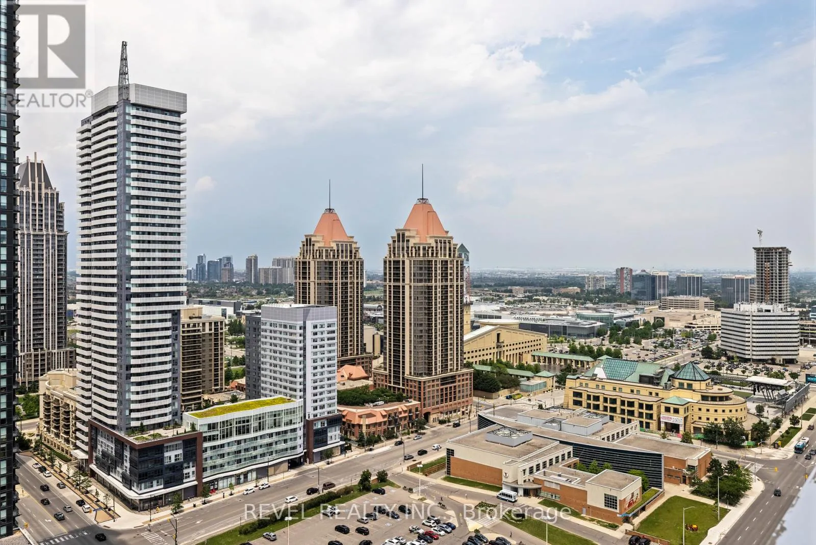 Confederation & Burnhamthorpe Exceptional investment opportunity in MCity1! This 24th-floor corner unit offers a rare double balcony and a premium layout that consistentlyattracts high-quality tenants. Currently generating $2,900/month + utilities with a reliable tenant willing to stay up to 2 more years-providingimmediate, stable income. Vacant possession available if needed. Fully furnished and turnkey, featuring 10' ceilings, floor-to-ceiling windows,custom blinds, ceiling fans, and upgraded Cecconi Simone finishes. Includes a versatile flex/media space-ideal for work-from-home living.Comes with 1 owned underground parking space. Enjoy top-tier amenities including outdoor pool, skating rink, fitness centre, lounges, and 24-hour concierge. Located in the heart of Mississauga, steps to Square One, transit, and major employment hubs-an established high-demandrental corridor. (id:27476)