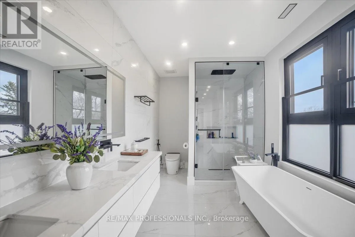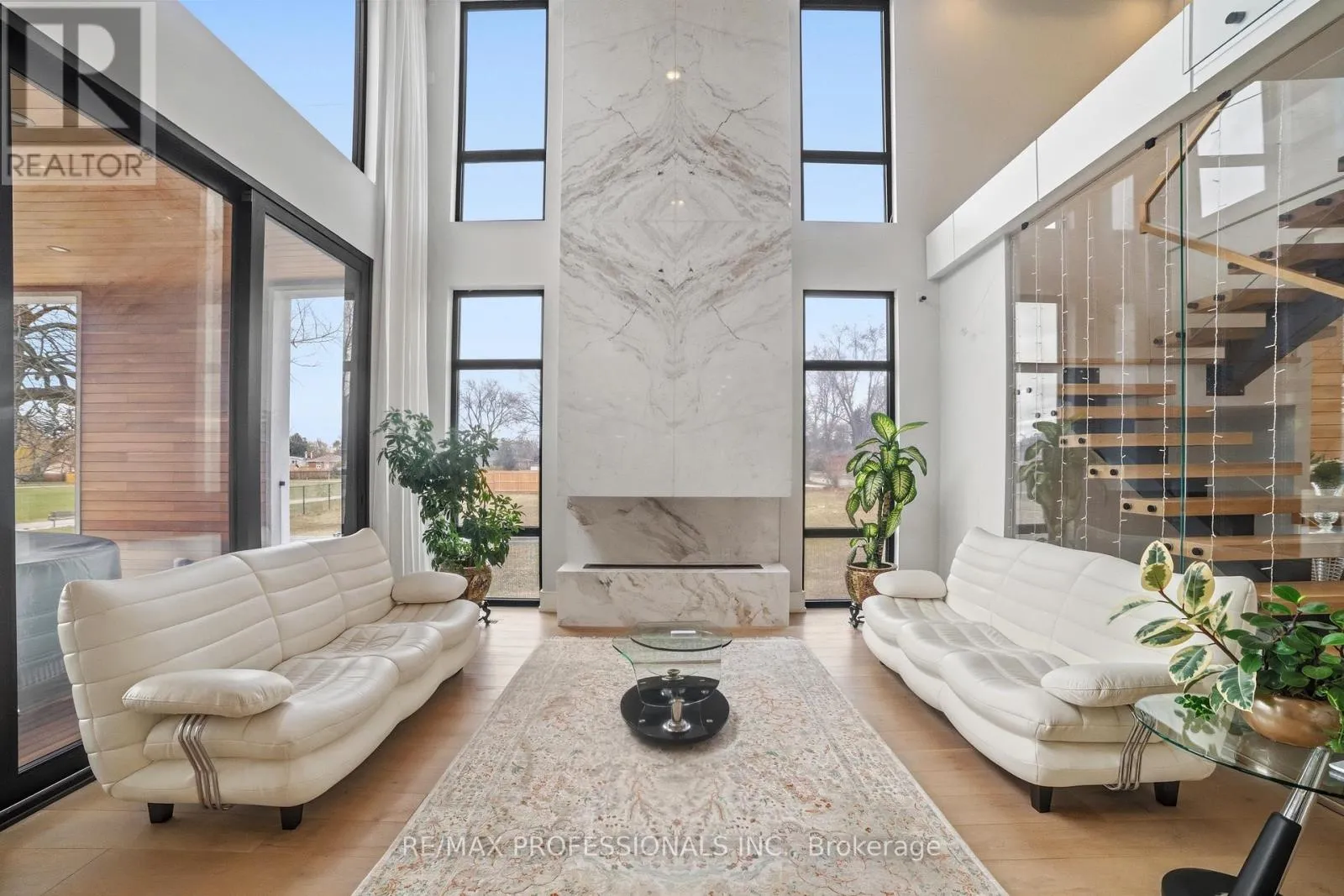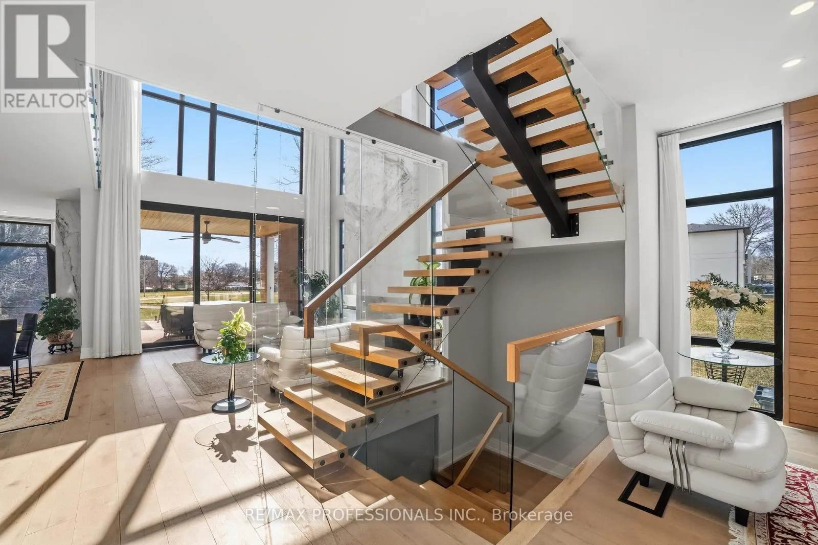 Cross Streets: Southdown | Royal Windsor. ** Directions: Southdown | Royal Windsor | Truscott. Sophistication and elegance shine throughout this new custom built spacious and modern luxury home in Clarkson. 3660 SF above grade plus 2240 SF below grade. Many features with quality finishes : triple pane windows, smart glass windows, motorized curtains, smart toilets, glass railings, plot lights throughout, quartz counters, Thermador appliances, 6 burner gas stove, pantry, passcode door entry, 2nd floor furnace room, ensuites in all bedrooms, 2nd floor laundry. Prime bedroom has large private terrace overlooking park , large windows. 2 laundry rooms. 2 door access to garage from inside. Basement has a kitchen, family room, laundry Room, 3 Bedrooms, large windows, separate entrance to basement, walk up to yard from a private patio, extra zen garden patio , wine cooler. Covered Patio 16X26 feet with pot lights. Stone Driveway. Mature trees in yard. 10 foot ceilings on main level, 9 foot ceilings on 2nd floor and basement. 2 A/C units. Backs onto a park. (id:27476)