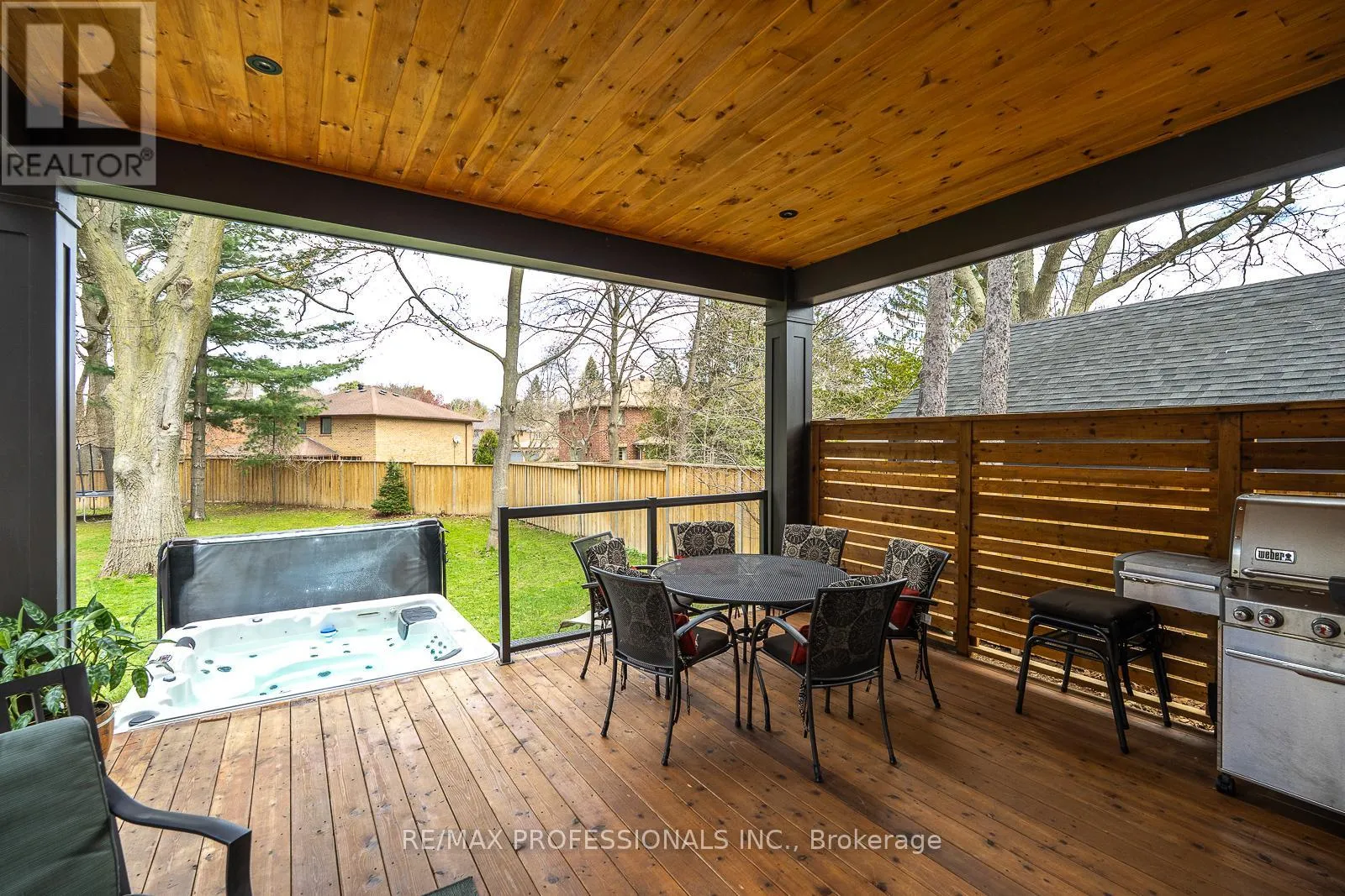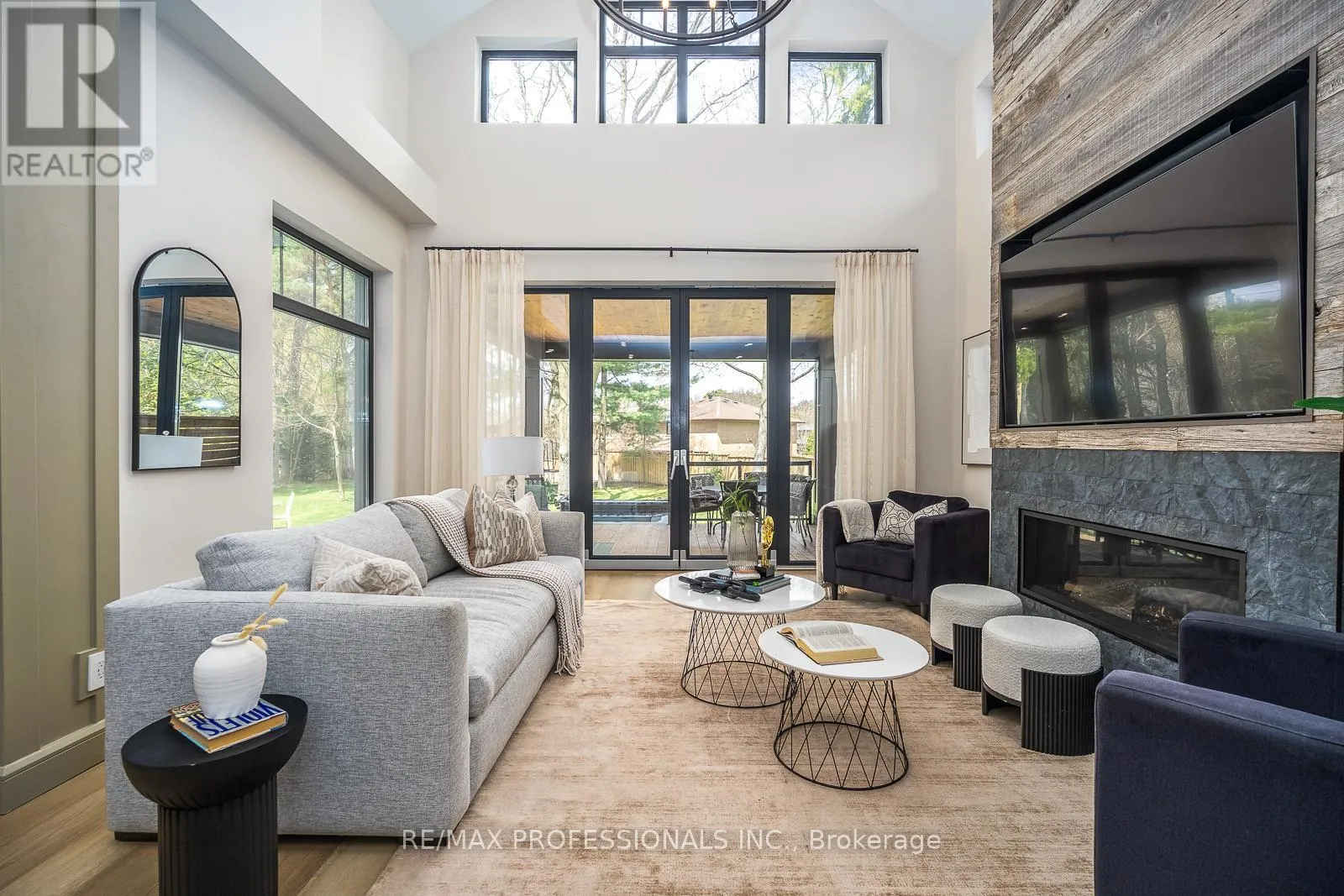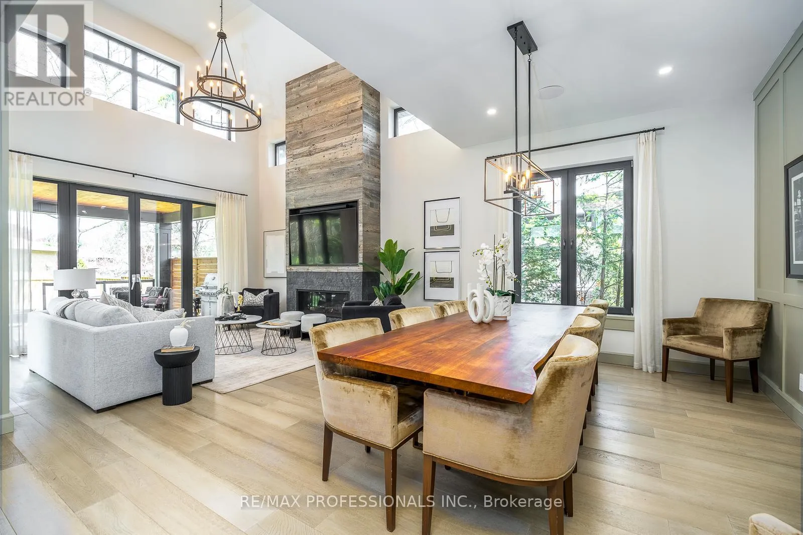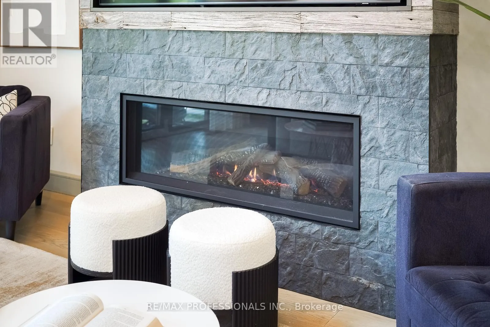 Lorne Park Rd & Lakeshore Rd W Experience architectural elegance in the heart of Lorne Park where cutting-edge ICF construction meets European-inspired luxury on an extra-deep lot in a serene treed setting. This thoughtfully designed residence offers over 4,800 sqft of total refined living space, providing a warm and inviting atmosphere for both grand entertaining and quiet family moments. The heart of the home is a sun-drenched open-concept space featuring soaring 18-foot ceilings and a 52-inch linear fireplace that flows seamlessly through European sliding doors to a 250 sqft covered porch. Overlooking a private, natural treed backyard with an included hot tub featuring off-deck hot tub entry, this outdoor oasis is perfect for morning coffee or evening relaxation. Inside, the chef's dream kitchen balances professional utility with a modern organic aesthetic, boasting wire-brushed oak cabinetry, quartz countertops, a premium top-of-the-line JennAir appliance suite, and a hidden pantry with a dedicated sink and coffee bar. A stunning white oak open-riser staircase runs from bottom to top. The primary suite serves as a private retreat, featuring a Juliet balcony, a walk-in closet with custom millwork, and a 6-piece spa ensuite with heated floors and a luxury quartz composite stone tub. Three additional oversized bedrooms all feature custom closets and custom built-ins. All upstairs bathrooms feature imported European tiles, heated flooring, and modern convenience features. The walk-out lower level offers a media room, games area, and a flexible fifth bedroom or gym with hydronic radiant heated floors. Beyond the aesthetics, the ICF engineering and triple-pane windows ensure a whisper-quiet, energy-efficient, and healthier environment. Residents enjoy the ultimate convenience of being minutes from top-tier schools, lush parks, and easy commuter access via the GO Train and major highways. This home is ready for your family and is a superior long-term investment in comfort, quality and luxury. (id:27476)