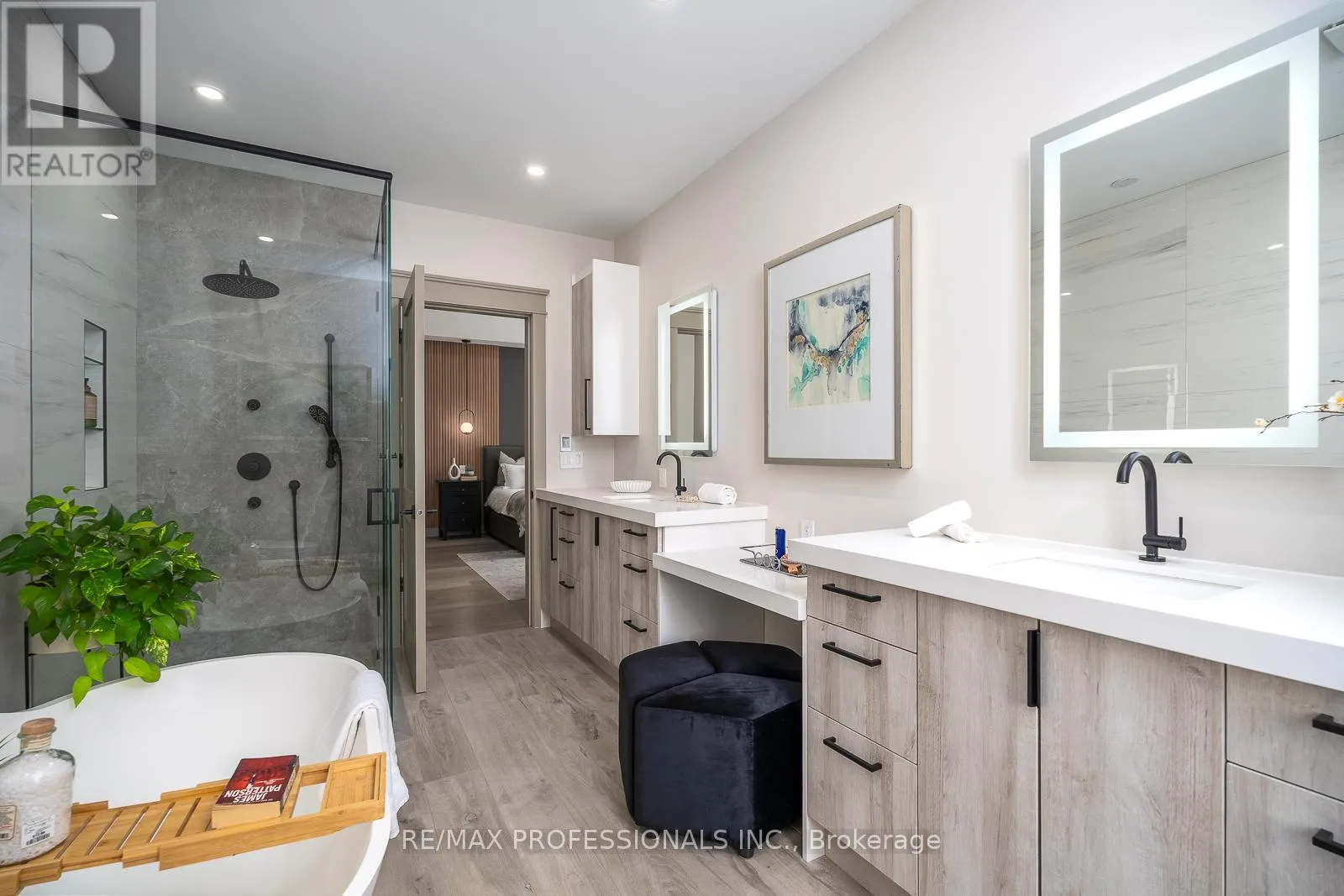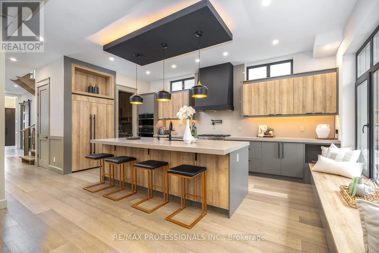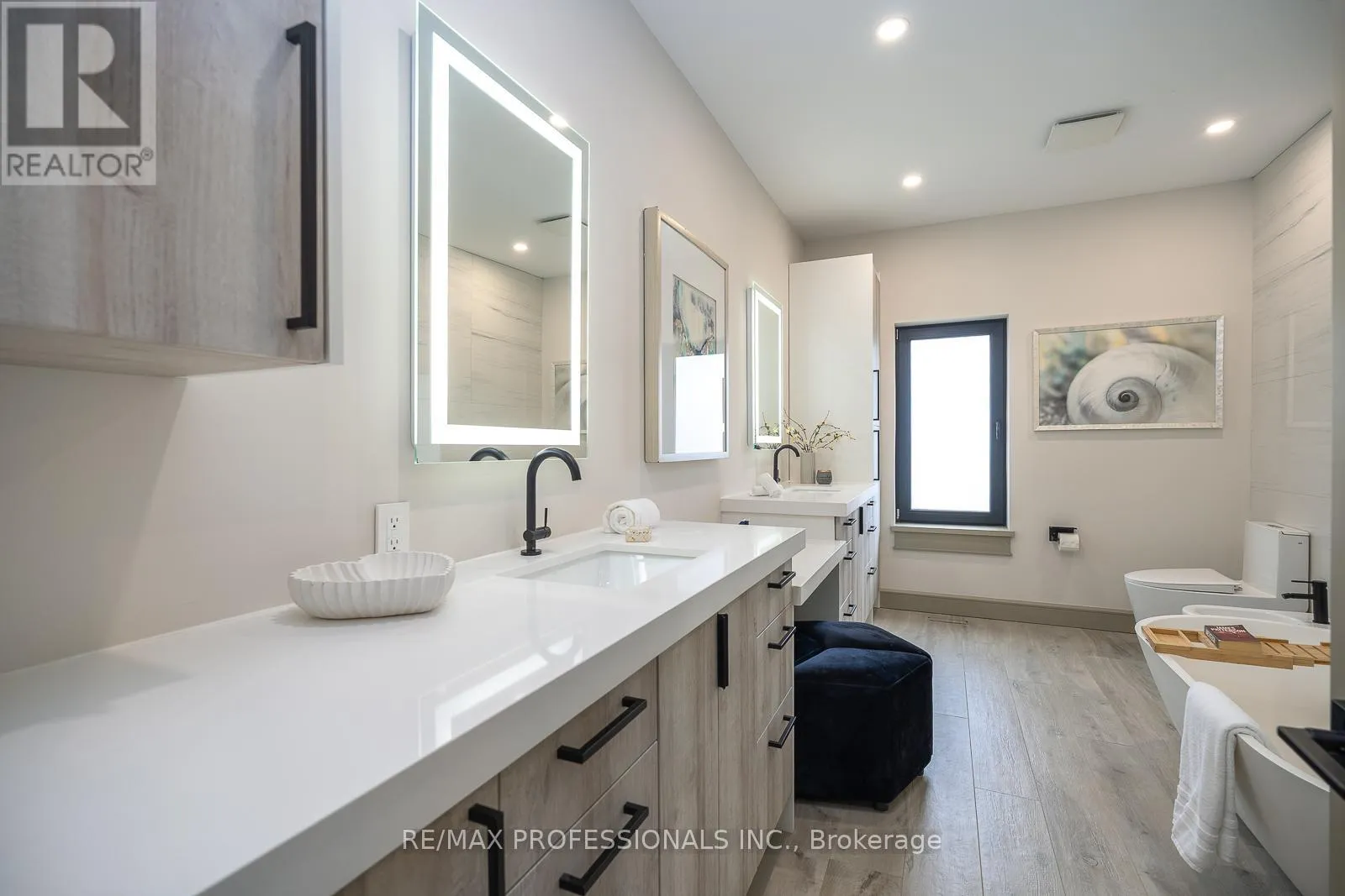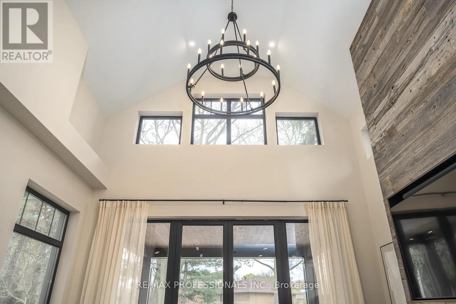 Lorne Park Rd & Lakeshore Rd W Experience architectural elegance in the heart of Lorne Park where cutting-edge ICF construction meets European-inspired luxury on an extra-deep lot in a serene treed setting. This thoughtfully designed residence offers over 4,800 sqft of total refined living space, providing a warm and inviting atmosphere for both grand entertaining and quiet family moments. The heart of the home is a sun-drenched open-concept space featuring soaring 18-foot ceilings and a 52-inch linear fireplace that flows seamlessly through European sliding doors to a 250 sqft covered porch. Overlooking a private, natural treed backyard with an included hot tub featuring off-deck hot tub entry, this outdoor oasis is perfect for morning coffee or evening relaxation. Inside, the chef's dream kitchen balances professional utility with a modern organic aesthetic, boasting wire-brushed oak cabinetry, quartz countertops, a premium top-of-the-line JennAir appliance suite, and a hidden pantry with a dedicated sink and coffee bar. A stunning white oak open-riser staircase runs from bottom to top. The primary suite serves as a private retreat, featuring a Juliet balcony, a walk-in closet with custom millwork, and a 6-piece spa ensuite with heated floors and a luxury quartz composite stone tub. Three additional oversized bedrooms all feature custom closets and custom built-ins. All upstairs bathrooms feature imported European tiles, heated flooring, and modern convenience features. The walk-out lower level offers a media room, games area, and a flexible fifth bedroom or gym with hydronic radiant heated floors. Beyond the aesthetics, the ICF engineering and triple-pane windows ensure a whisper-quiet, energy-efficient, and healthier environment. Residents enjoy the ultimate convenience of being minutes from top-tier schools, lush parks, and easy commuter access via the GO Train and major highways. This home is ready for your family and is a superior long-term investment in comfort, quality and luxury. (id:27476)