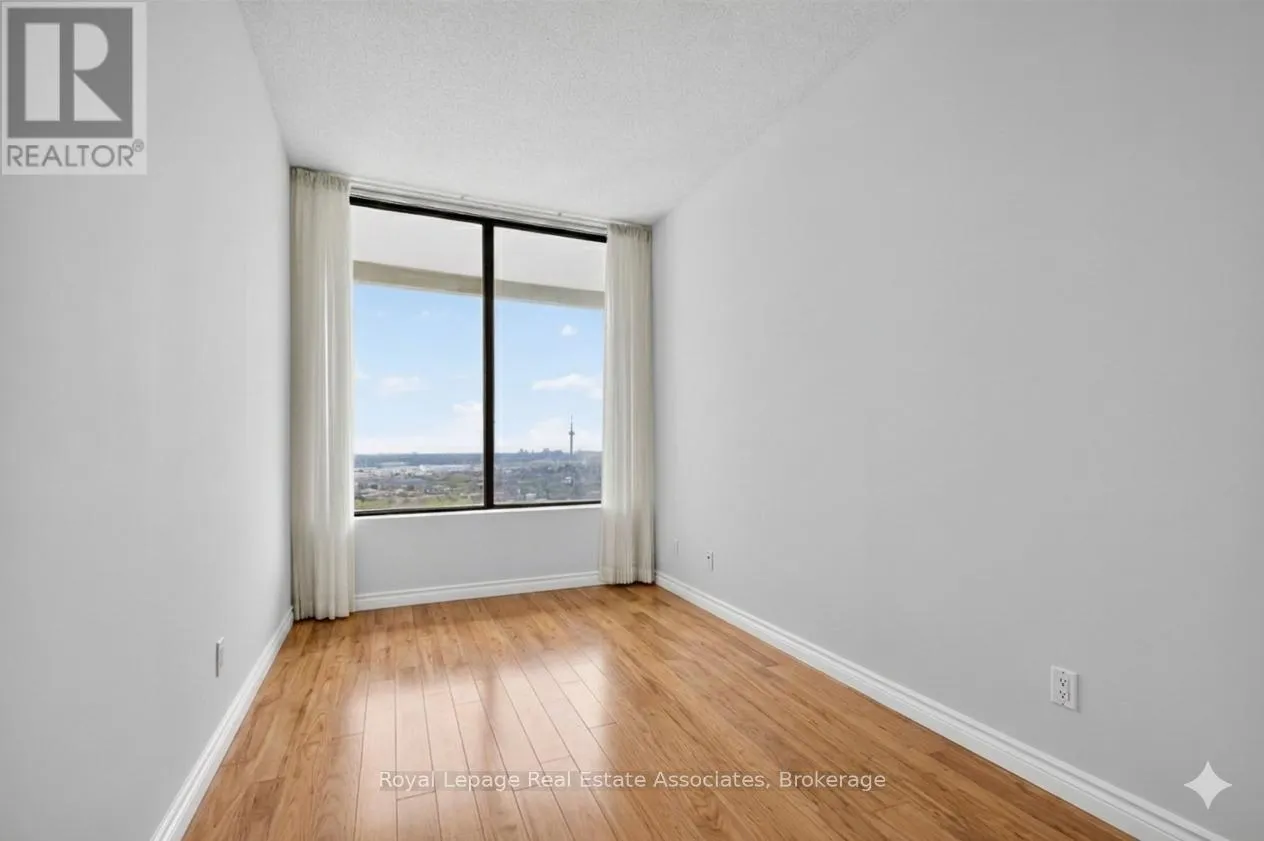 Dixie / Bloor St Welcome to this truly exceptional two-level penthouse at Applewood Place, offering an impressive 2,250 sq. ft. of sophisticated living and an additional 384 square feet of outside terrace space. This rare 4-bedroom residence is flooded with natural light, highlighted by expansive wall-to-wall windows in every room and breathtaking south-facing views of the lake and city skyline. A spacious foyer with generous storage welcomes you into the home, leading to a main-floor bedroom with its own private terrace-perfect for guests or a home office-alongside a full bathroom. The expansive living and dining area is ideal for both entertaining and everyday living, flowing effortlessly to a second oversized terrace that captures stunning panoramic views and enhances the indoor-outdoor lifestyle. The updated kitchen is both stylish and functional, complete with modern appliances and a bright breakfast area. An elegant private staircase leads to the upper level, where the primary suite offers a serene retreat with a 4-piece en-suite and its own private balcony. Two additional bedrooms share a 3-piece bathroom, while a conveniently located laundry room with new appliances enhances everyday ease. This unit includes two designated parking spaces, one of which is underground. Residents of Applewood Place enjoy a full suite of premium amenities, including a 24-hour concierge, indoor rooftop pool, hot tub, sauna, fitness center, outdoor rooftop terrace, tennis and pickleball courts, party room, and ample visitor parking. Maintenance fees include Internet, heat, hydro, water, and parking for added convenience. Ideally situated with quick access to public transit, major highways, shopping, schools, and parks, this rare penthouse offers an elevated lifestyle in a highly sought-after community. (id:27476)