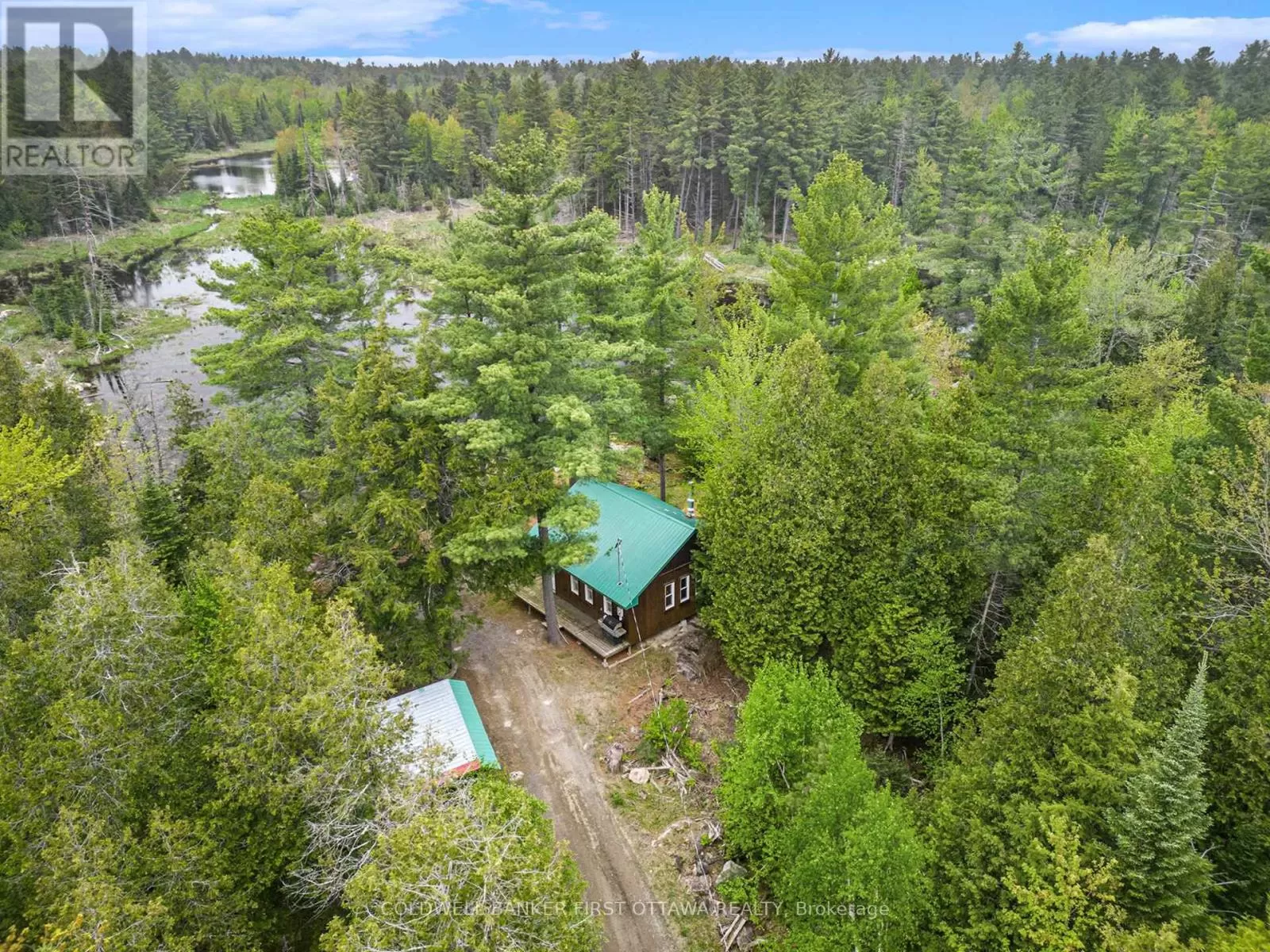 Cross Streets: Bellamy Mills & Tatlock Road. ** Directions: From Clayton, head North on Bellamy Mills Rd for 3.2 km. Property will be on the left. Just 15 minutes from Almonte, this 42-acre property offers a rare combination of natural beauty, privacy, and year-round access. Tucked away on quiet Bellamy Mills Road, the land features a 2 bedroom cabin with full electricity and a diverse landscape of forest, open clearings, and two large beaver ponds. The four-room cabin is simple but solid and is ideal for a weekend retreat or a base for future development. Along the driveway, a large elevated hunting blind sits quietly in the trees, offering excellent views and a great vantage point for spotting wildlife. The land itself invites exploration and imagination: mature trees, winding trails, and abundant wildlife make it well-suited for everything from hiking and hunting to long-term plans for a home or homestead. Rural zoning allows for residential, hobby farming, or recreational uses. Both ponds are abundant with fish and offer a peaceful setting to relax, watch wildlife, or catch your supper. The surrounding woods provide excellent privacy with no visible neighbours, while the municipally maintained road ensures reliable year-round access. With plenty of space to roam, this property is ideal for those looking to live more simply, build over time, or just enjoy a quiet slice of Eastern Ontario wilderness. Located just 20 minutes from Carleton Place, and under an hour to Ottawa. Whether you're looking to build, escape, or hold for the future, this is a beautiful and flexible piece of land in a beautiful rural setting. (id:27476)